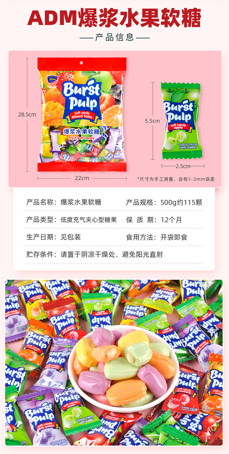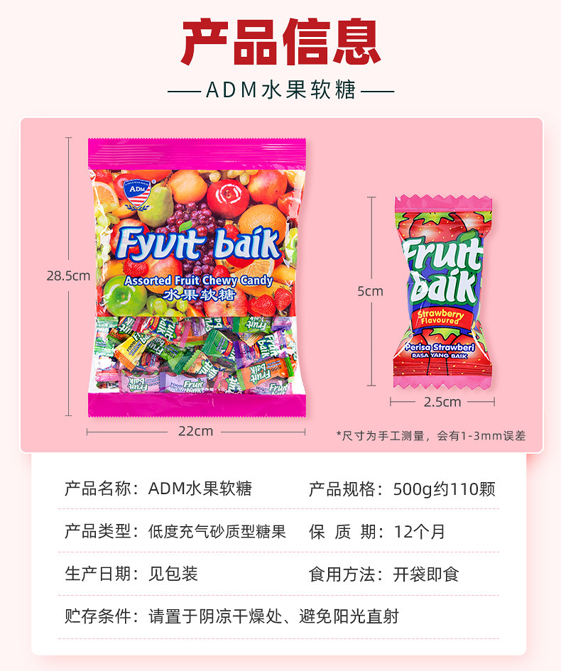 Фруктовые жевательные конфеты ADM оптом, свадебные сладости, конфеты в малайзийском стиле с начинкой, новогодние закуски