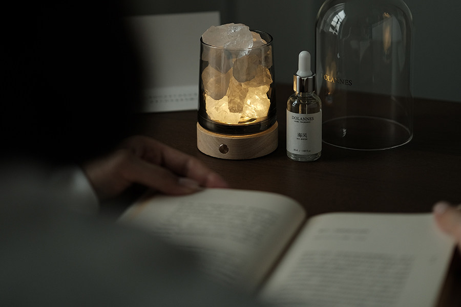 DOLANNES feuerlose Aromatherapie, ätherisches Öl, Geschenkbox, Diffusor, Steinlampe, Zuhause, Schlafzimmer, langanhaltender Duft, Kristallstein, um den Schlaf zu unterstützen