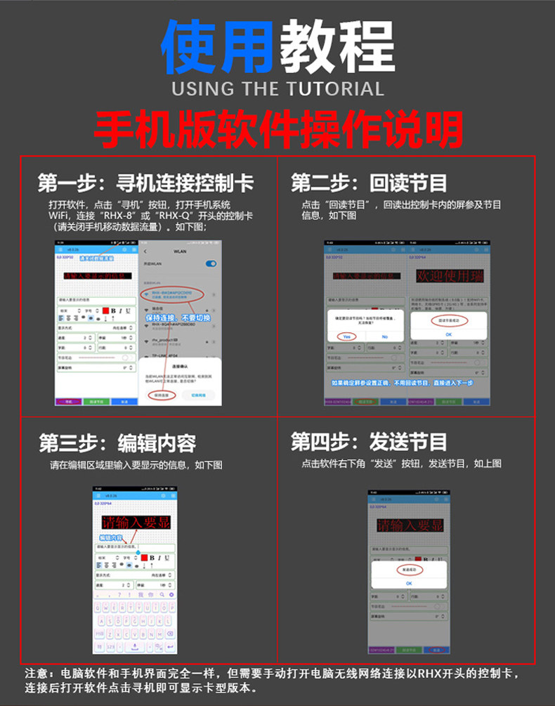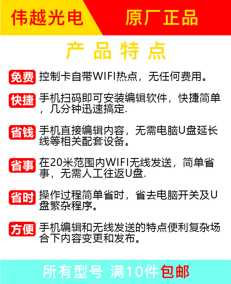 Контроллер для полноцветного светодиодного экрана Ruihexin с беспроводным управлением по Wi-Fi для мобильных устройств, для рекламных экранов и дверных вывесок.