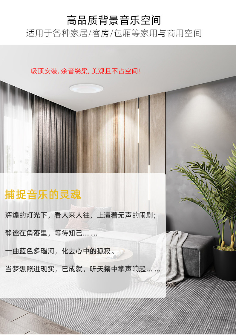 High-End Pro Ceiling Speaker with Built-In Bluetooth and Wifi, Supports Xiao Ai Voice Control for Smart Home Speakers