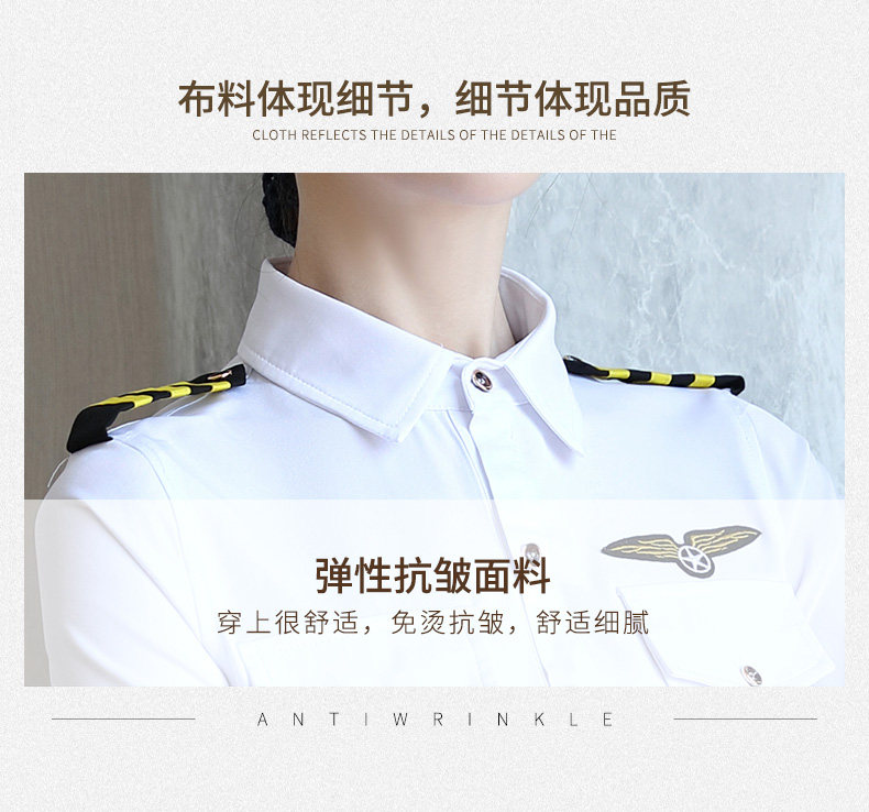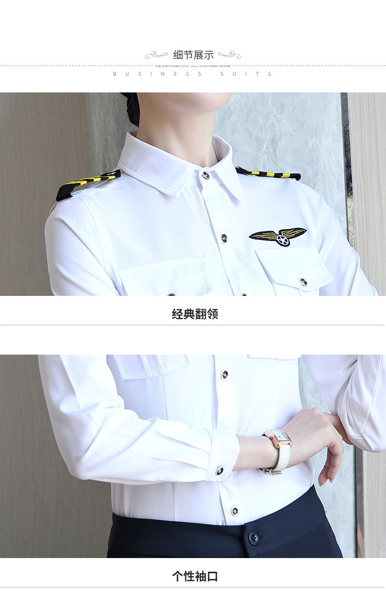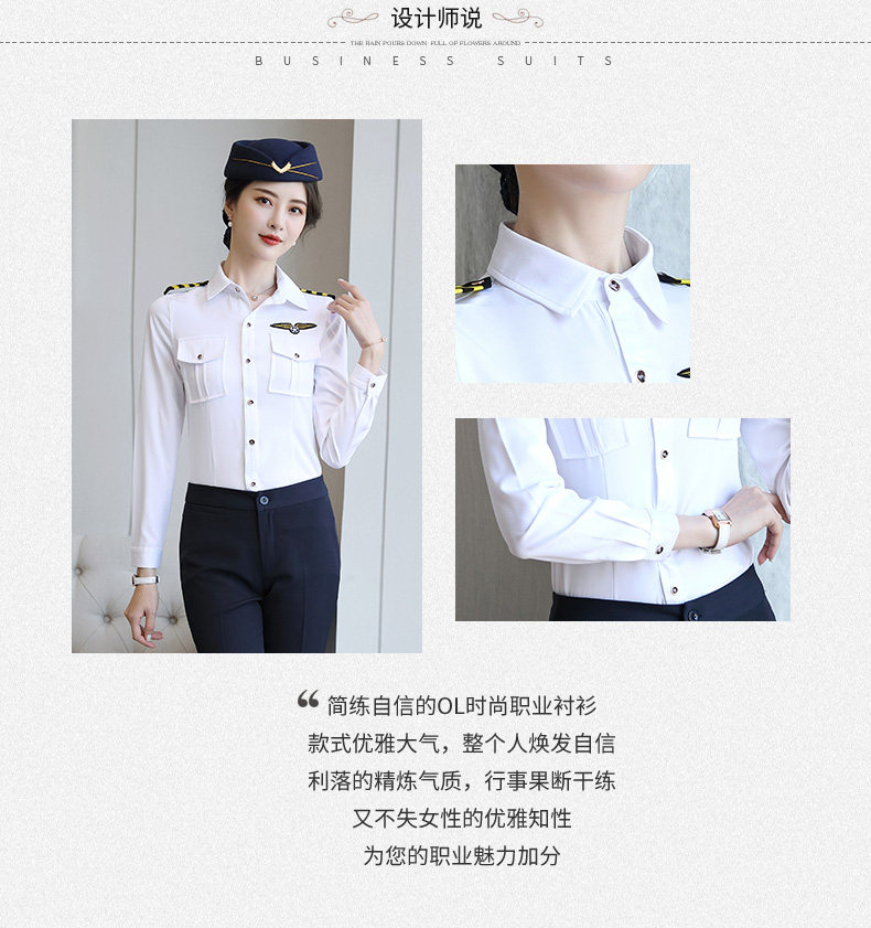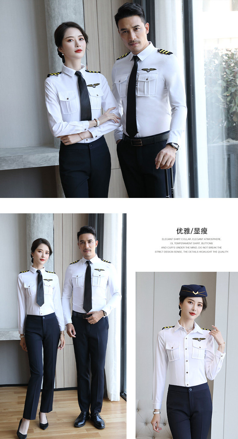 Flight Attendant Long-Sleeved White Shirt, Unisex Professional Slim-Fit Work Uniform, High-Speed Rail Stewardess Uniform, Workwear, Spring and Autumn Wear