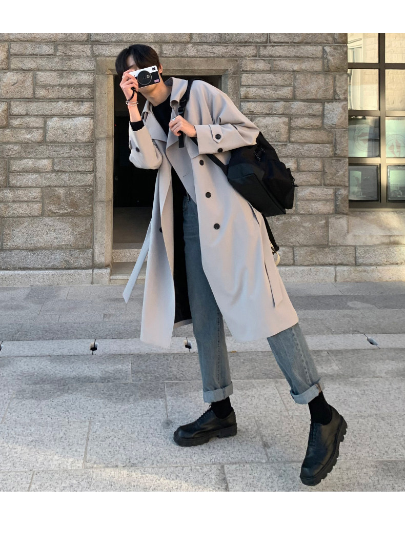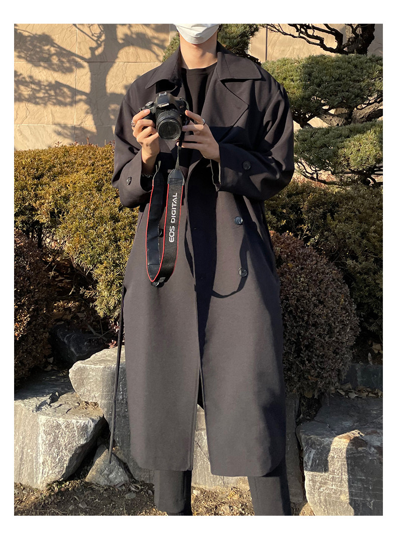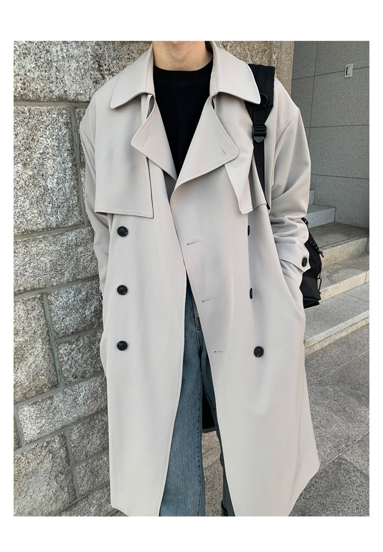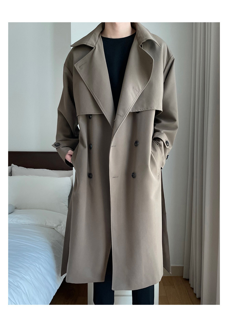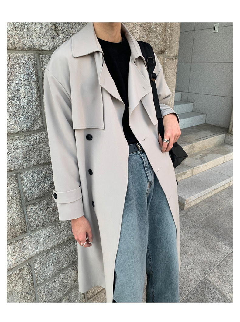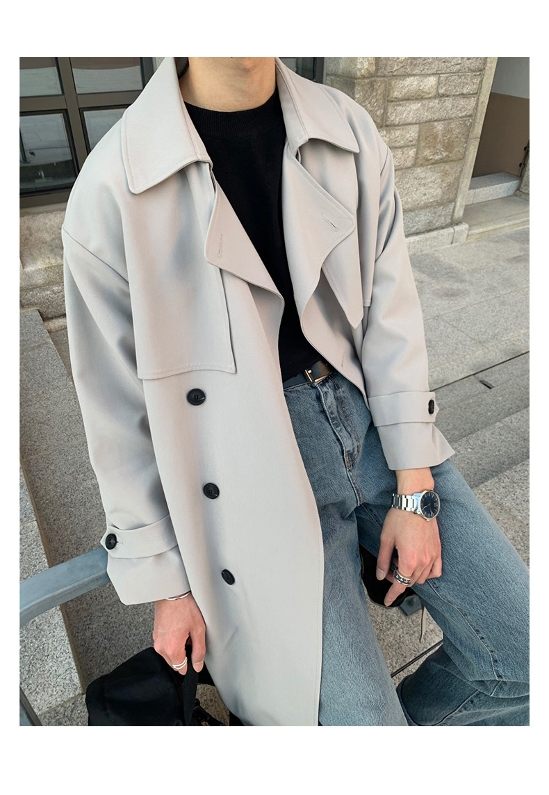 Nuevo abrigo cortavientos de otoño e invierno para hombre, abrigo holgado de estilo coreano a la moda, bonito y versátil, abrigo de longitud media con doble botonadura