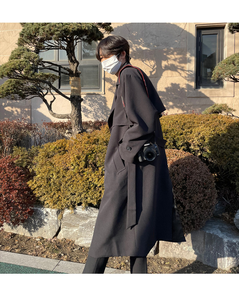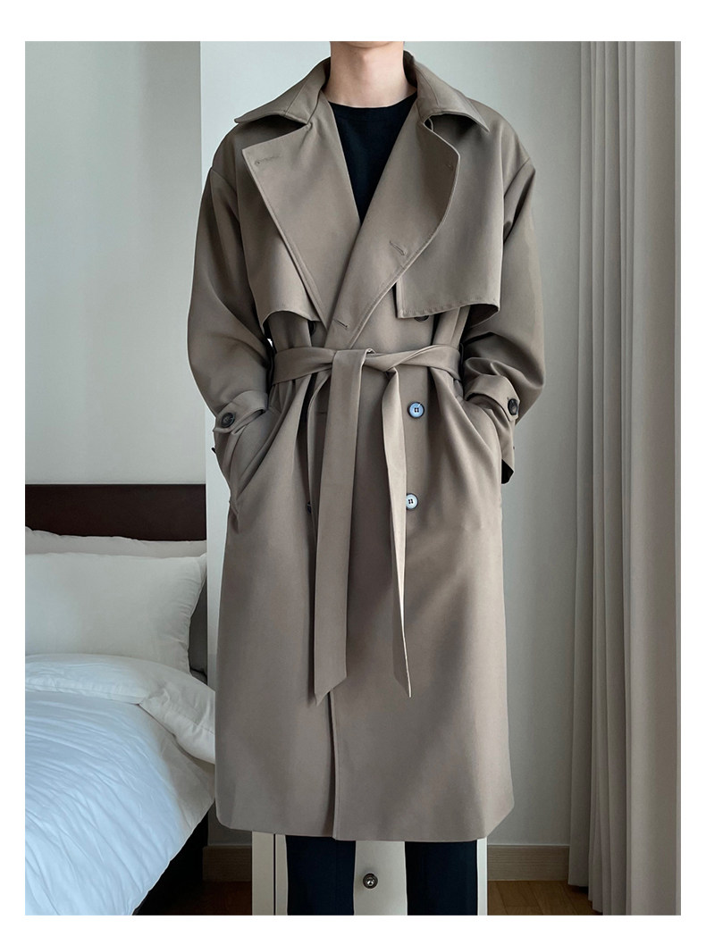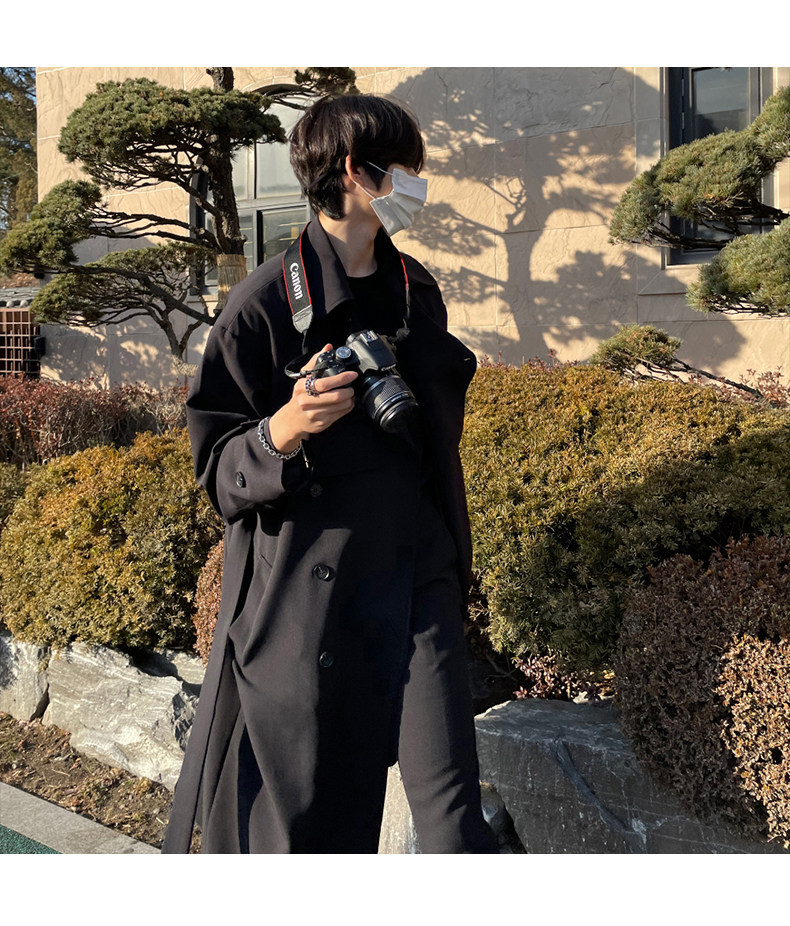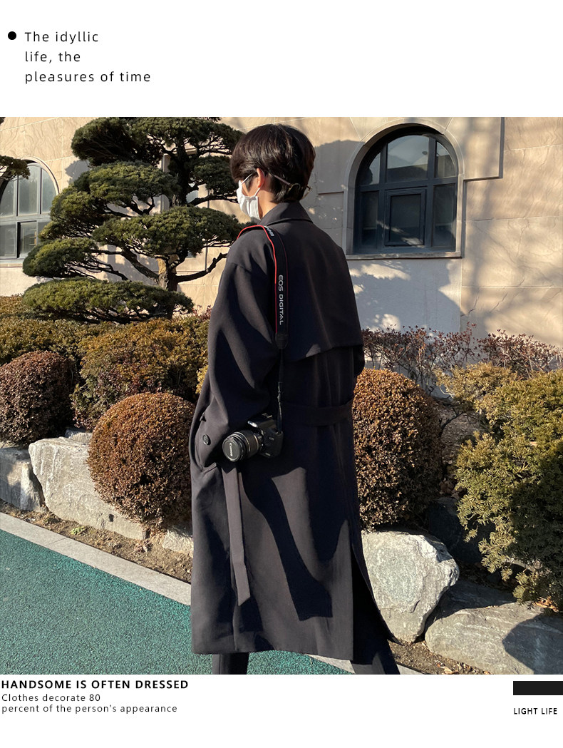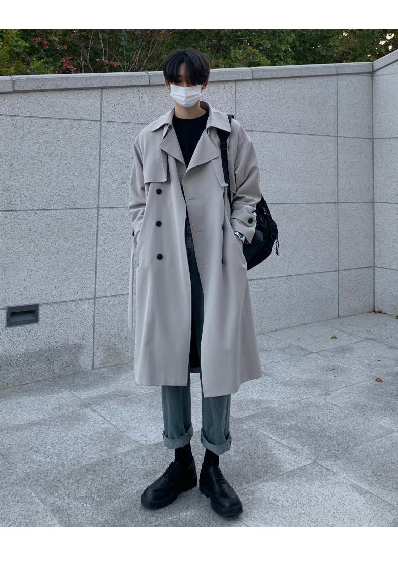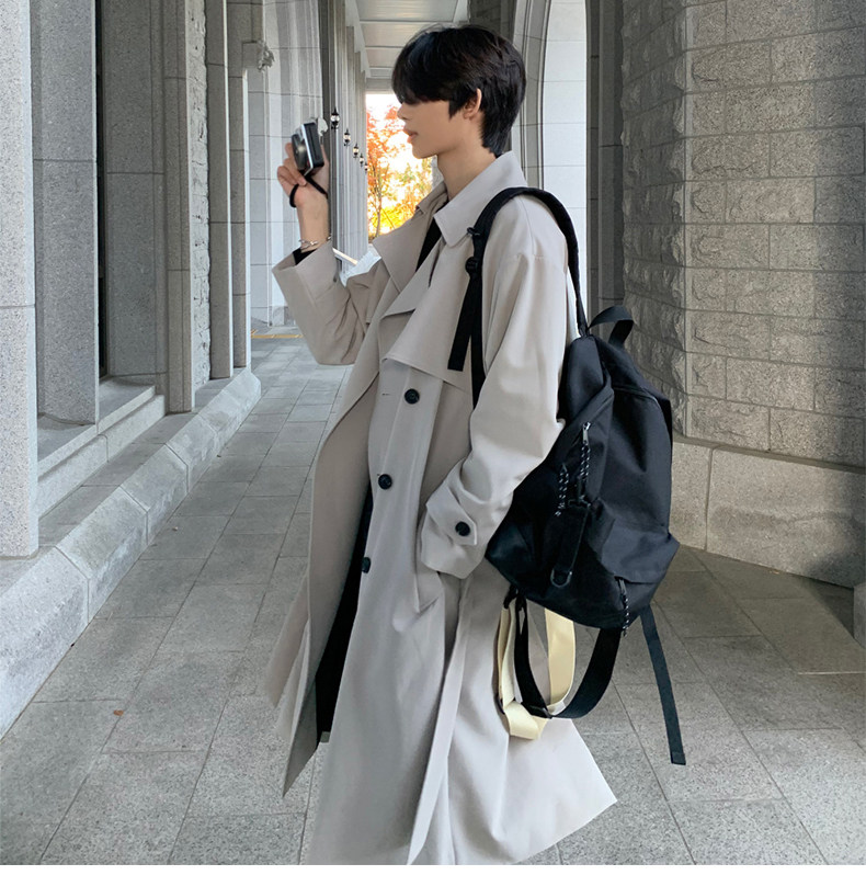 Nuevo abrigo cortavientos de otoño e invierno para hombre, abrigo holgado de estilo coreano a la moda, bonito y versátil, abrigo de longitud media con doble botonadura