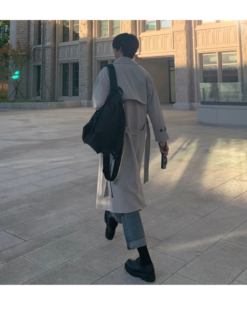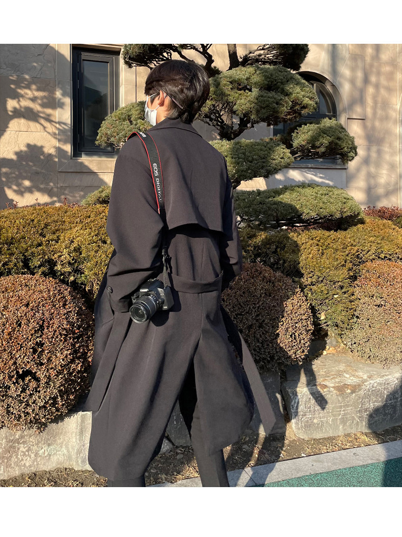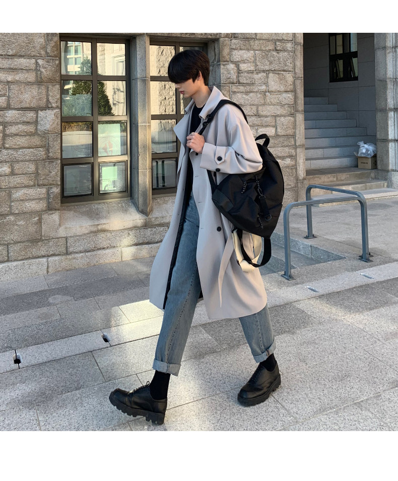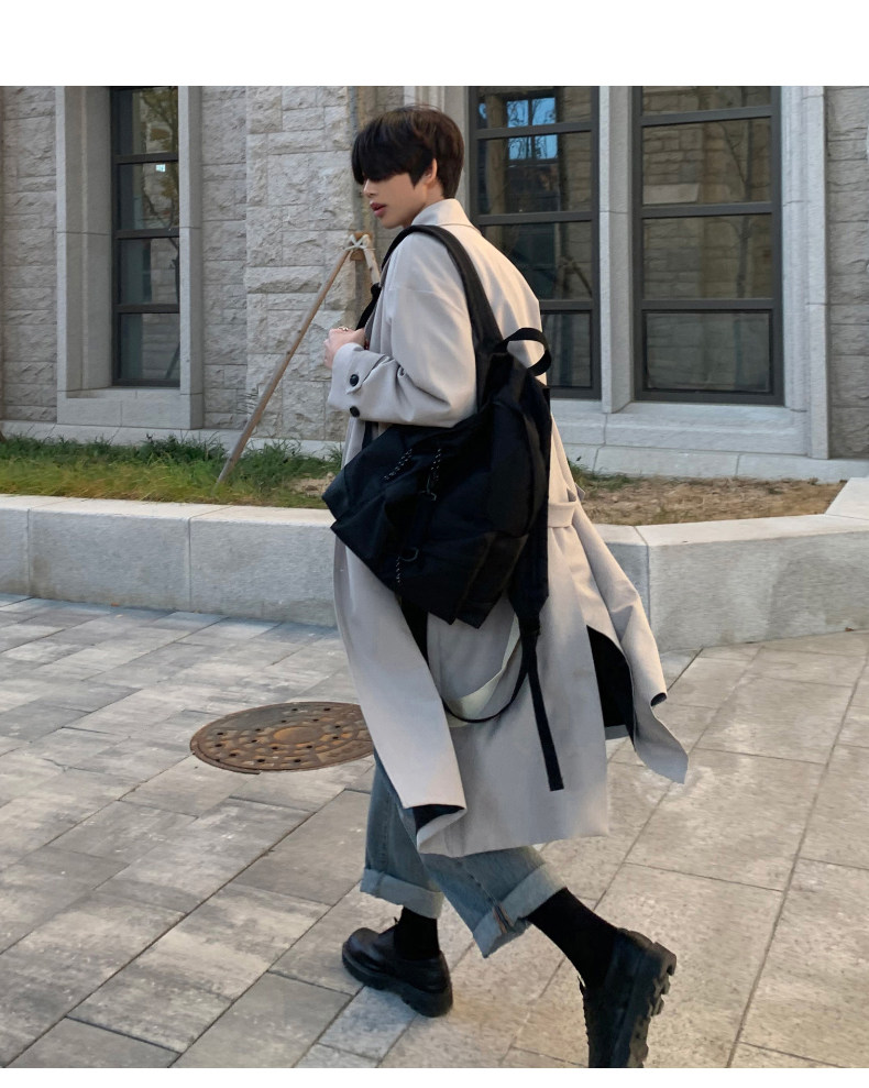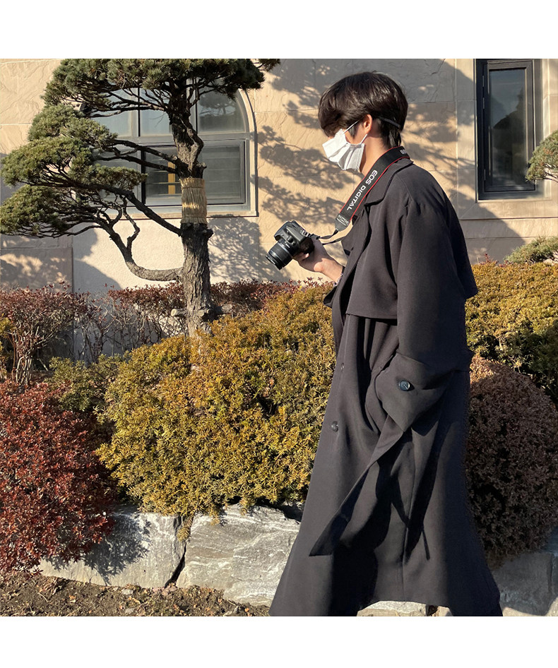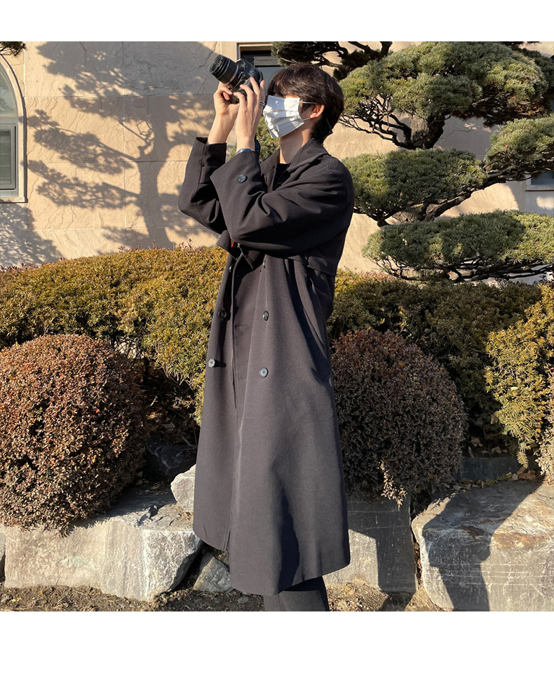 Nuevo abrigo cortavientos de otoño e invierno para hombre, abrigo holgado de estilo coreano a la moda, bonito y versátil, abrigo de longitud media con doble botonadura