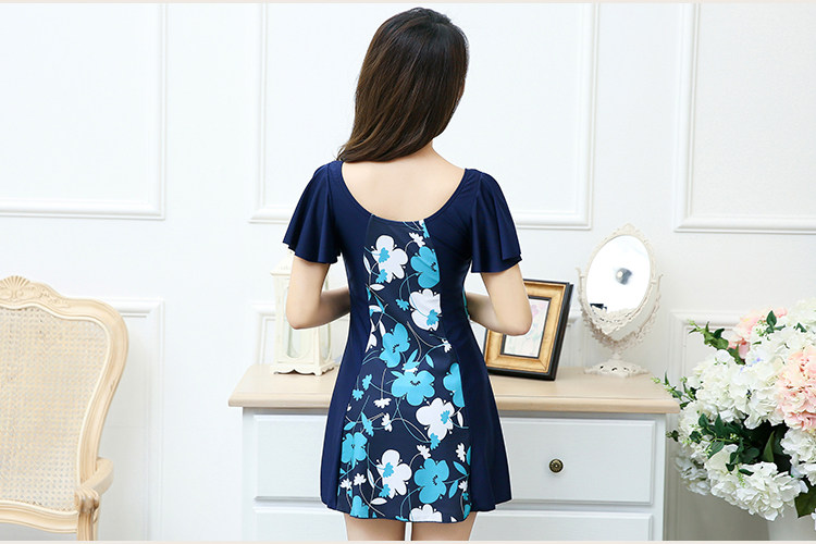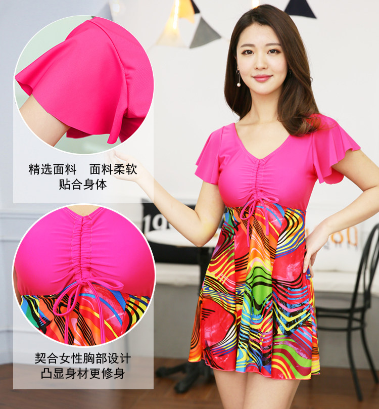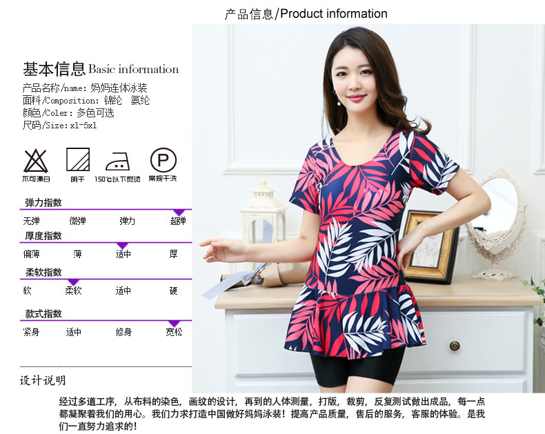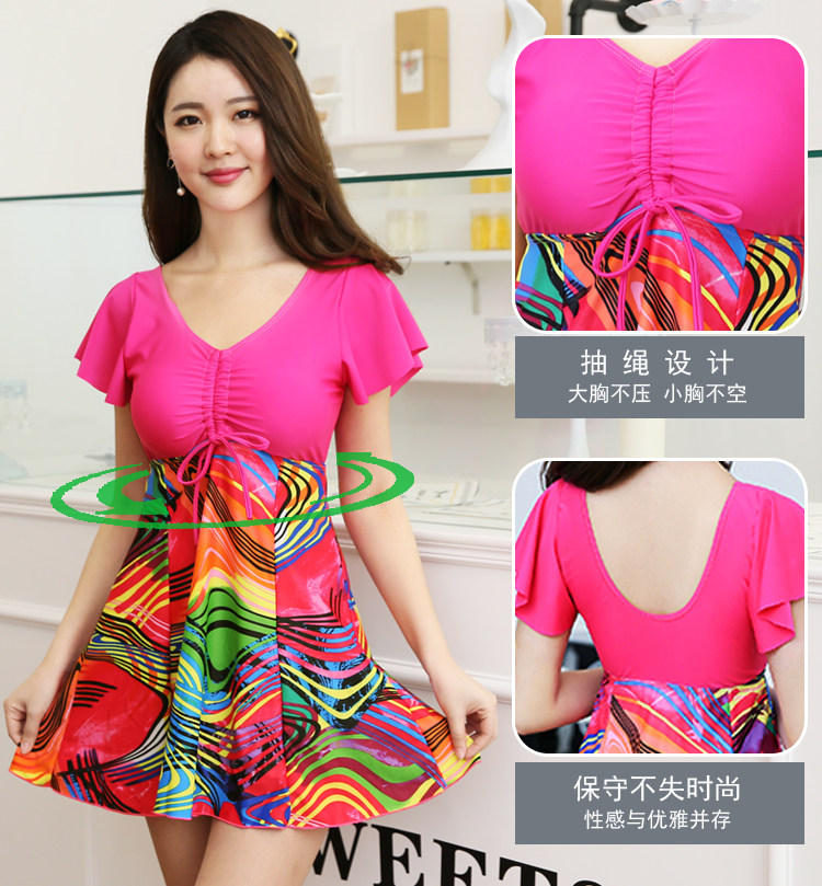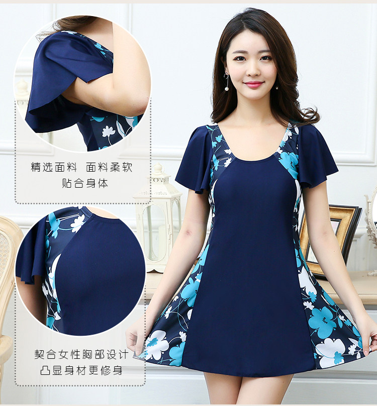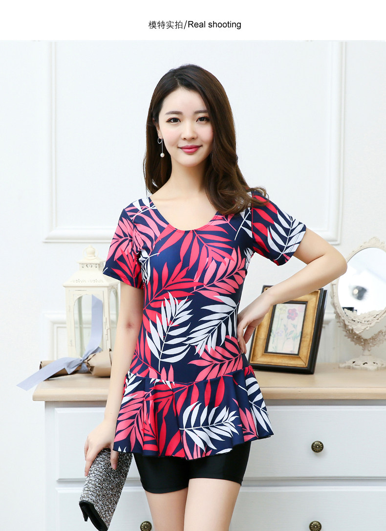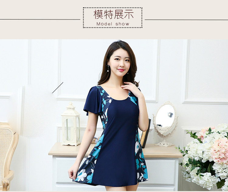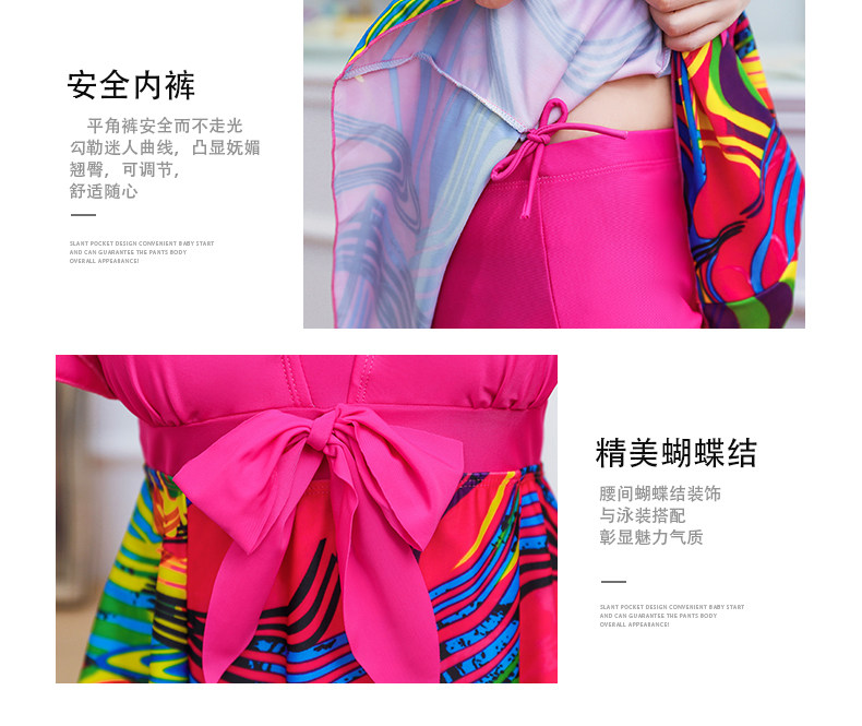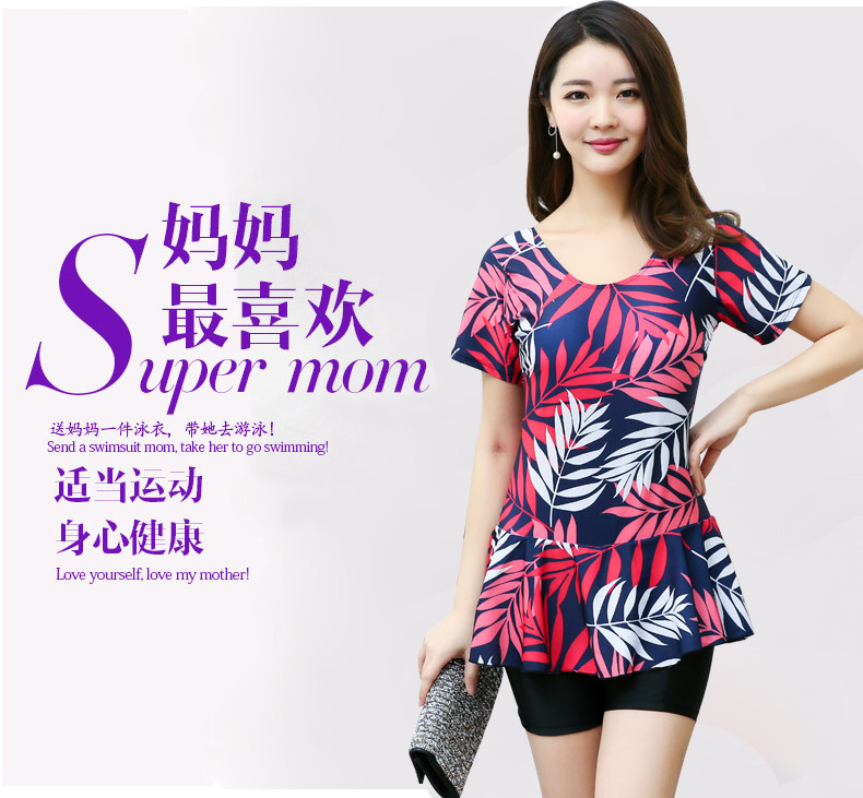 Sleeved Swimwear for Middle-Aged and Elderly Women, Conservative Two-Piece Skirt-Style with Flat-Angle Cut, Tummy-Covering, Slimming, Plus-Size Hot Spring Women's Swimsuit