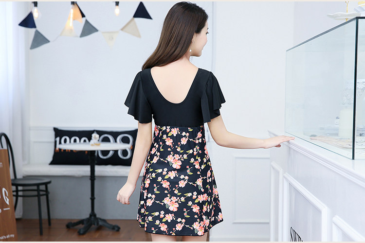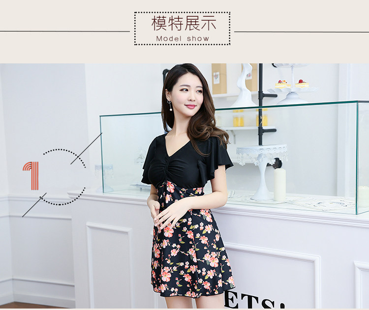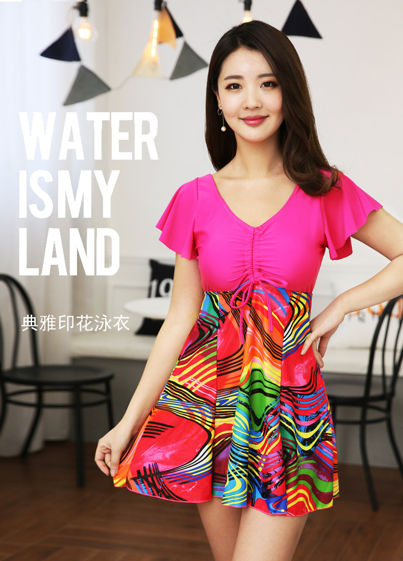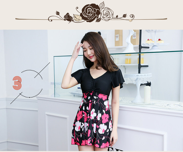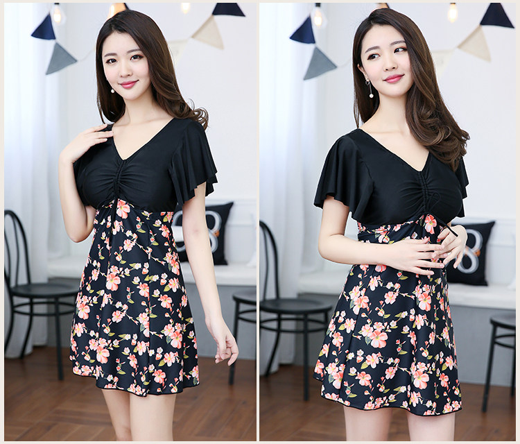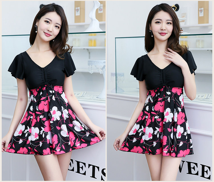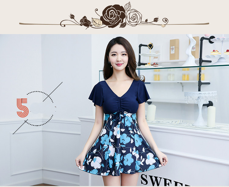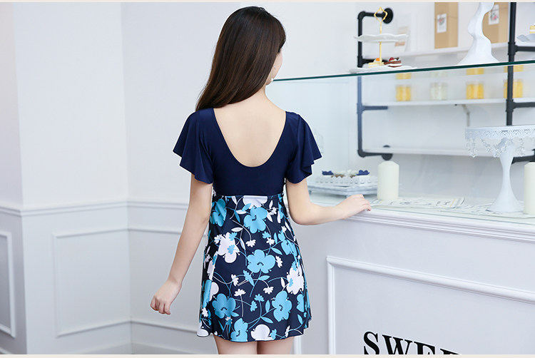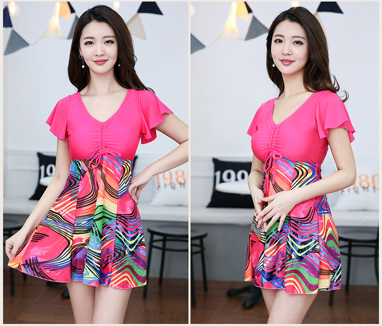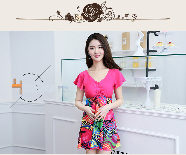 Sleeved Swimwear for Middle-Aged and Elderly Women, Conservative Two-Piece Skirt-Style with Flat-Angle Cut, Tummy-Covering, Slimming, Plus-Size Hot Spring Women's Swimsuit