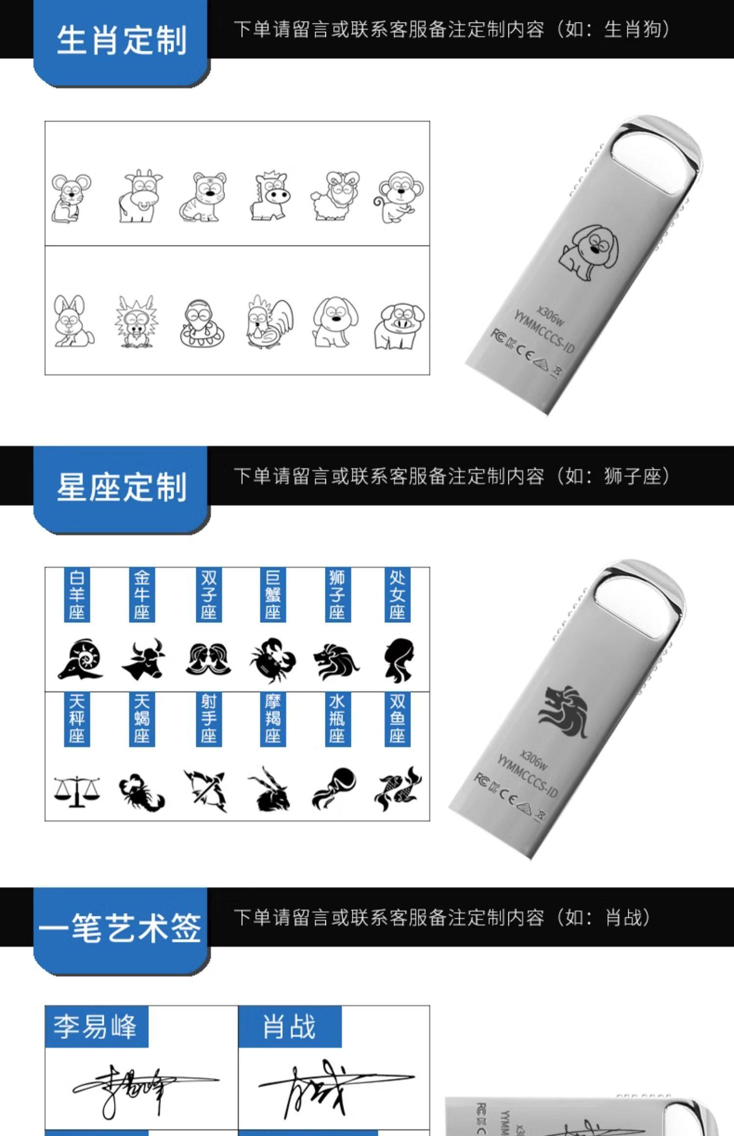 惠普u盘x306w高速3.2激光定制刻字创意logo汽商务办公128gu盘正品