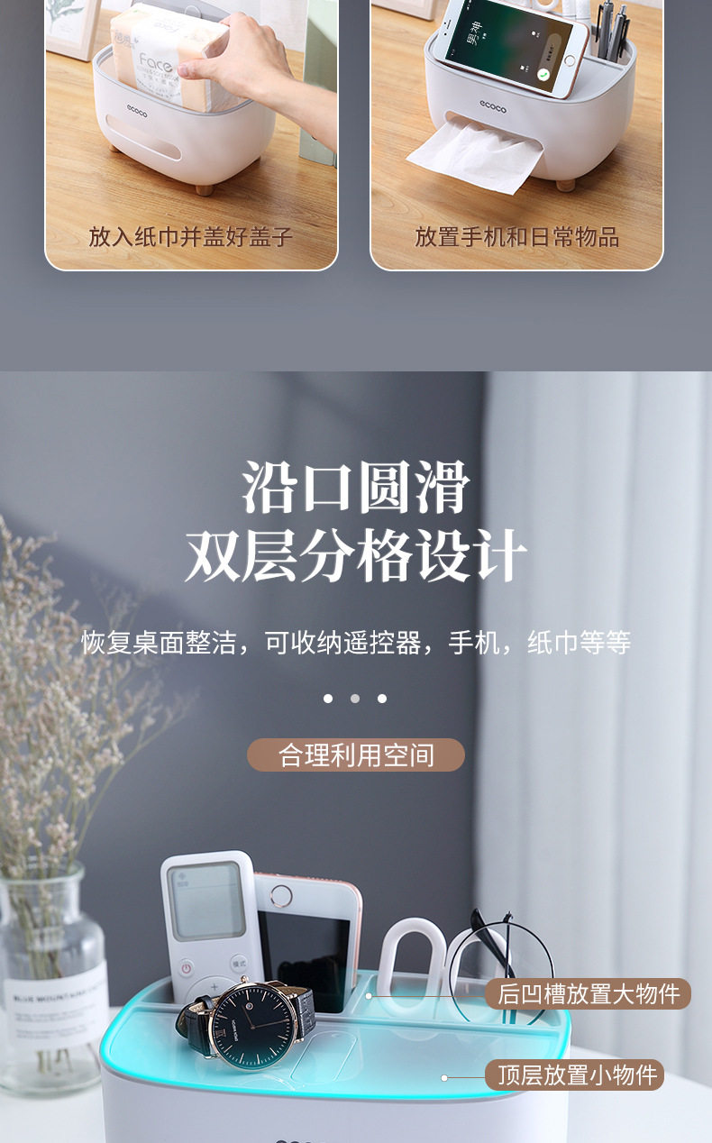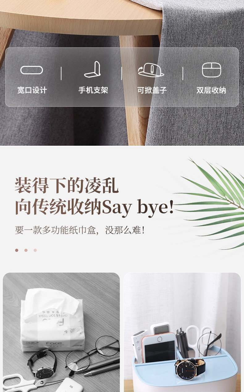 多功能纸巾盒桌面遥控器收纳盒客厅茶几抽纸盒创意餐桌抽纸收纳盒