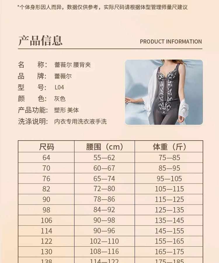 尺码 70三件套装,76三件套装,82三件套装,90三件套装,98三件套装,106三件套装,114三件套装,122三件套装不退不换,130三件套装不退不换,138三件套装不退不换,会所发货终身售后,终身售后服务,文胸留言,塑裤留言,腰背夹留言