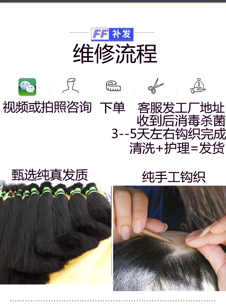 假发维修复加密递针片网底破裂更换头旋生物膜男女式头套发块