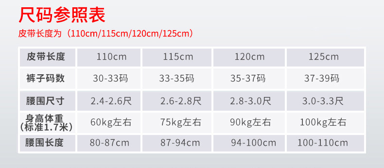 USA(inch) 28-30 30-32 32-34 34-38 38-42