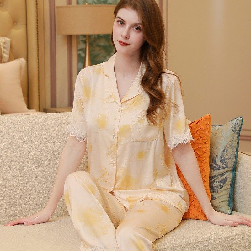 桑蚕丝绸真丝睡衣男士女长短袖高级感薄款情侣两件套装休闲家居服