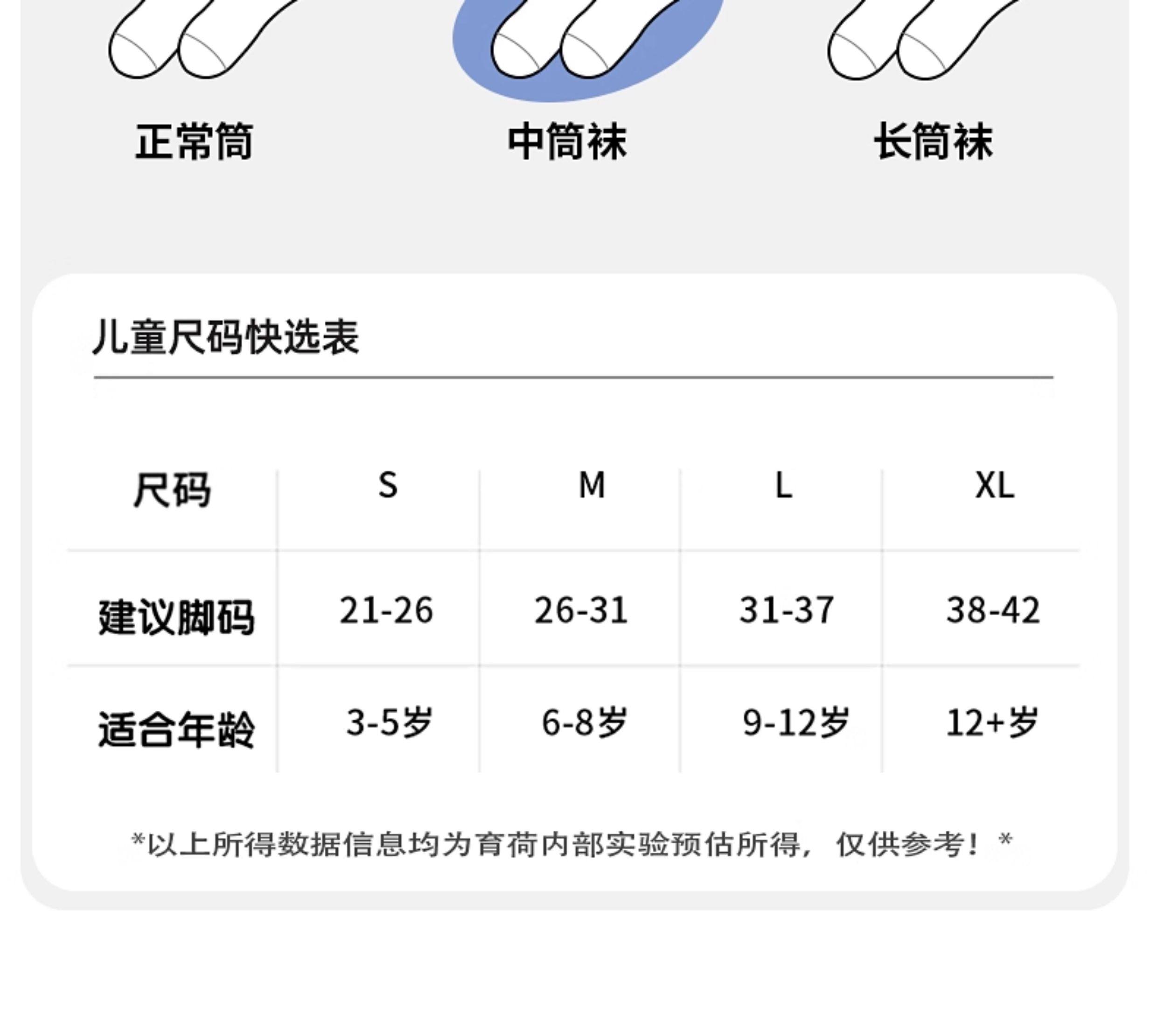 适用年龄 3-5岁(建议脚长16-18CM 鞋码21-26)按鞋码选购,6-8岁(建议脚长18-20CM 鞋码26-31)进口莱卡橡筋,9-12岁(建议脚长20-22CM 鞋码31-37)无骨不硌脚,12岁以上(建议脚长22-24CM 鞋码38-42)成人自留,可选XL尺码