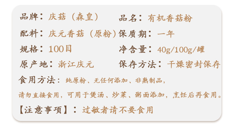Qing Mushroom Organic Mushroom Powder No Additives Fresh Mushroom Powder Seasoning Mixed Rice Ingredients for Baby and Toddler Recipes