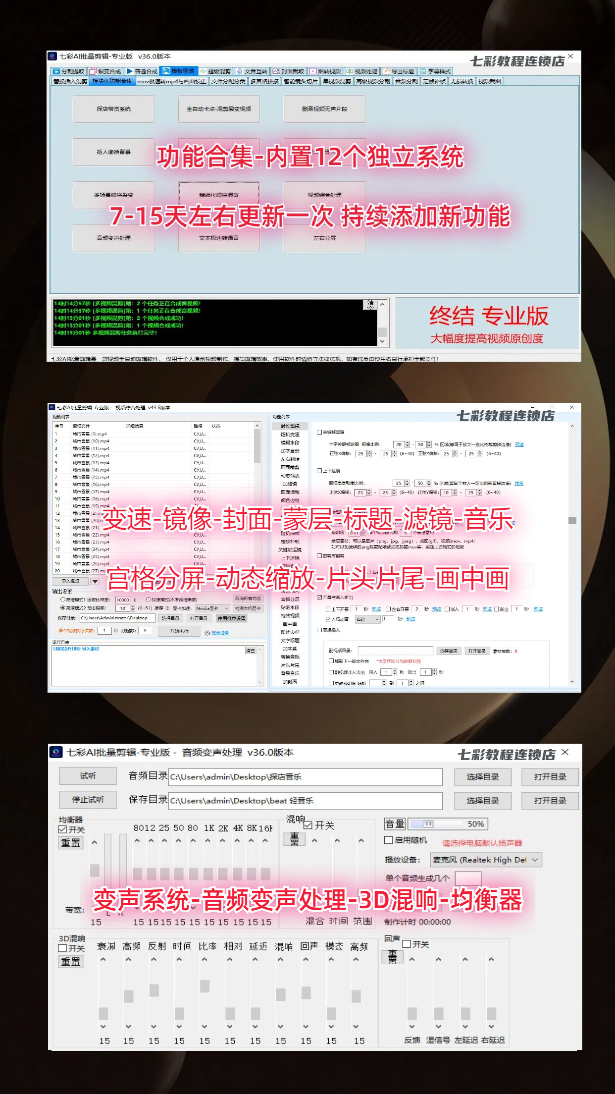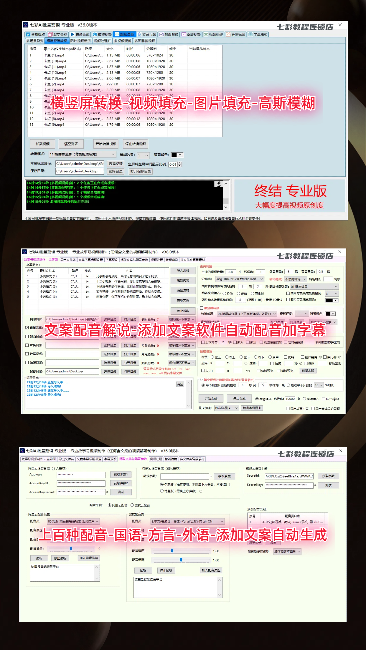 Bunte AI-Stapelbearbeitungssoftware, professionelle Version, vollautomatisches, intelligentes Misch- und Schneiden-Tool zur Erstellung kurzer Videosynthese-Überspielungen