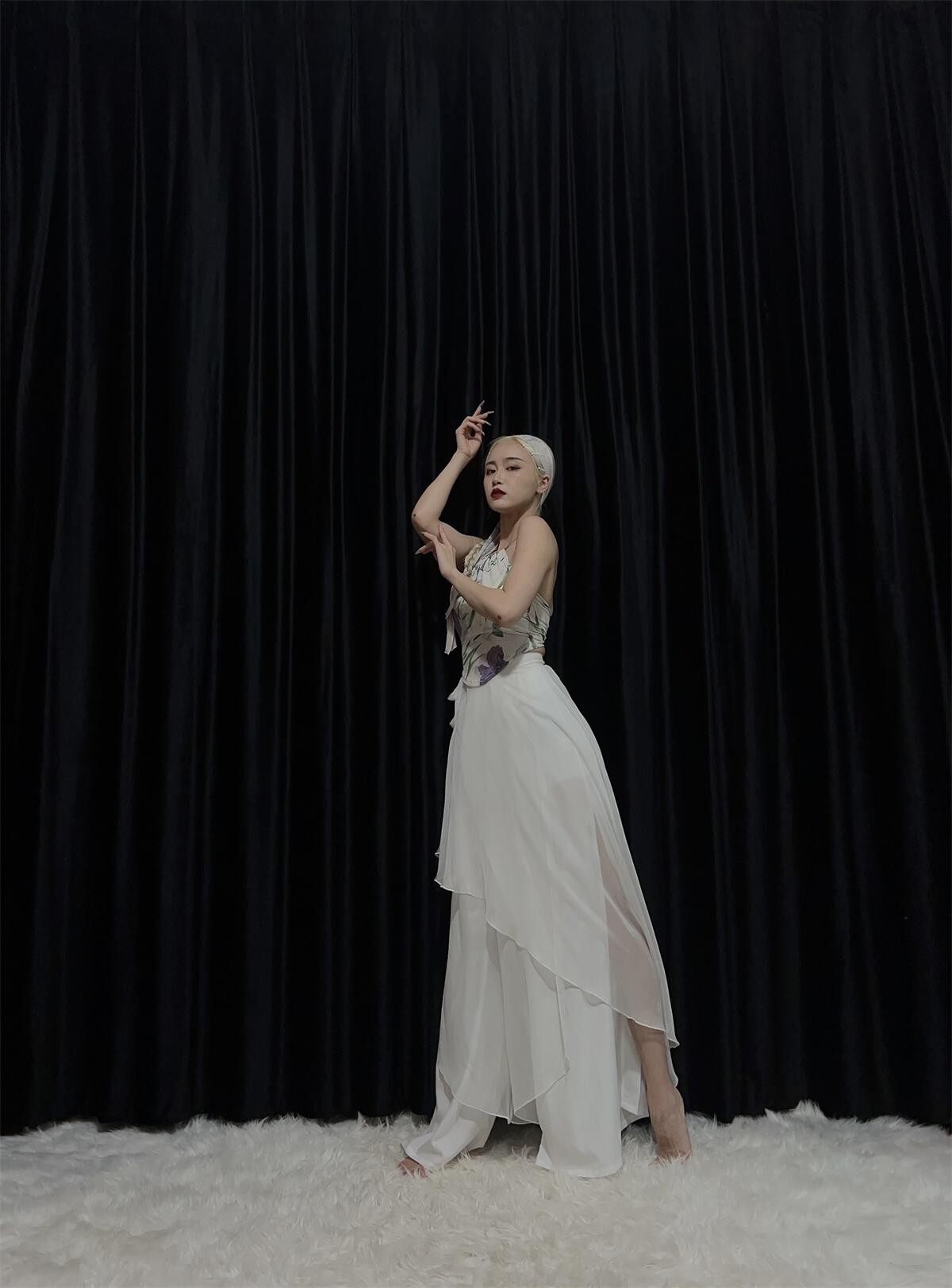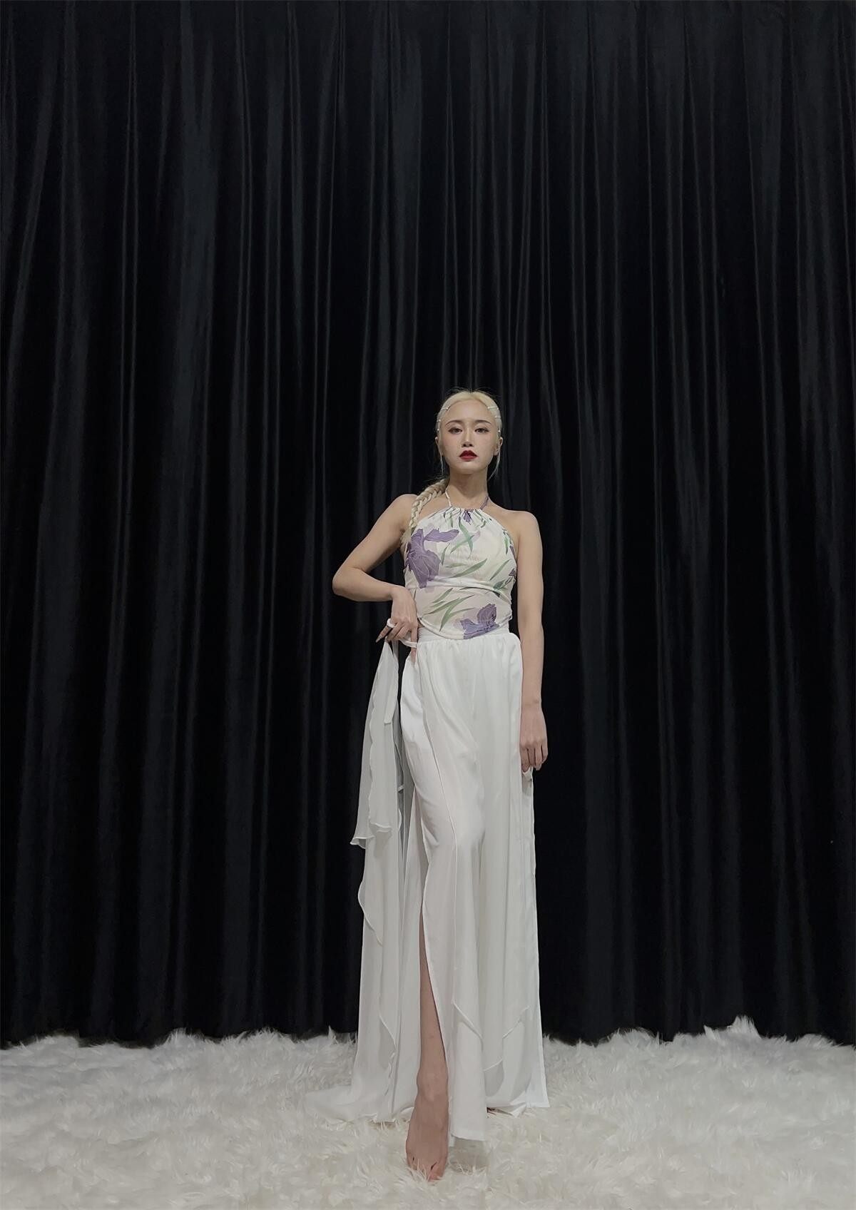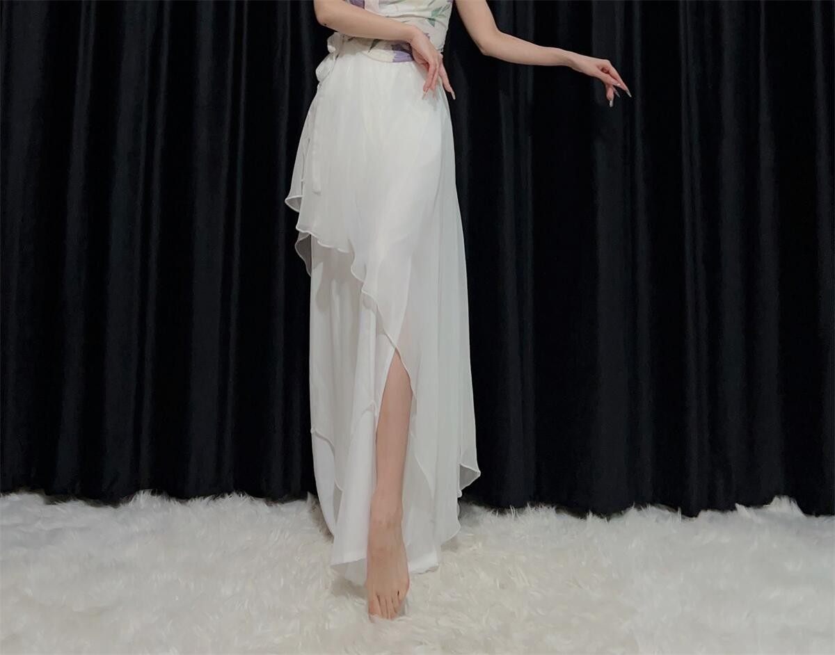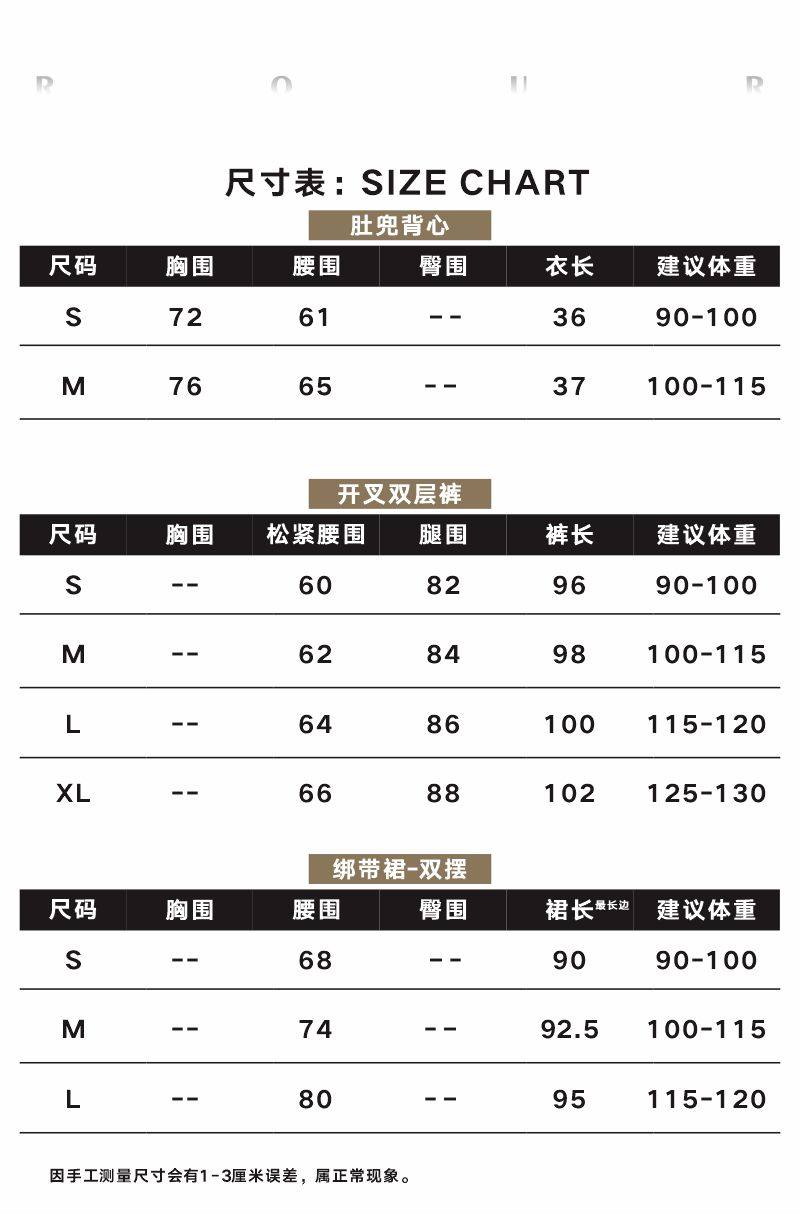 颜色分类 紫花肚兜,绿花纹肚兜,白色双层开叉裤,白色绑带裙子