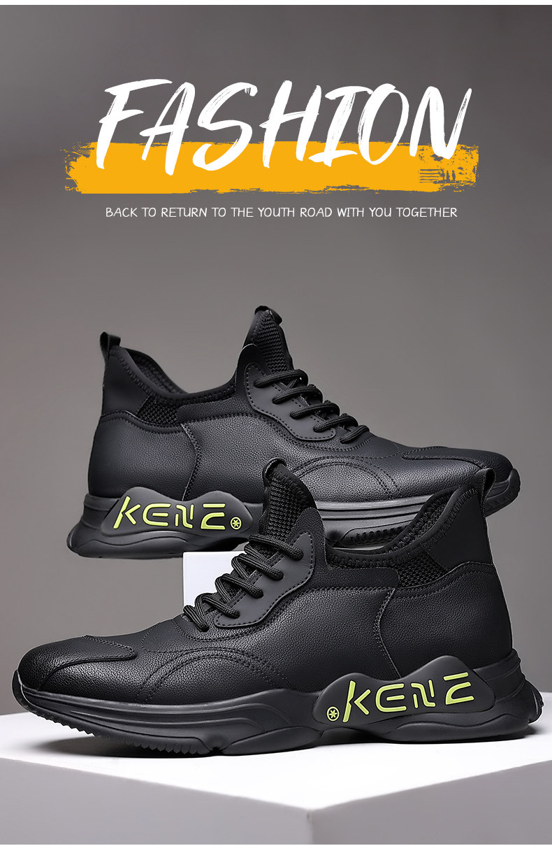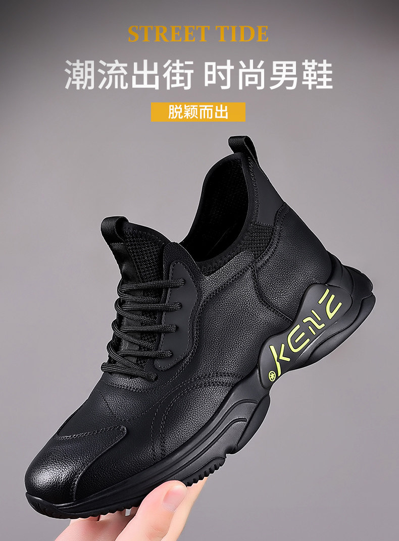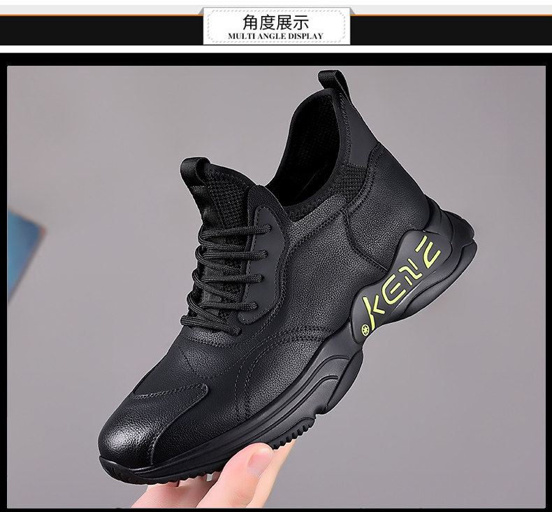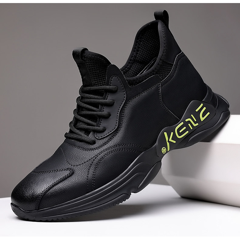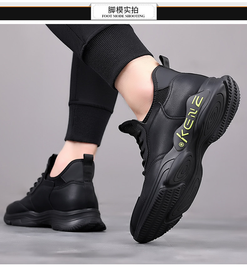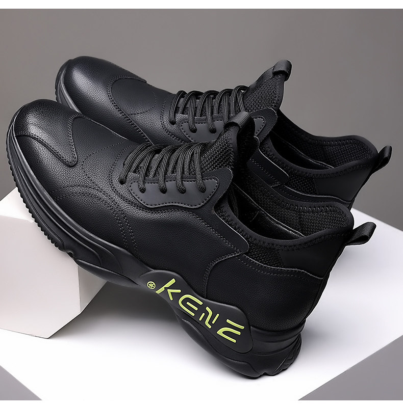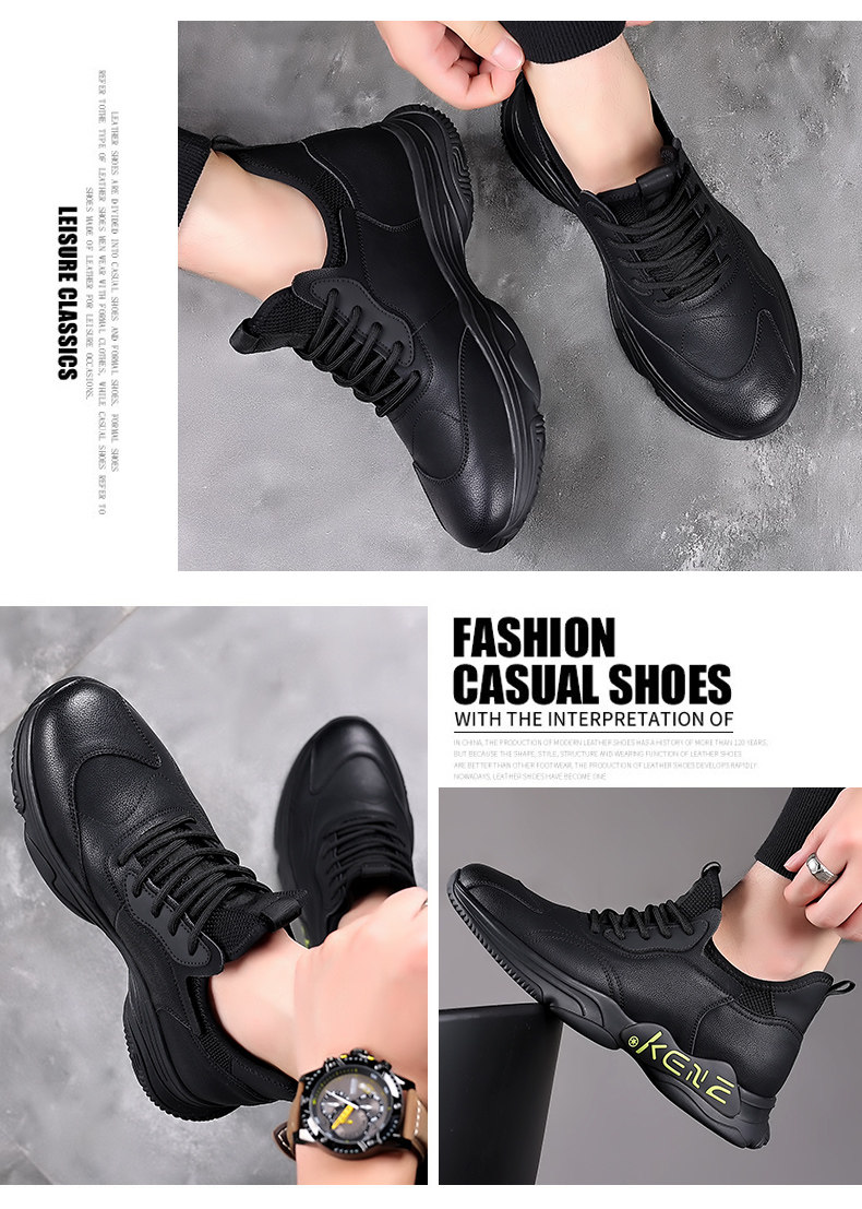 Men's Shoes Winter Fleece-Lined 2025 New Casual Shoes Men's Black Leather Shoes Men's Genuine Leather Height-Increasing Sneakers