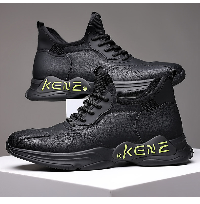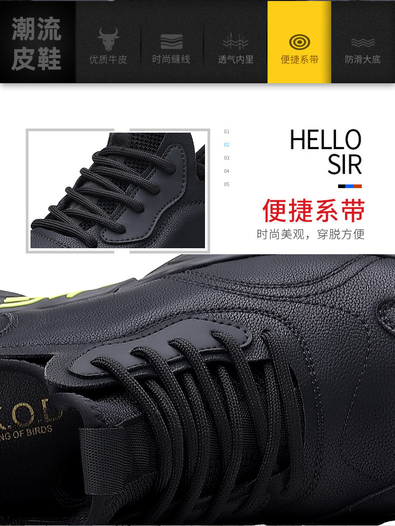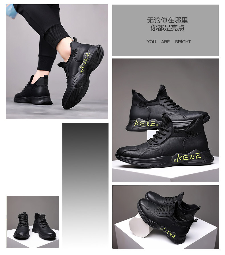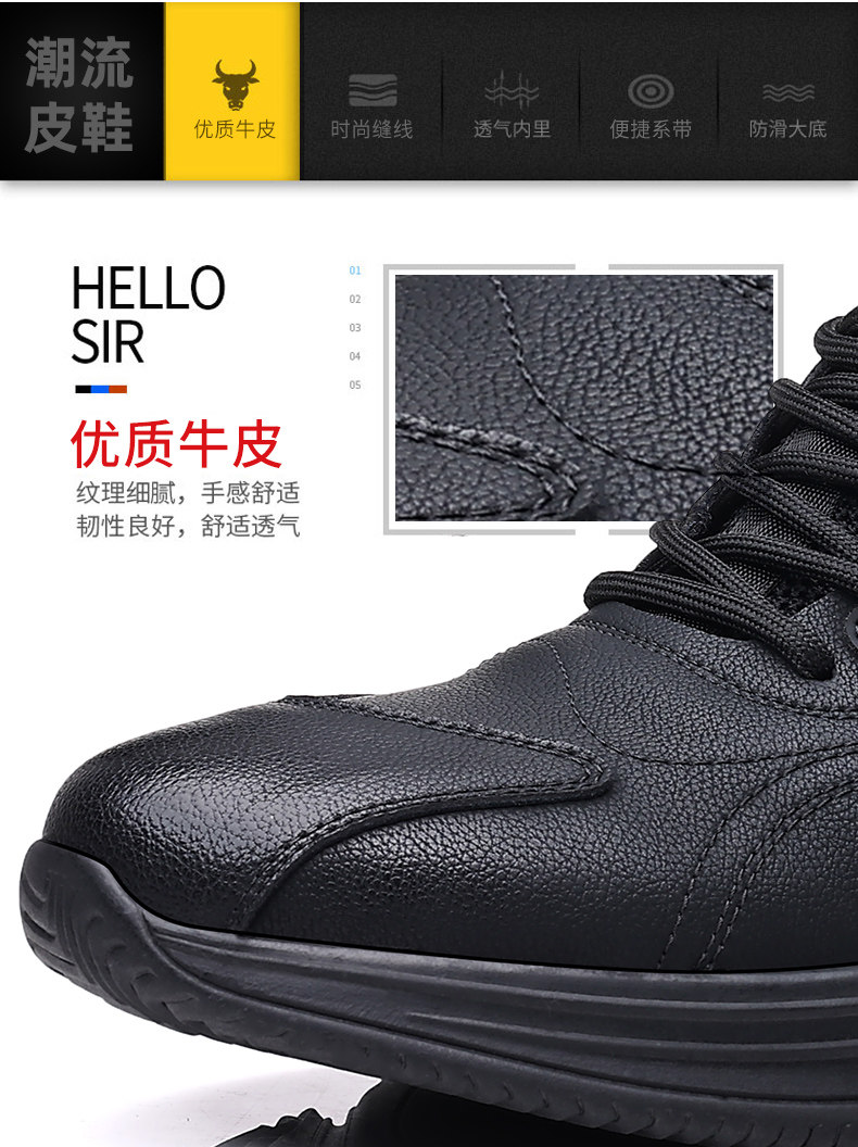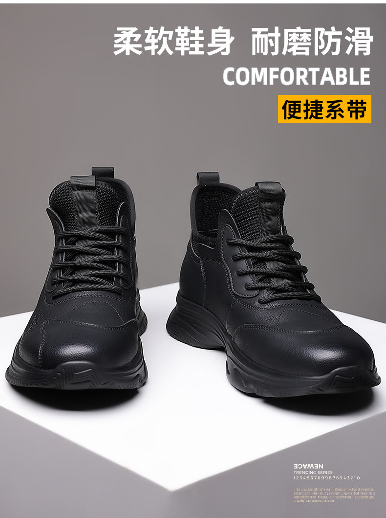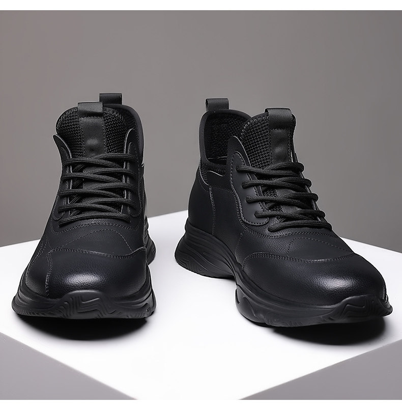 Men's Shoes Winter Fleece-Lined 2025 New Casual Shoes Men's Black Leather Shoes Men's Genuine Leather Height-Increasing Sneakers