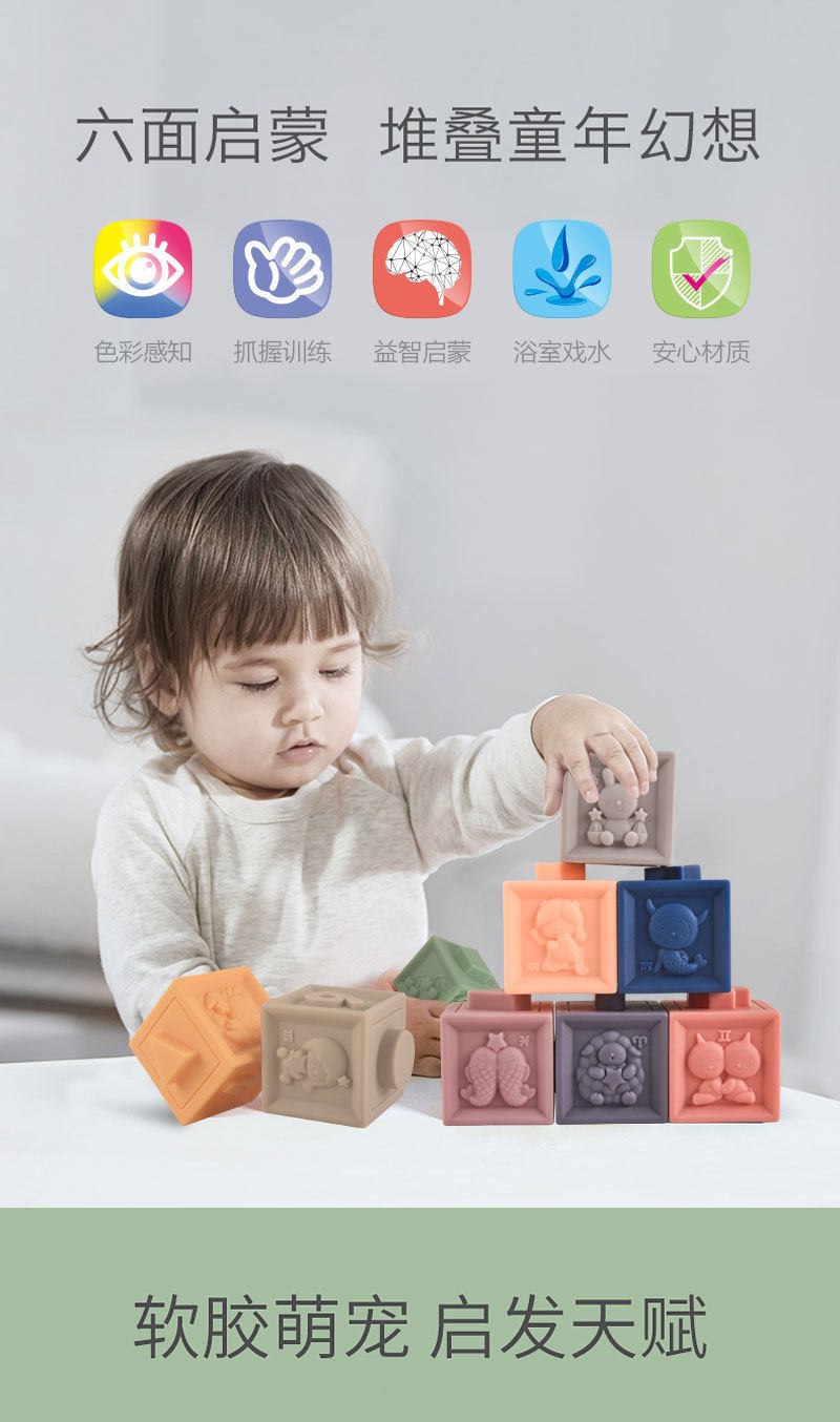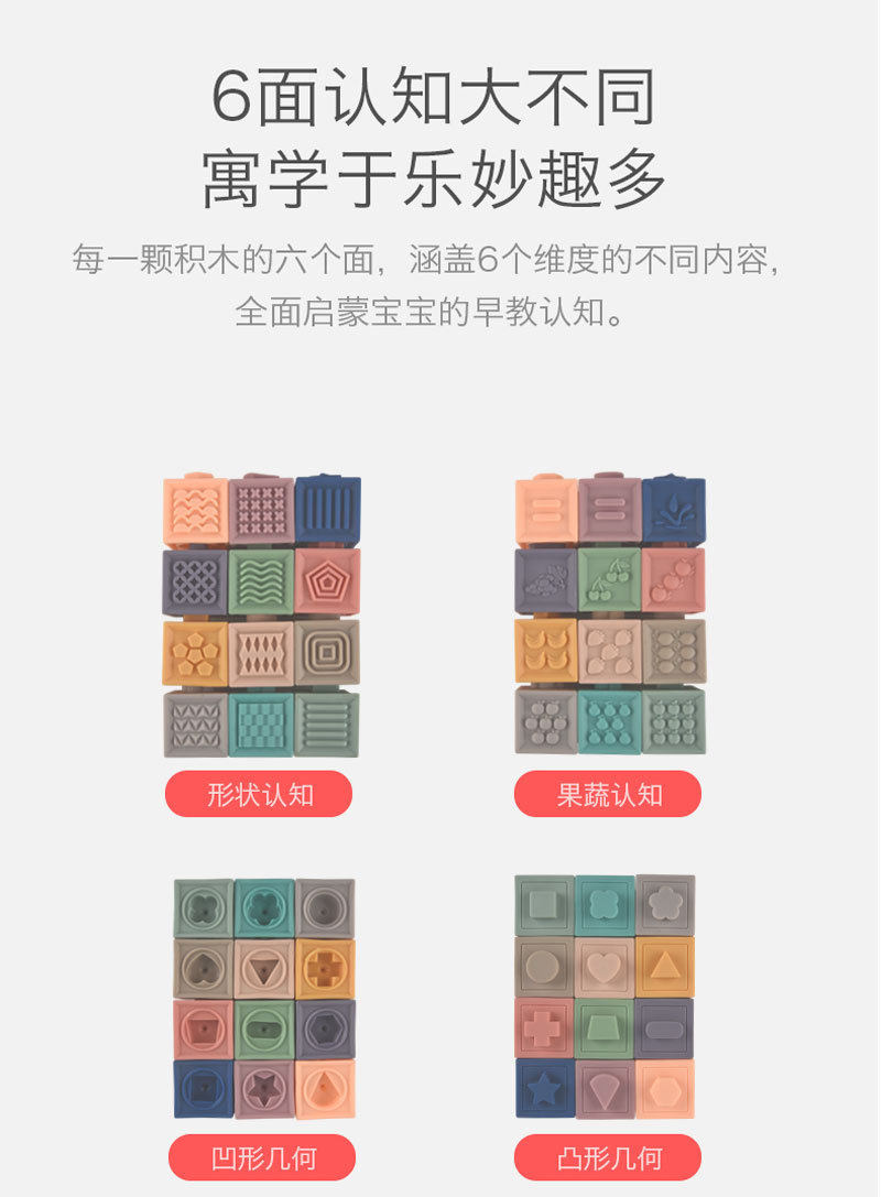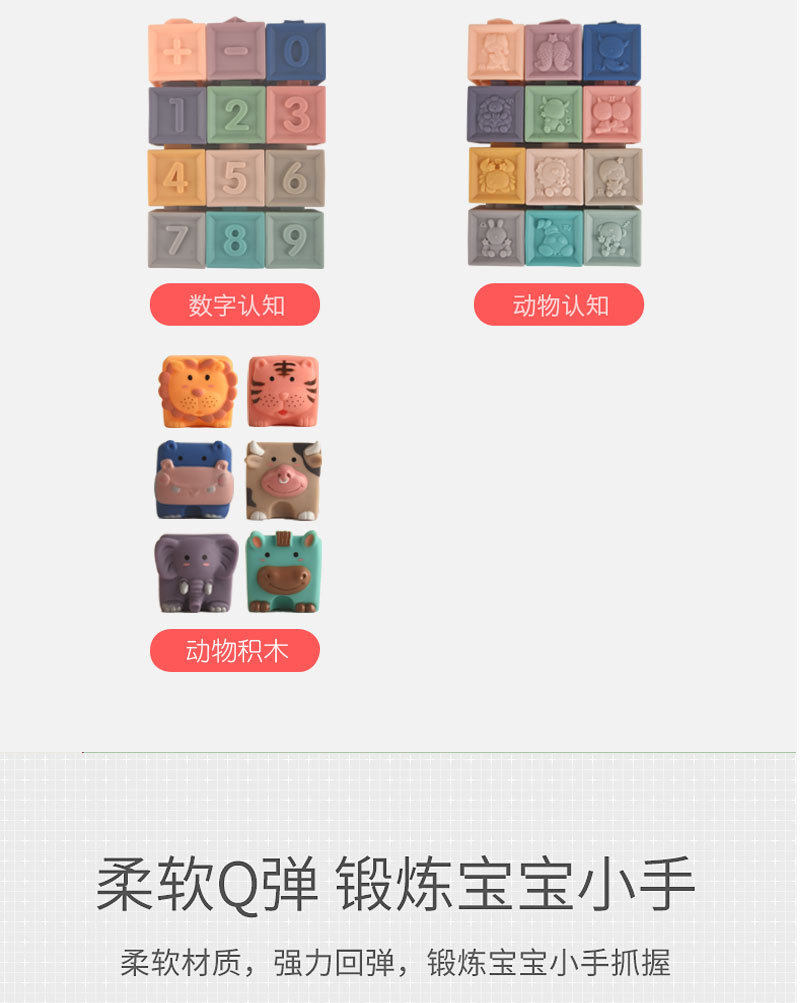 婴儿软胶积木宝宝6-8个月0-1岁儿童早教益智玩具软积木硅胶可啃咬