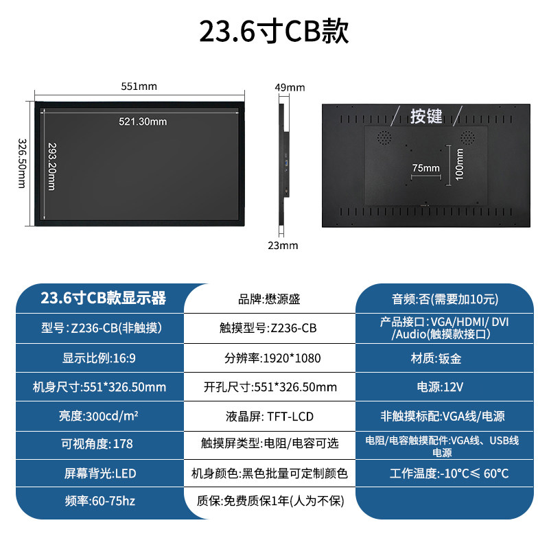 工业显示器嵌入式7-23.6寸电阻屏幕开放式壁挂触摸屏工控显示屏