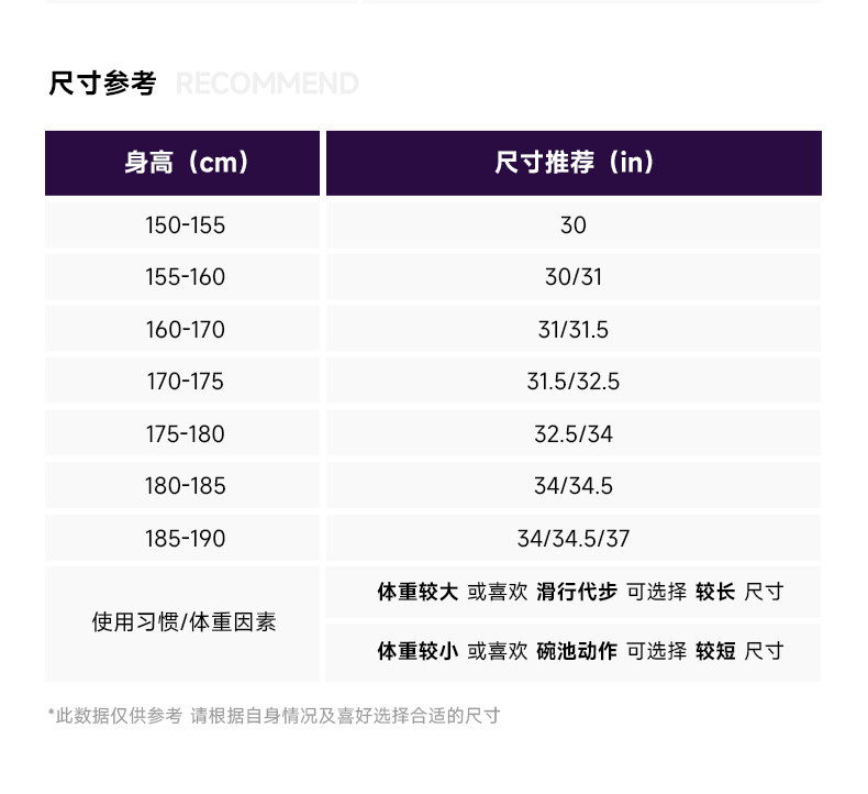 USA(inch) 28-30 30-32 32-34 34-38 38-42