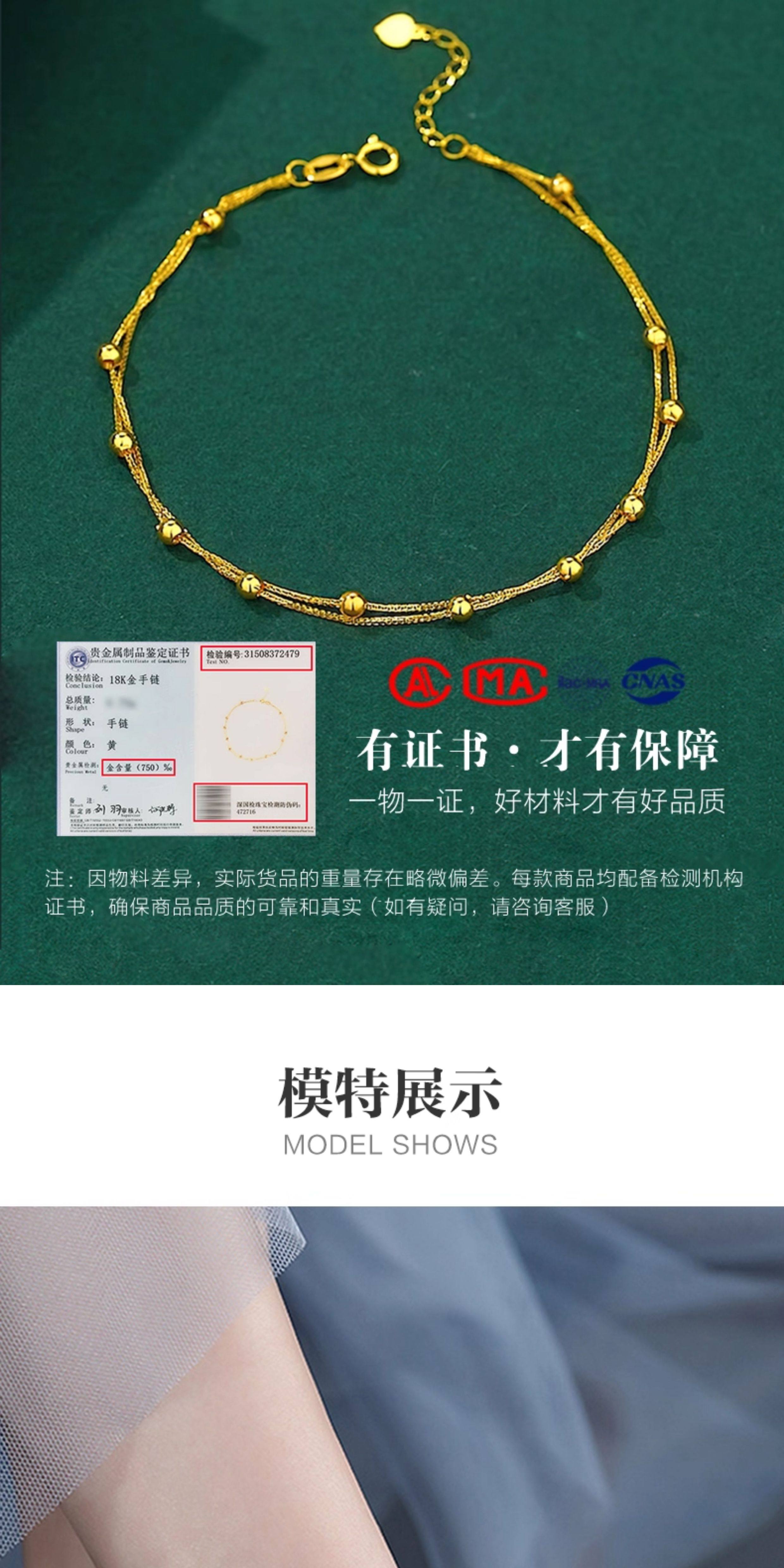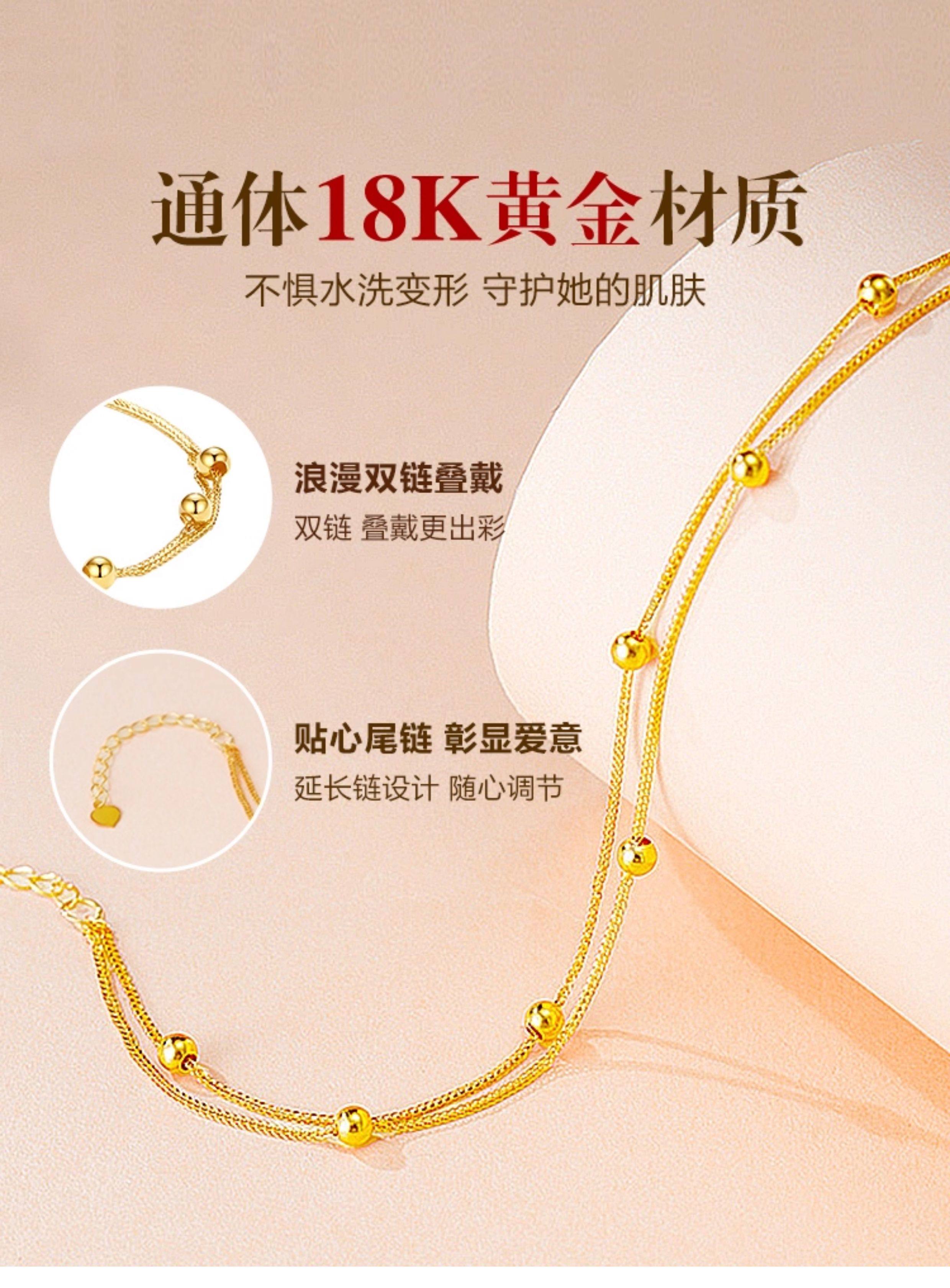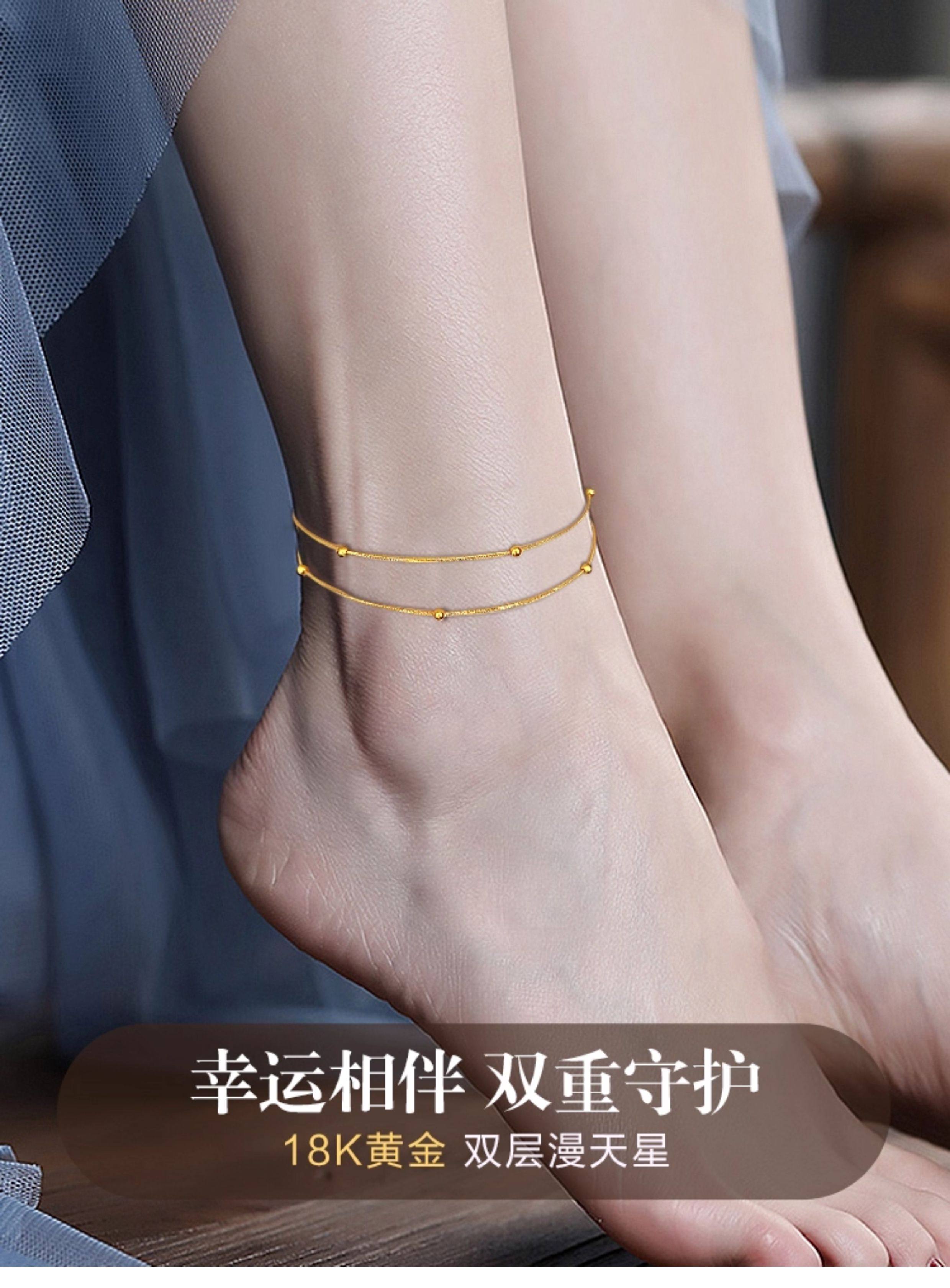 Gold 18K Anklet, New Style Full of Stars, Gold Transfer Beads, Au750, Practical as a New Year Gift for Your Girlfriend