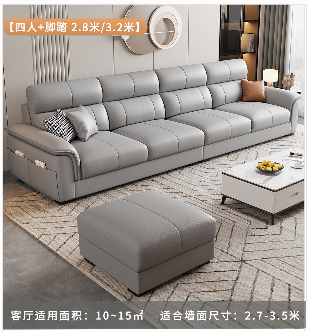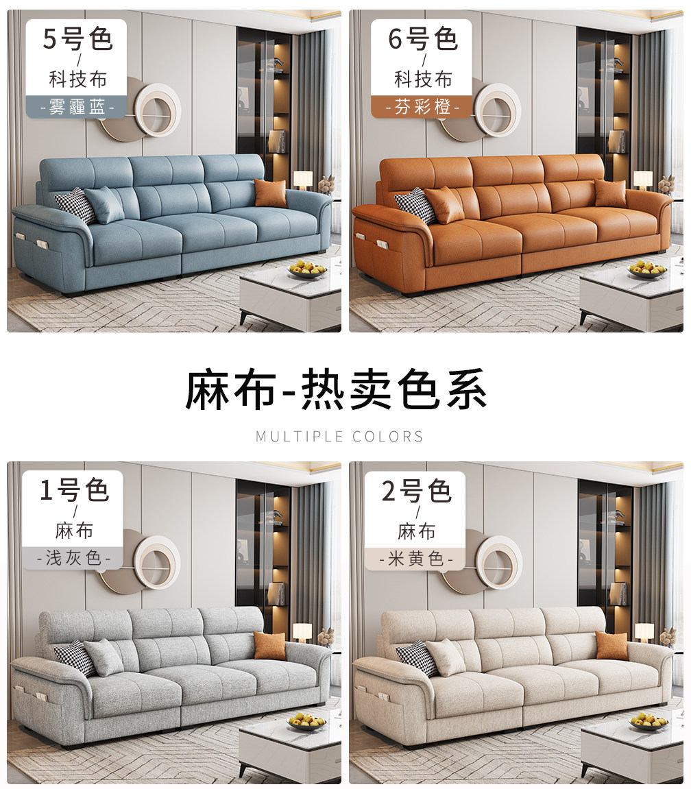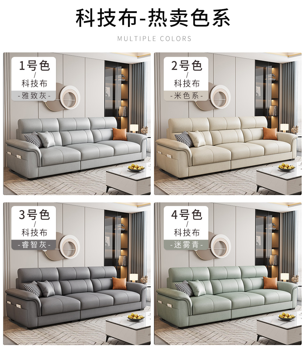 Einfache moderne Technologie Stoffsofa Wohnzimmer 2025 neue kleine Wohnung dreisitzige gerade Reihe Leder leichte Luxusmöbel