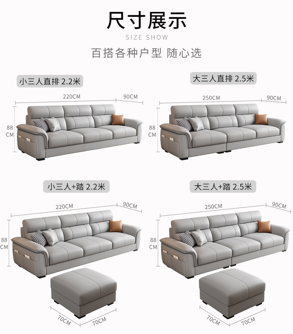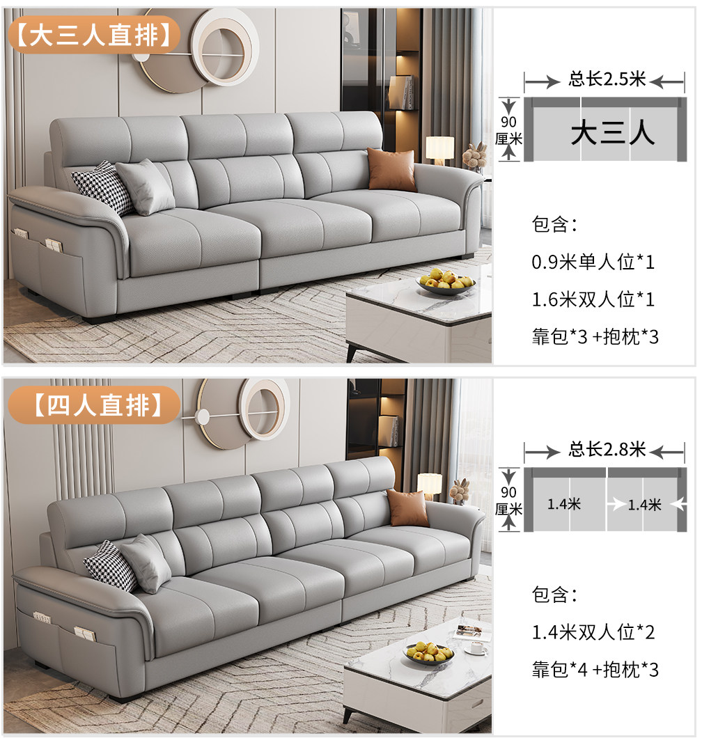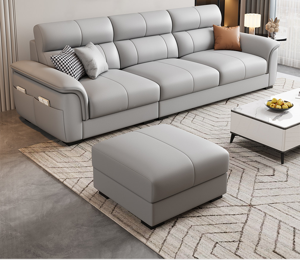 Einfache moderne Technologie Stoffsofa Wohnzimmer 2025 neue kleine Wohnung dreisitzige gerade Reihe Leder leichte Luxusmöbel