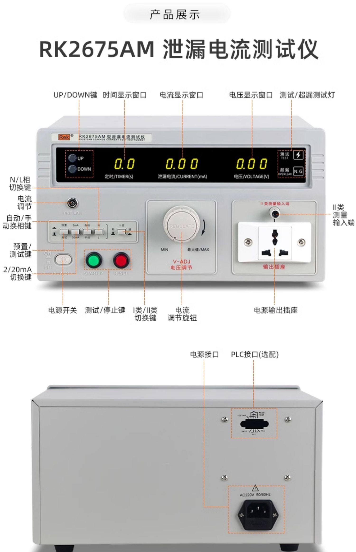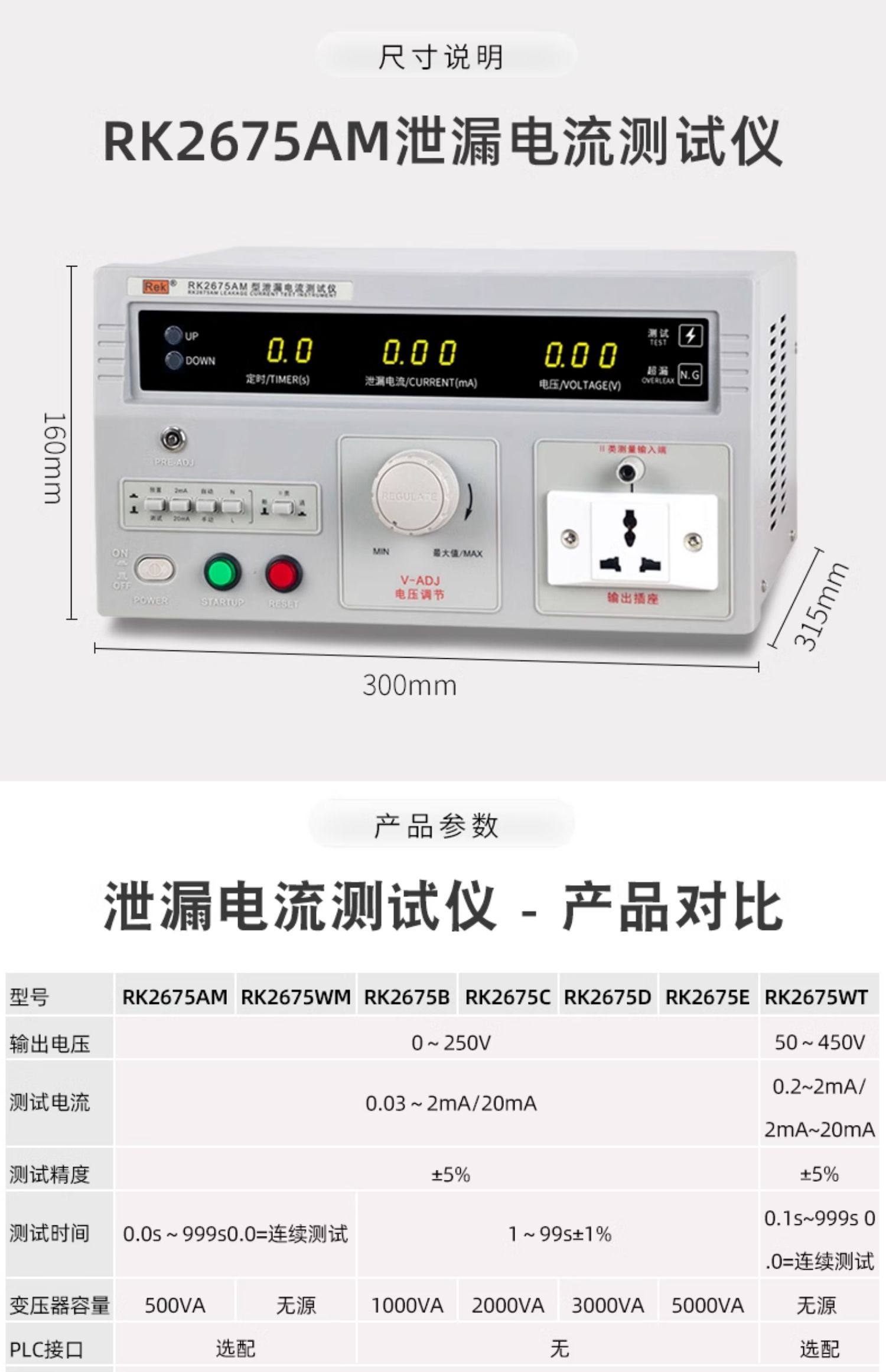 美瑞克RK2675AM泄漏电流测试仪RK2675WM有源无源泄露电流测试仪