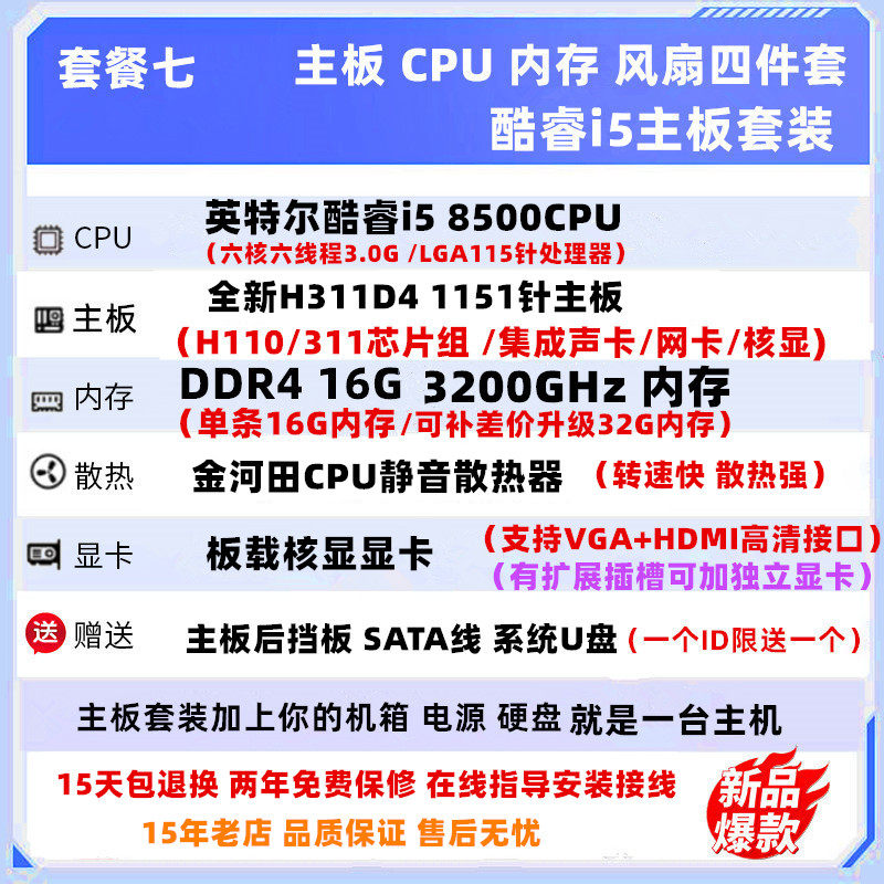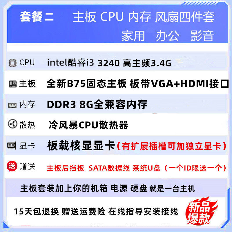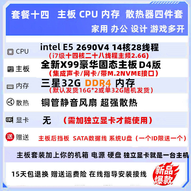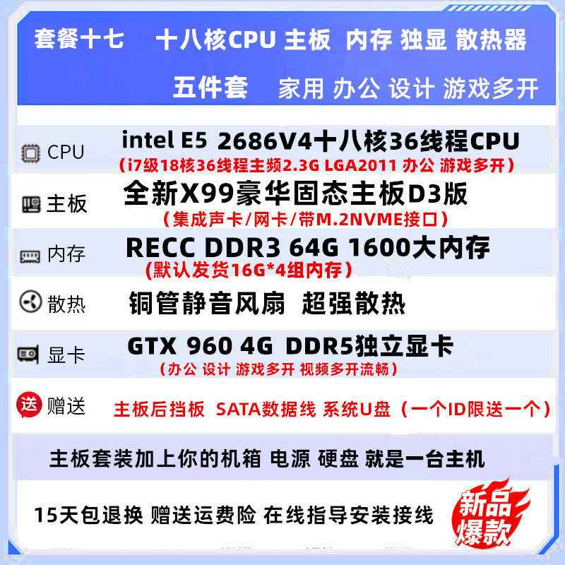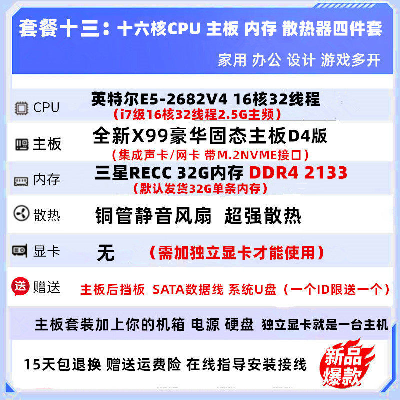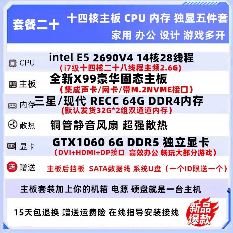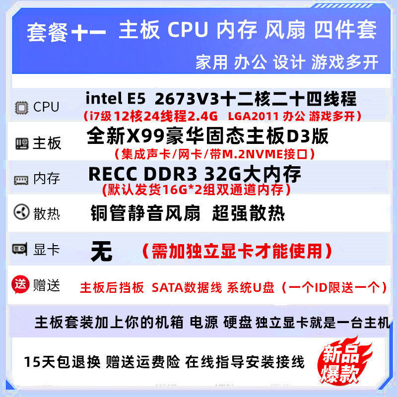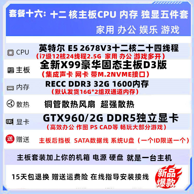Brand New I7 Desktop Computer Motherboard Cpu Memory I5 Office Game Chicken Set X99 Ten-Core Five-Piece Set I3
