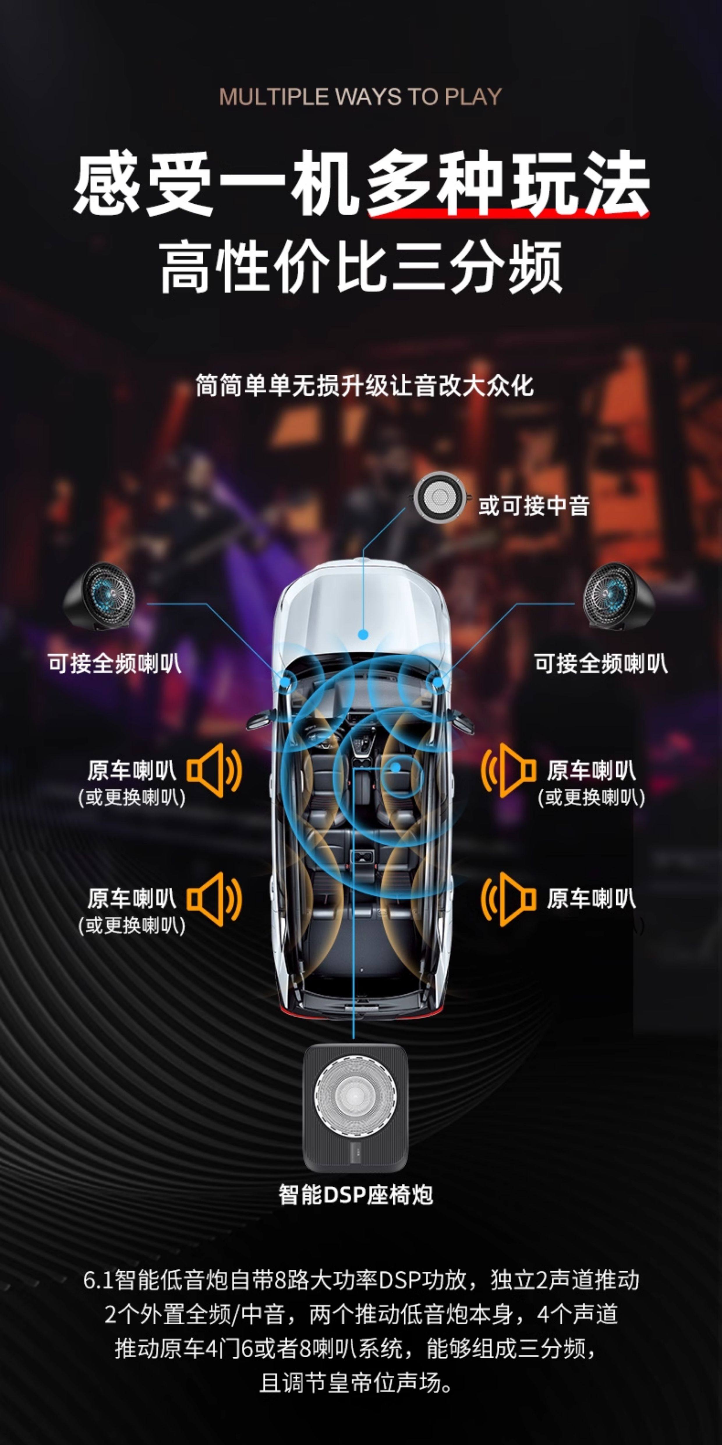 6.1汽车音响无损改装三分频车载喇叭扬声器dsp低音炮功放高音专用