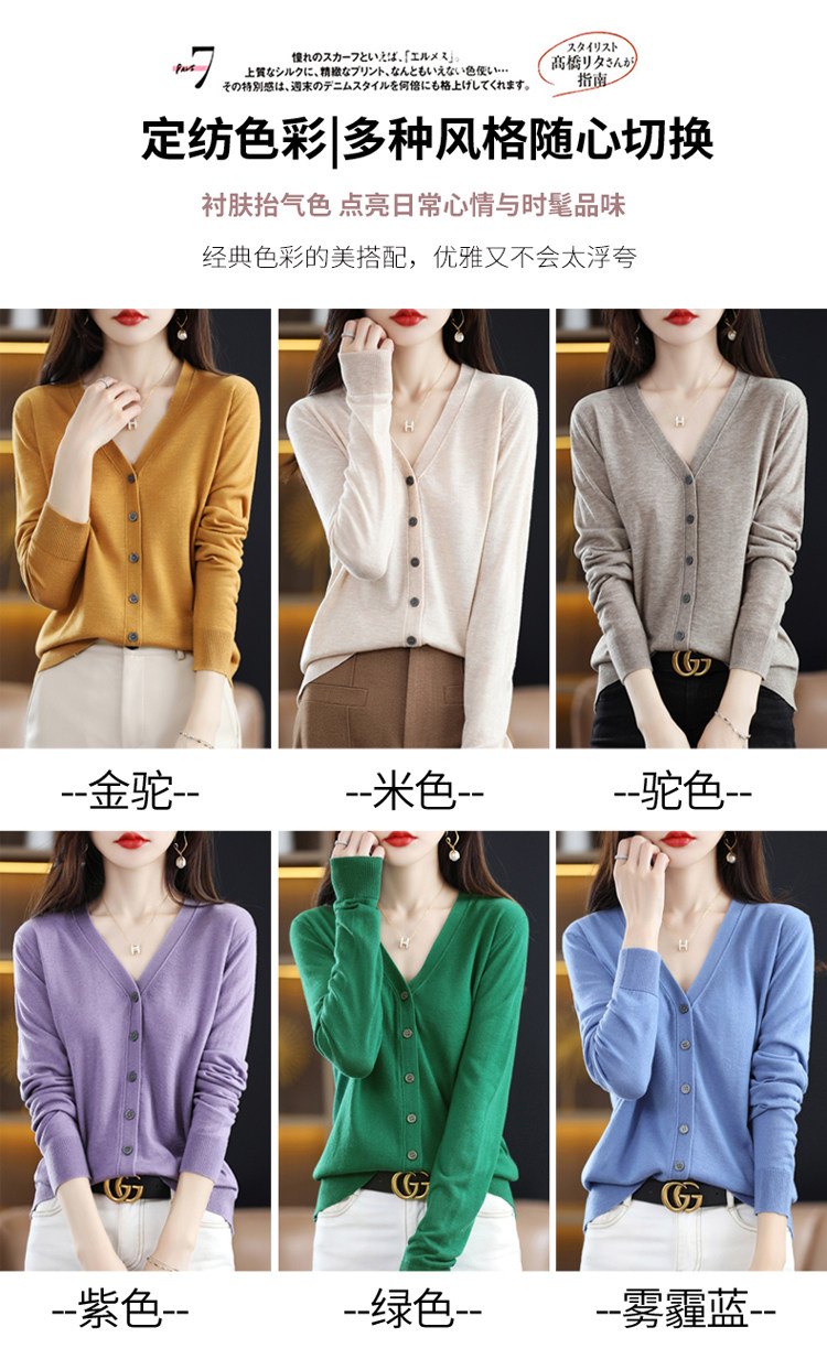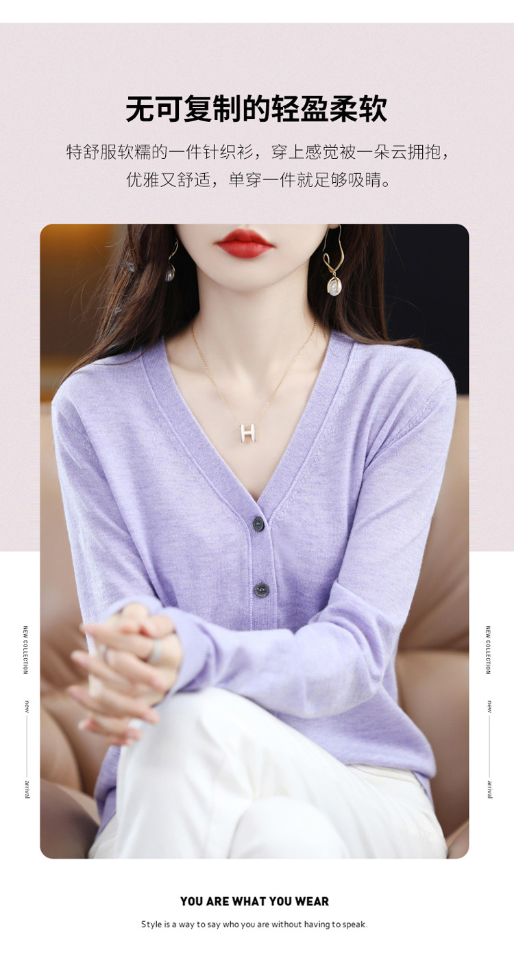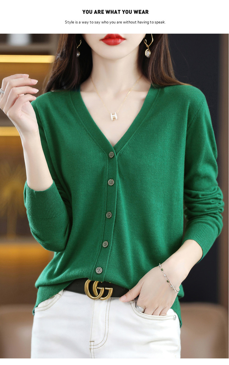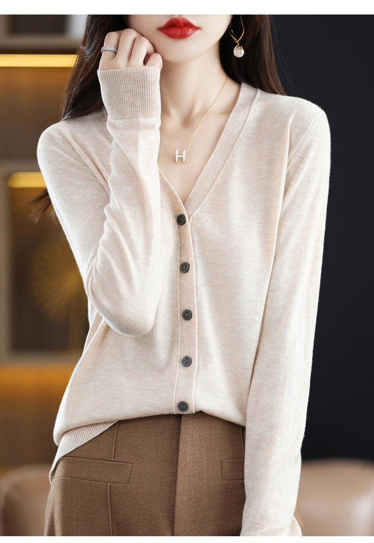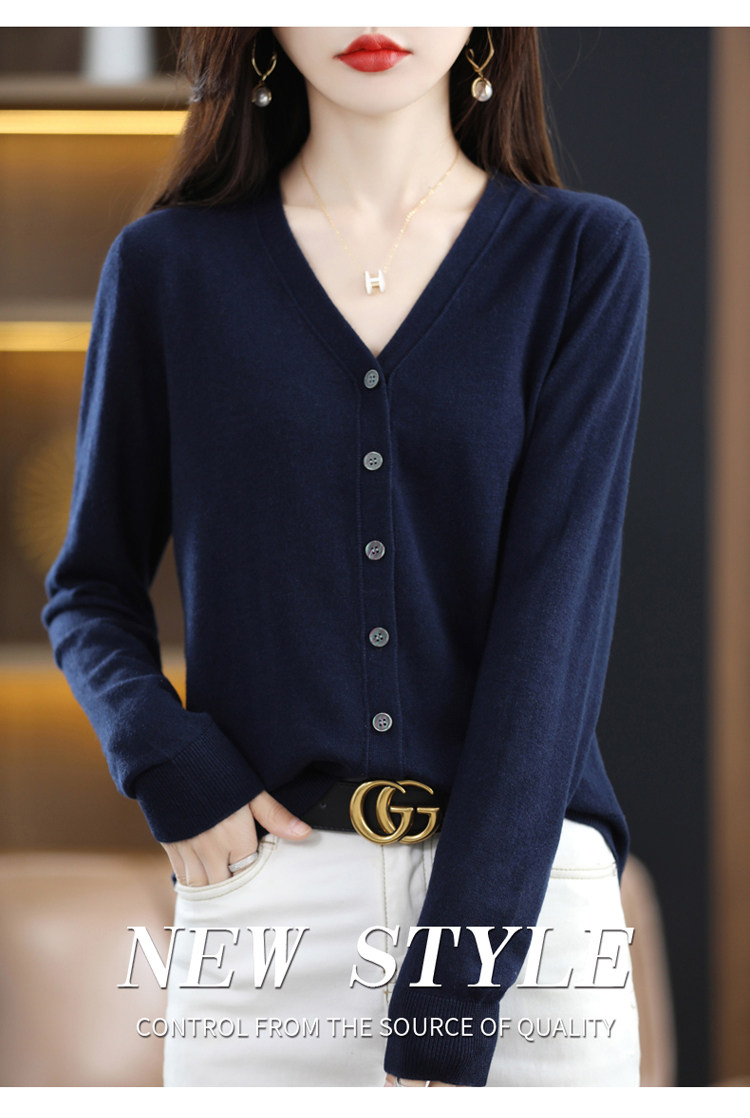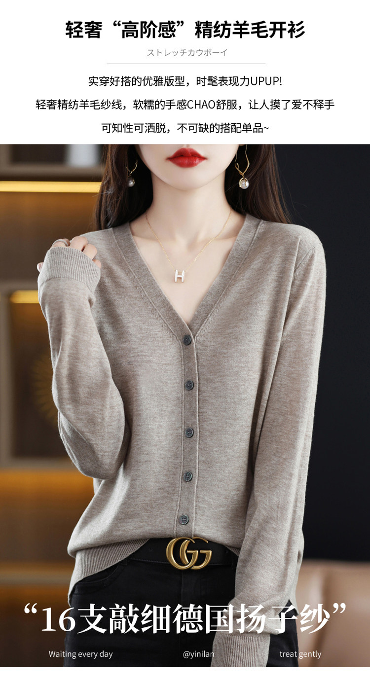 High-End-Wollpullover für Damen 25 Frühling und Herbst neue dünne Wollstrickjacke mit V-Ausschnitt große, lockere Langarmstrickjacke