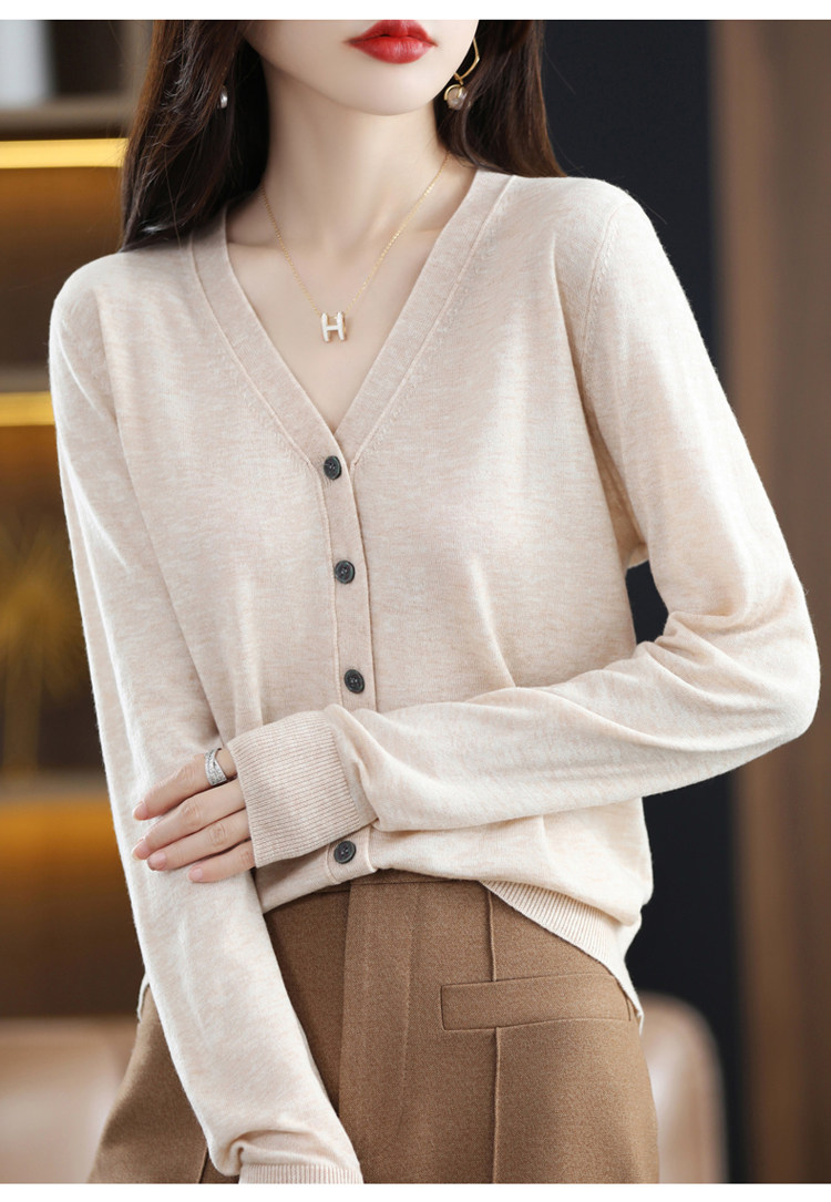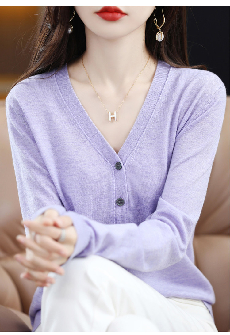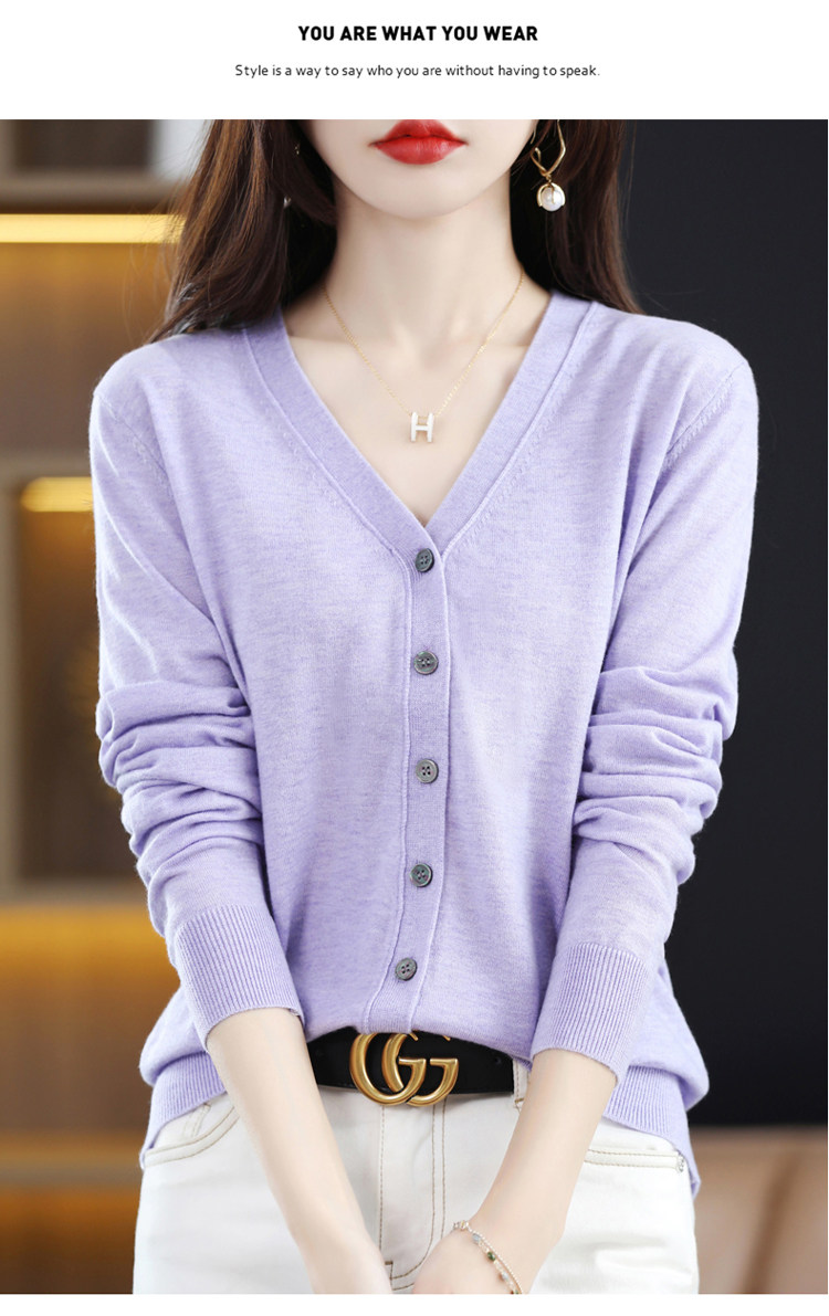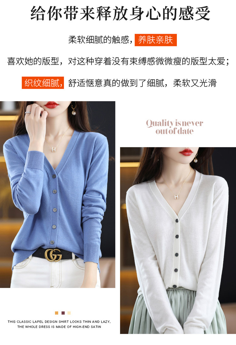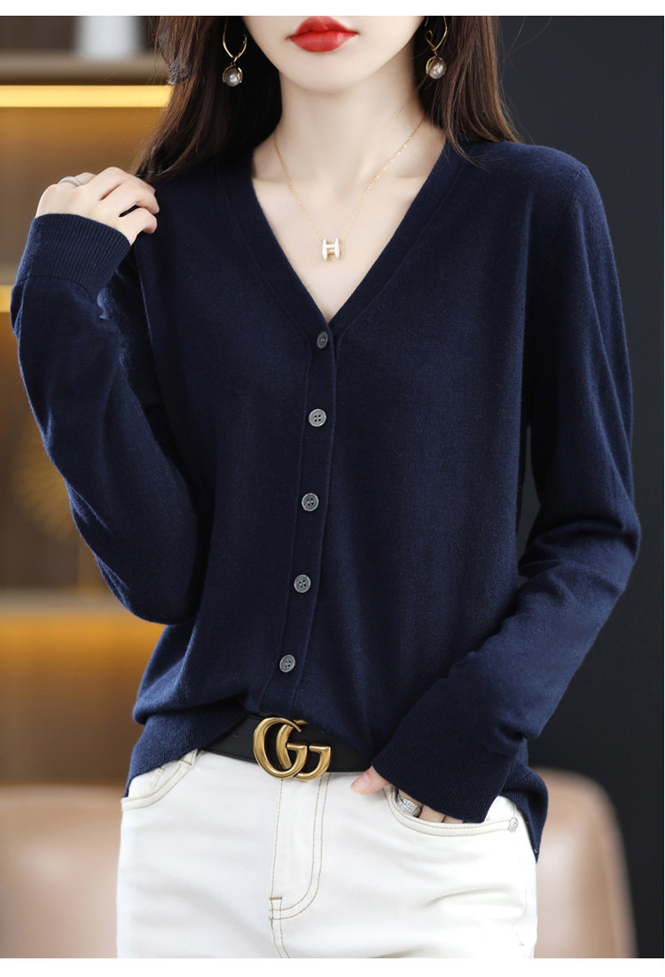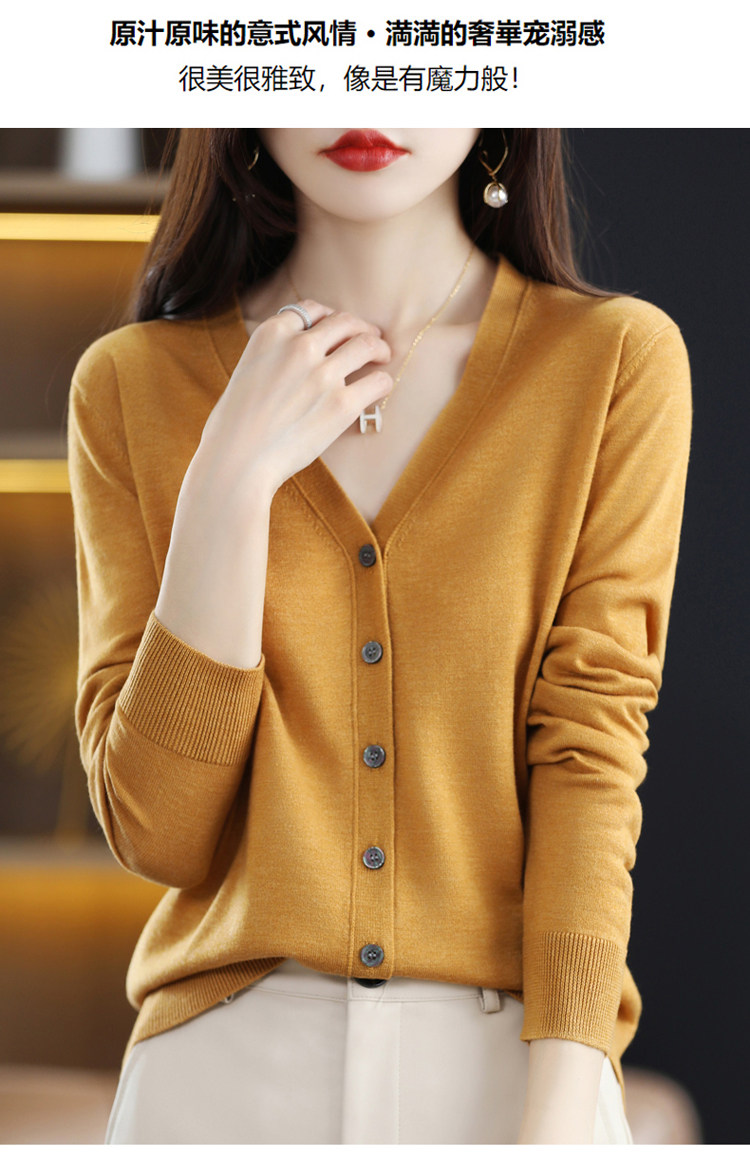 High-End-Wollpullover für Damen 25 Frühling und Herbst neue dünne Wollstrickjacke mit V-Ausschnitt große, lockere Langarmstrickjacke