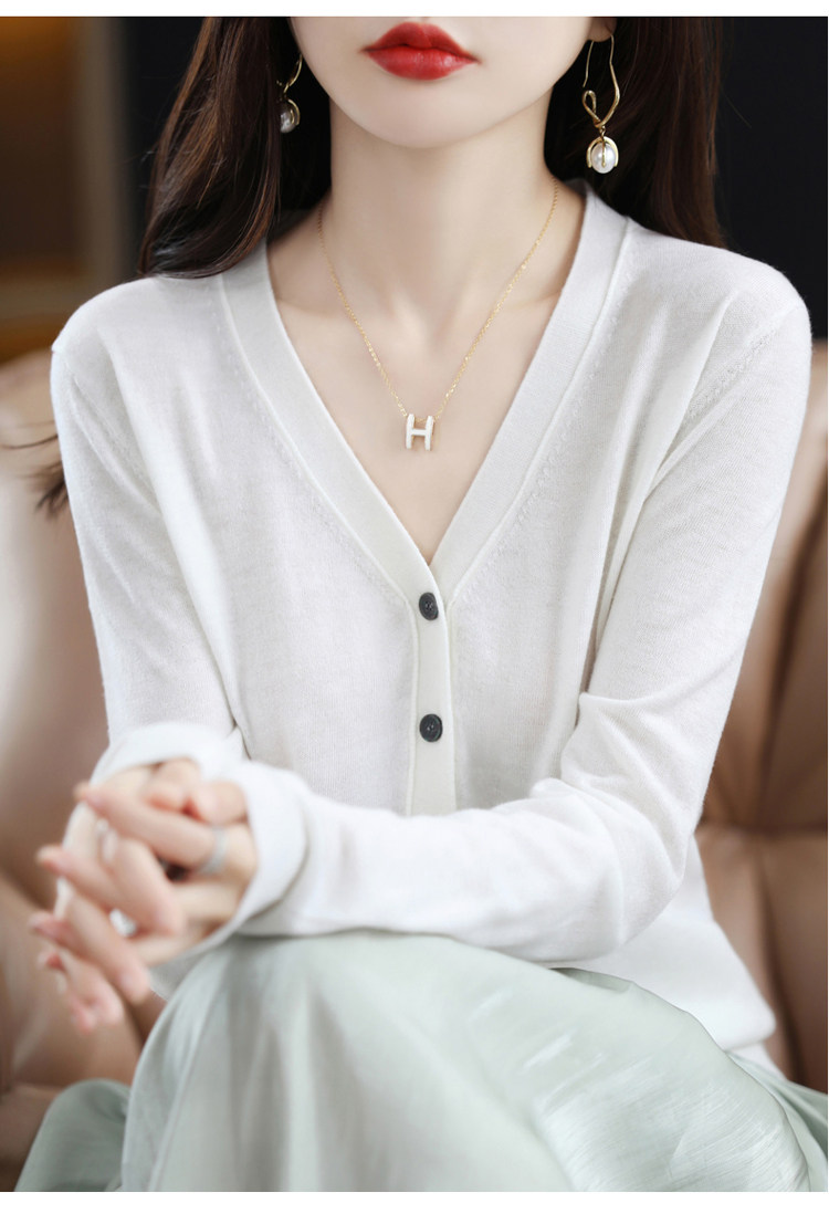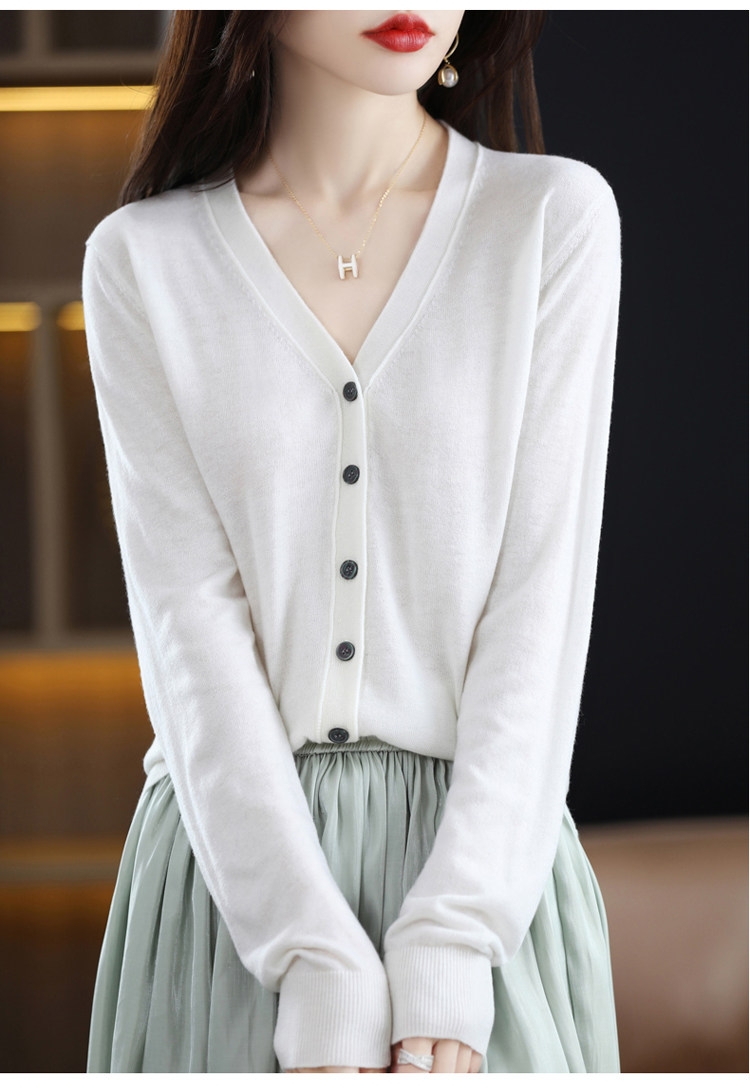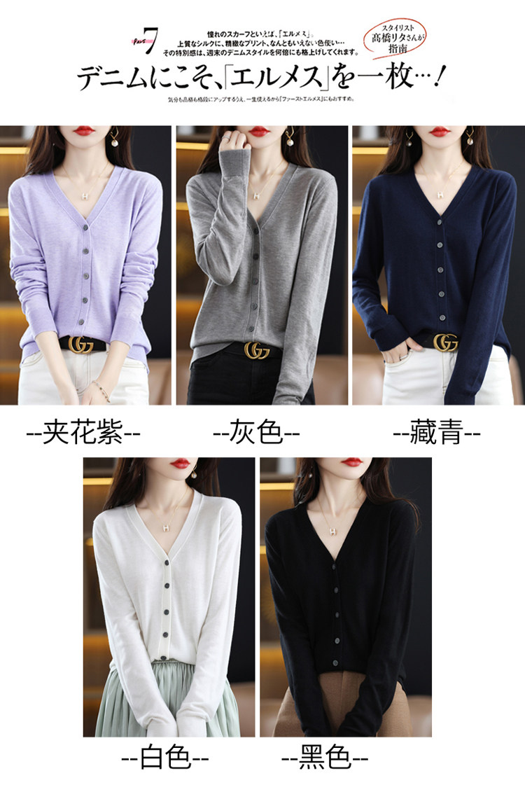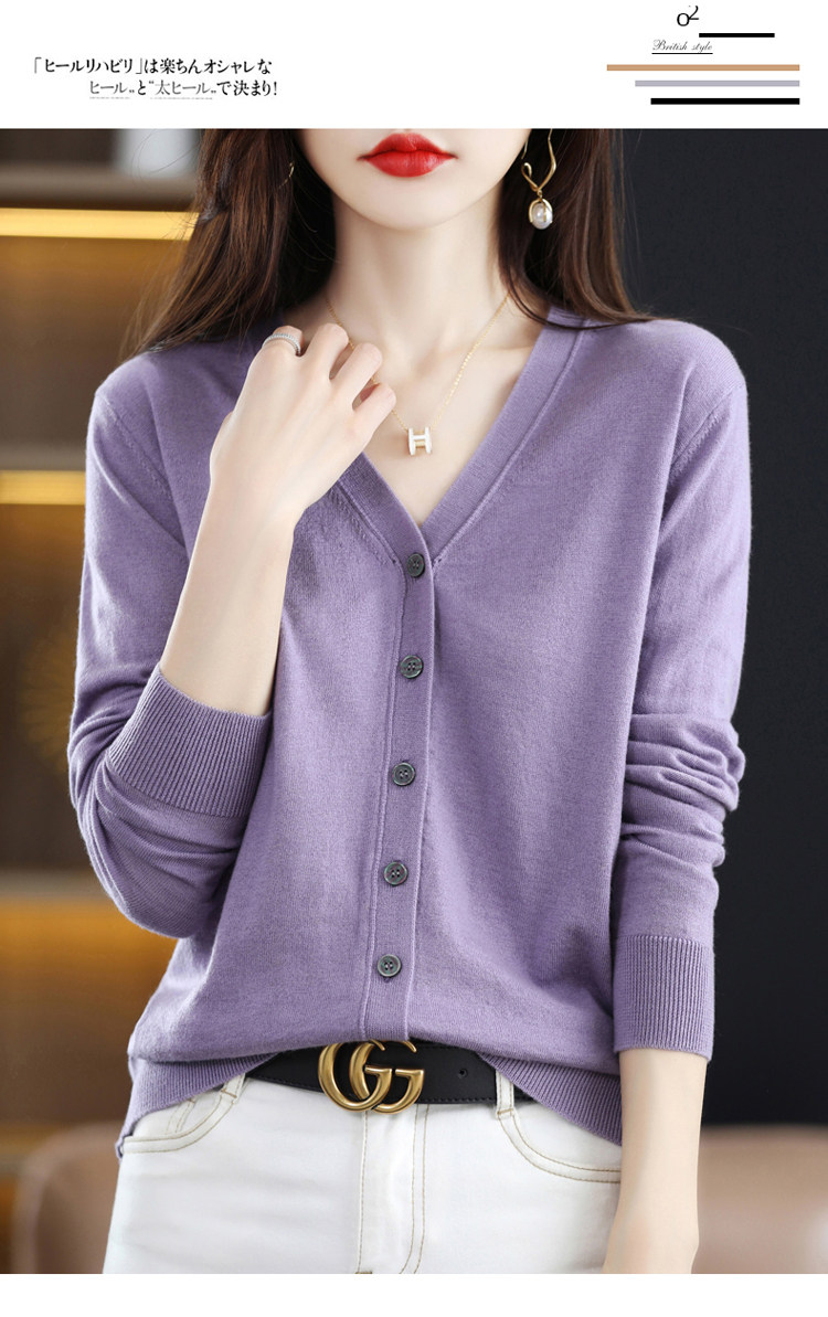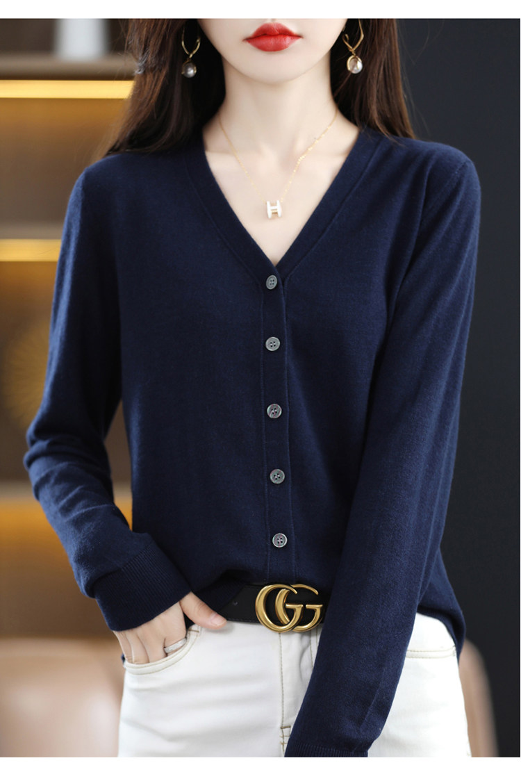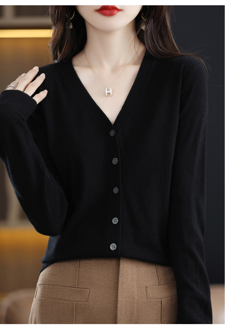 High-End-Wollpullover für Damen 25 Frühling und Herbst neue dünne Wollstrickjacke mit V-Ausschnitt große, lockere Langarmstrickjacke