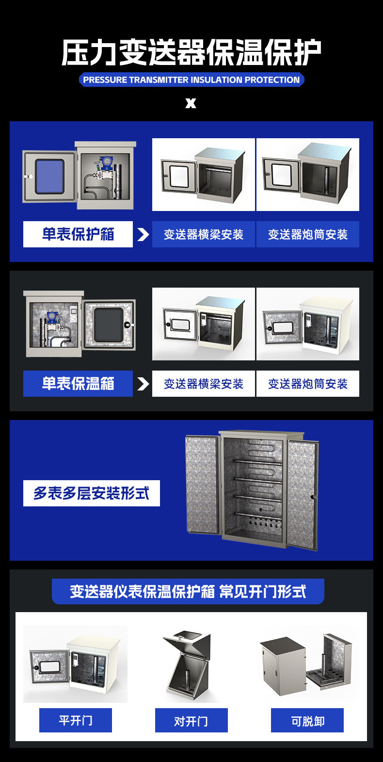 Коробка из нержавеющей и углеродистой стали для изоляции и защиты различных типов приборов/измерительных трансмиттеров/с плоской дверцей и диагональным отверстием