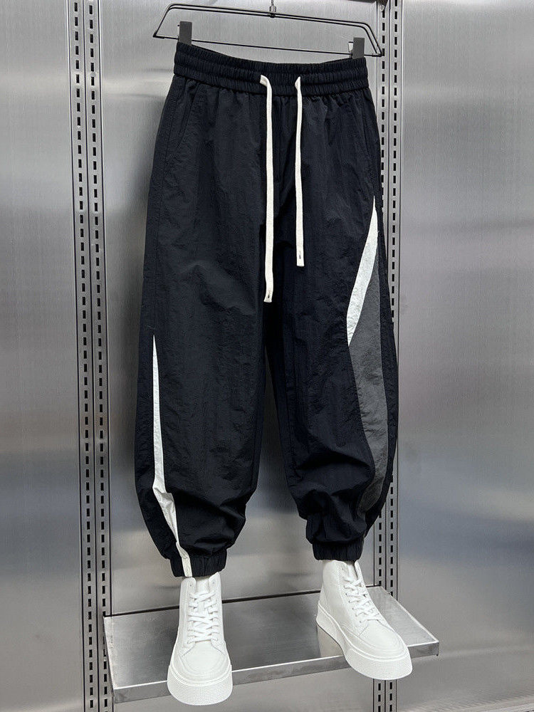 Extra Large Size 150kg Summer Quick-Drying Striped Patchwork Jogger Sweatpants Men's Trendy Loose Casual Harem Pants2