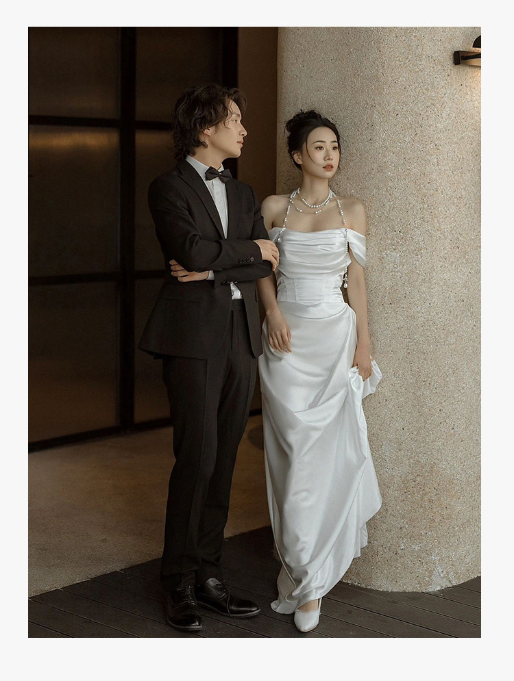 Queen Mother of the West Light Wedding Dress 2025 New One Shoulder Satin Outer Dress Small High-end Bride Wedding Dress
