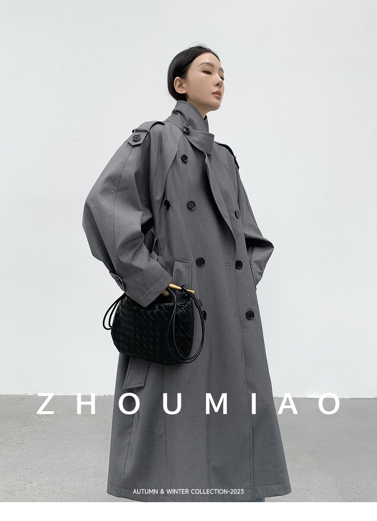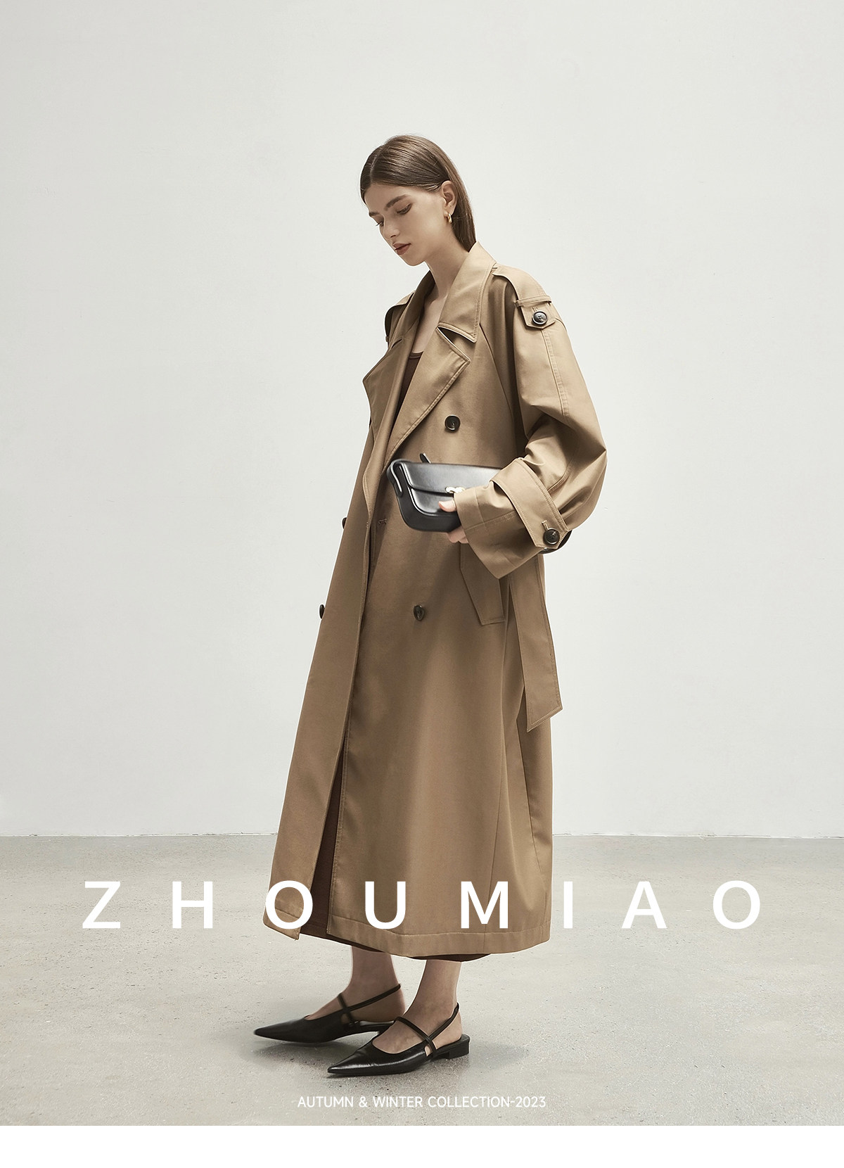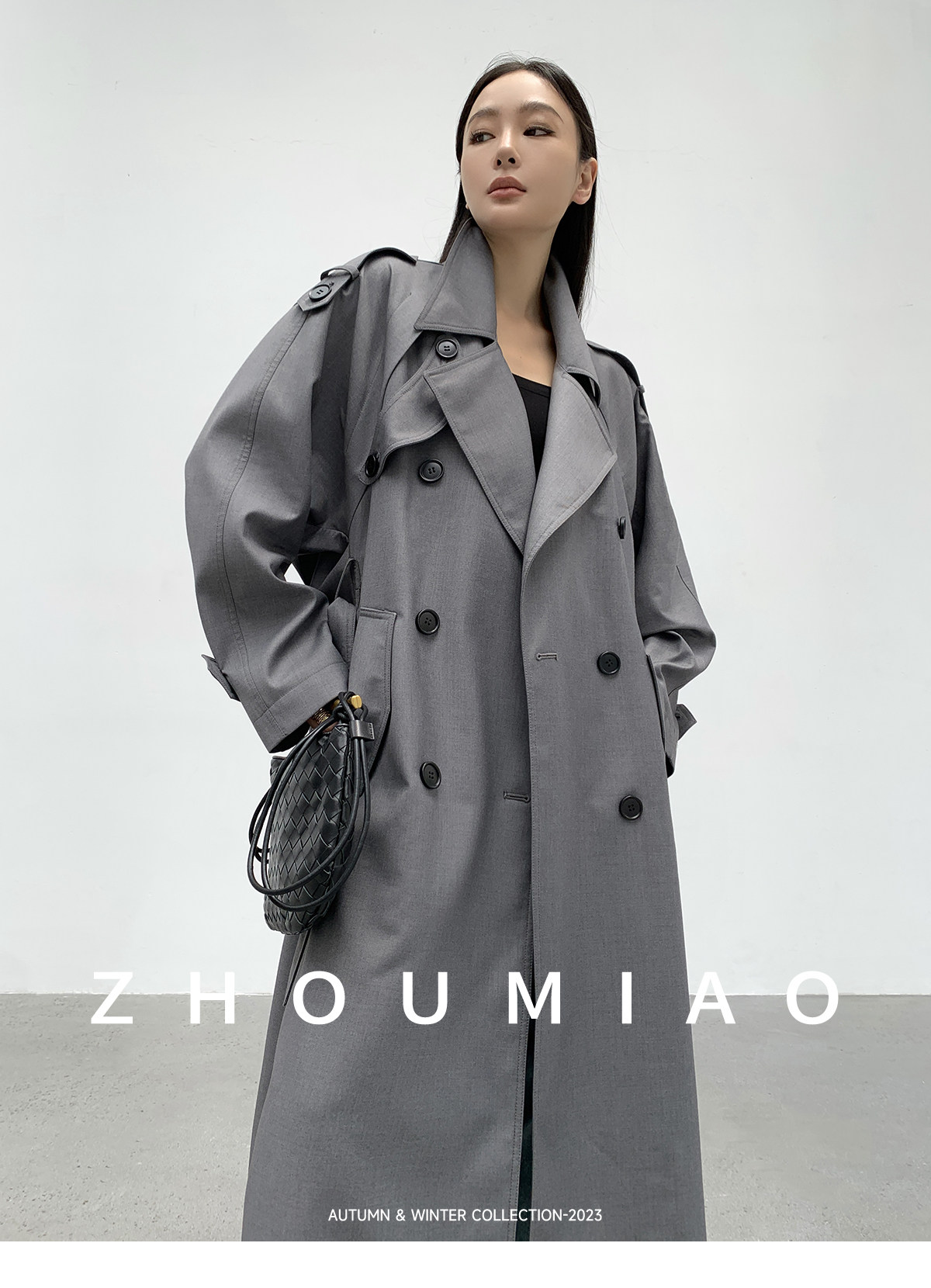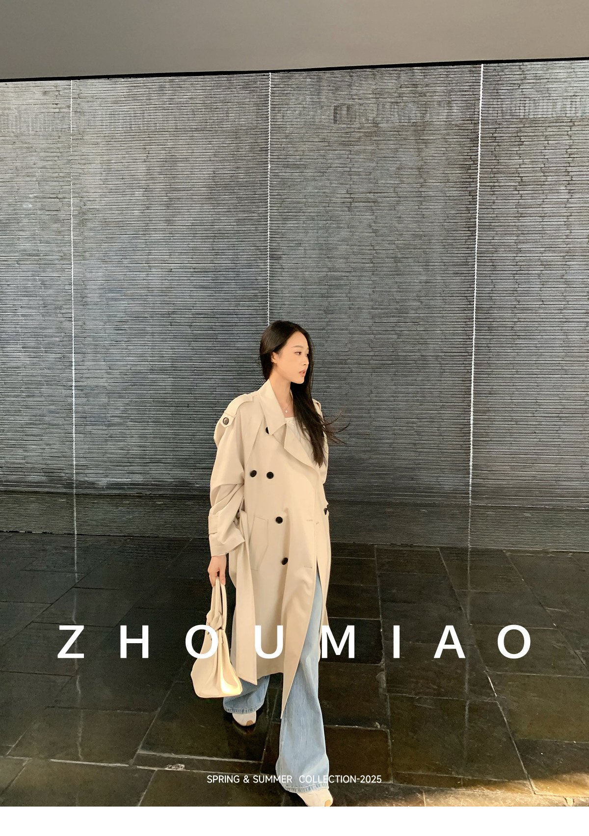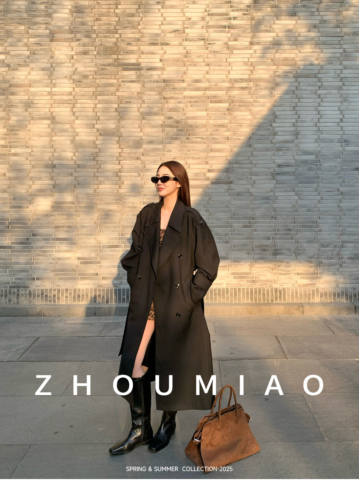 周淼ZHOUMIAO巴黎旧梦经典廓形大翻领双排扣中长款气质风衣外套女