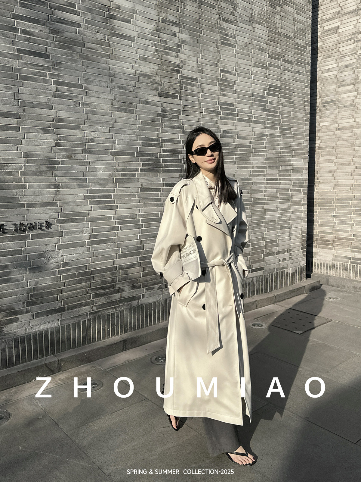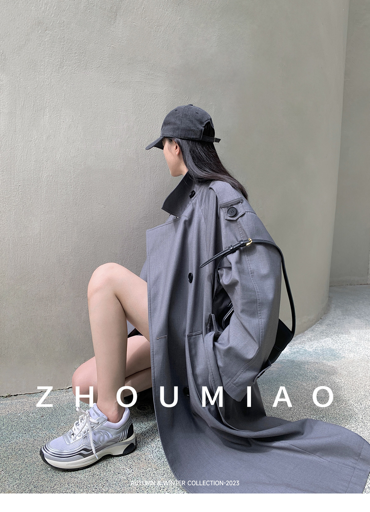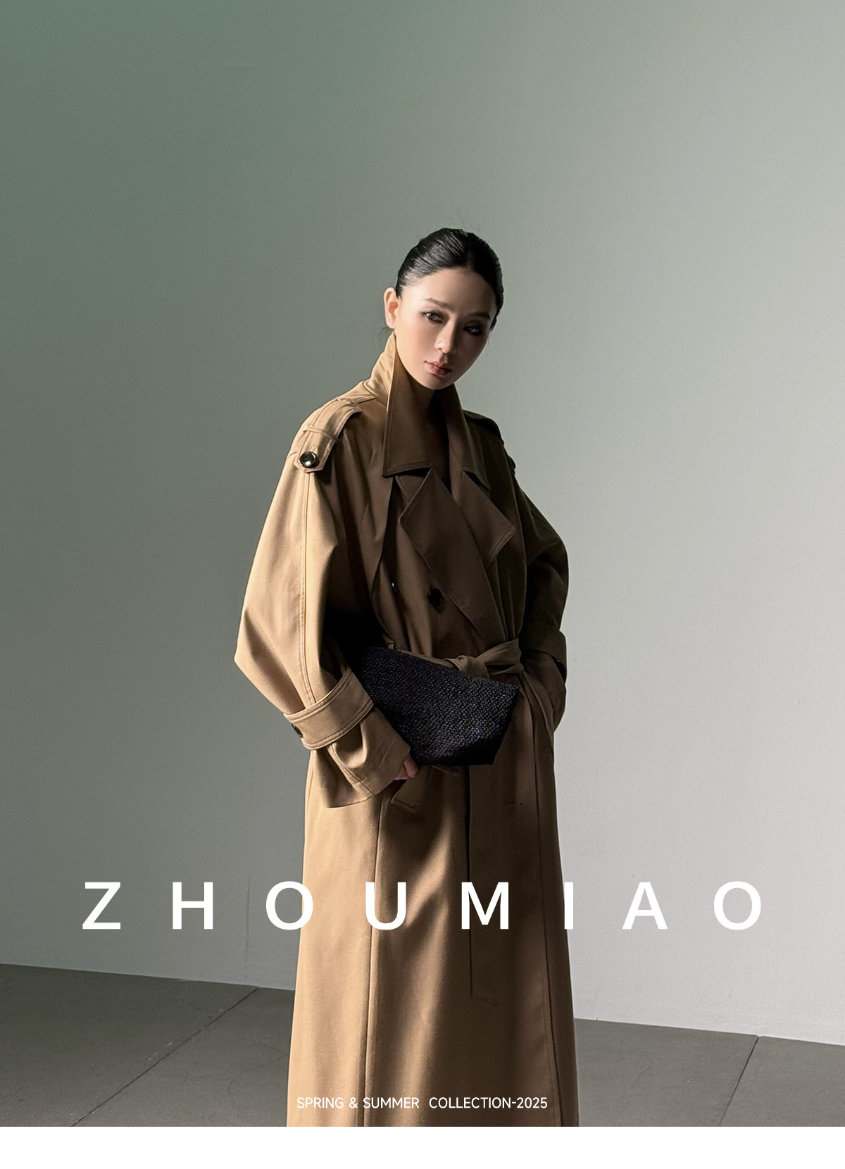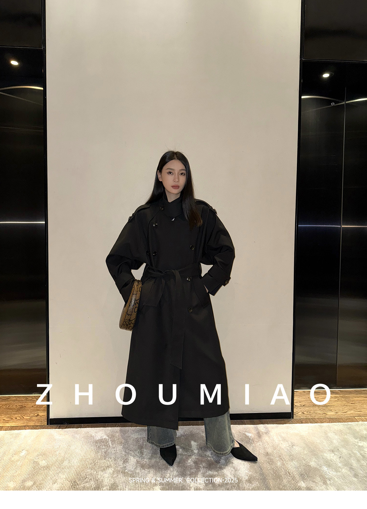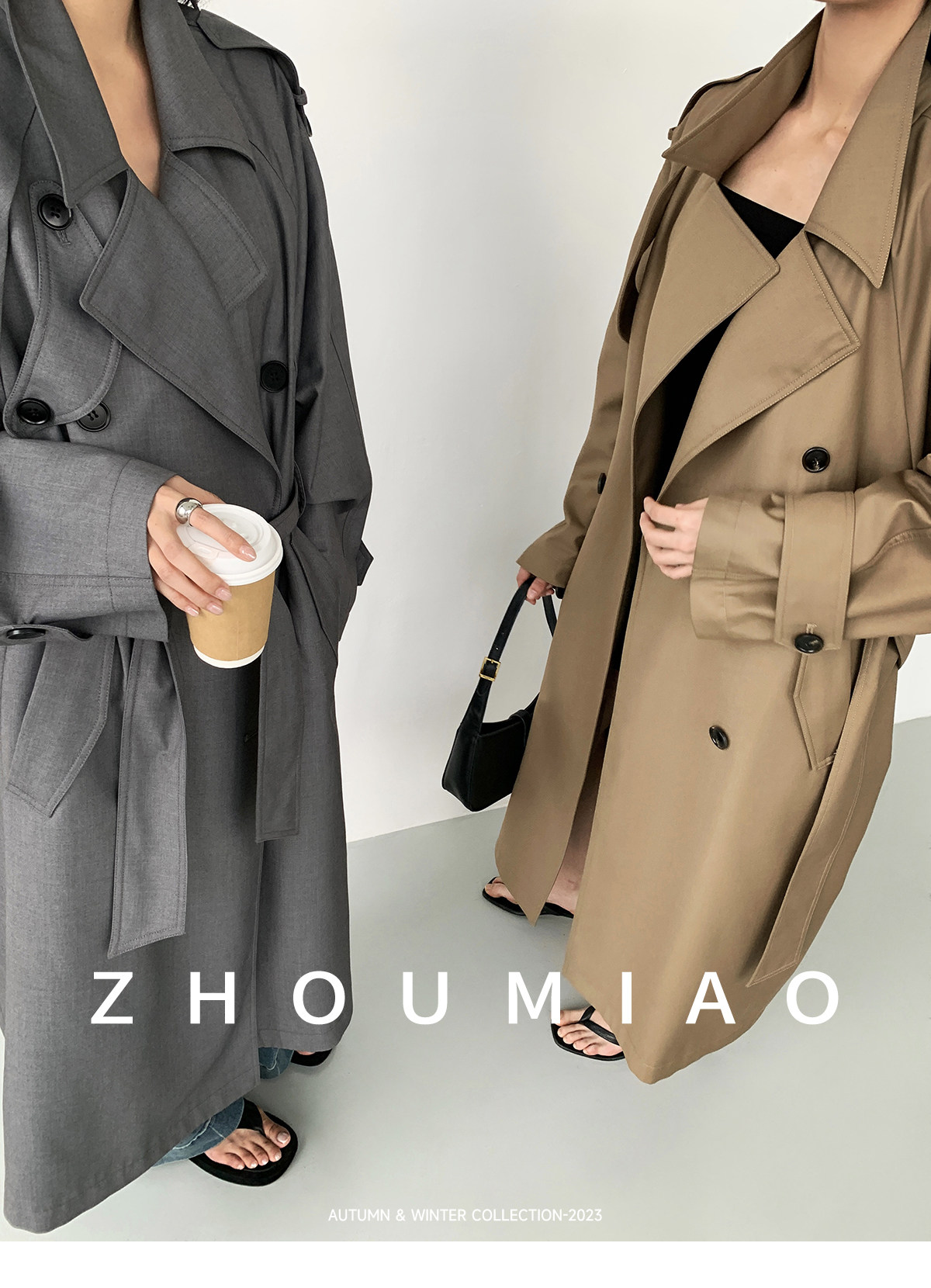 周淼ZHOUMIAO巴黎旧梦经典廓形大翻领双排扣中长款气质风衣外套女