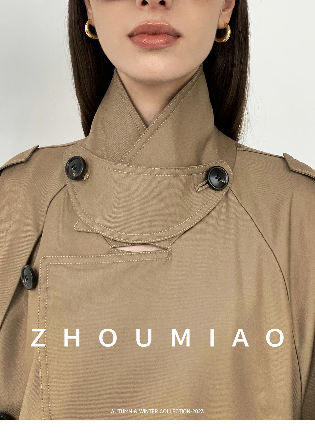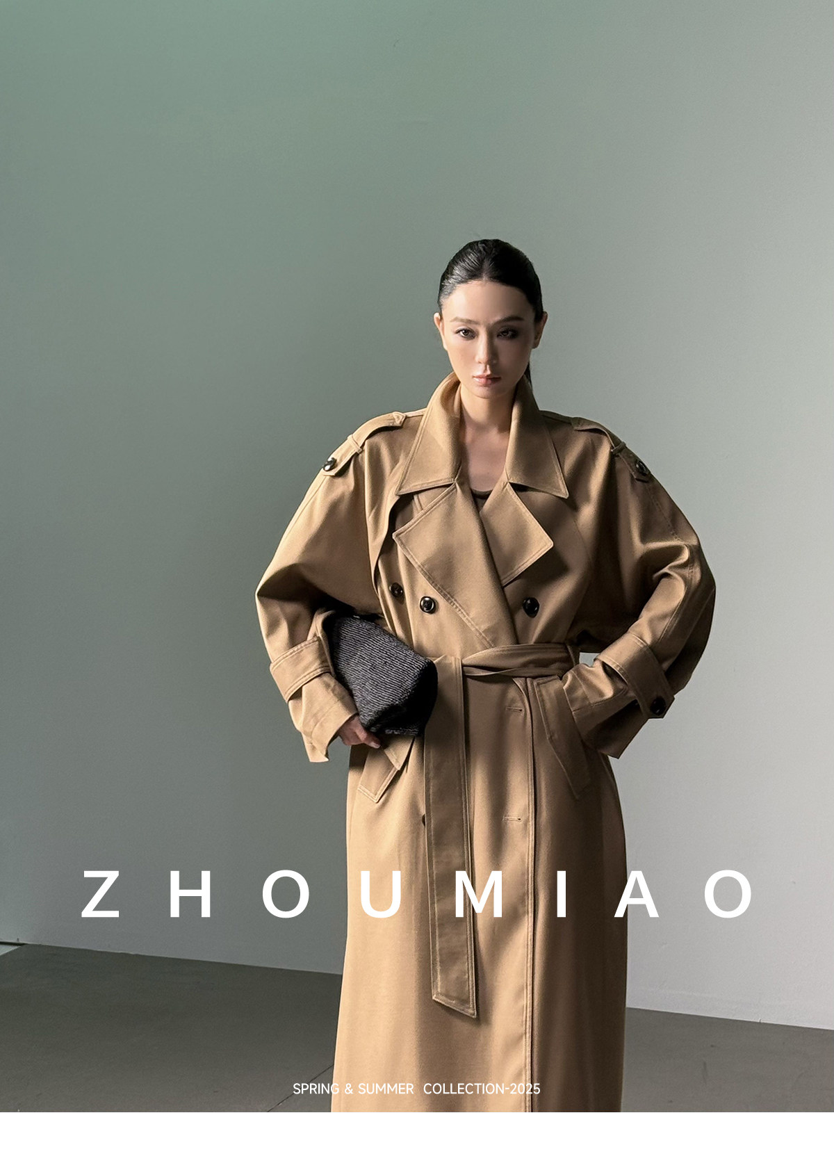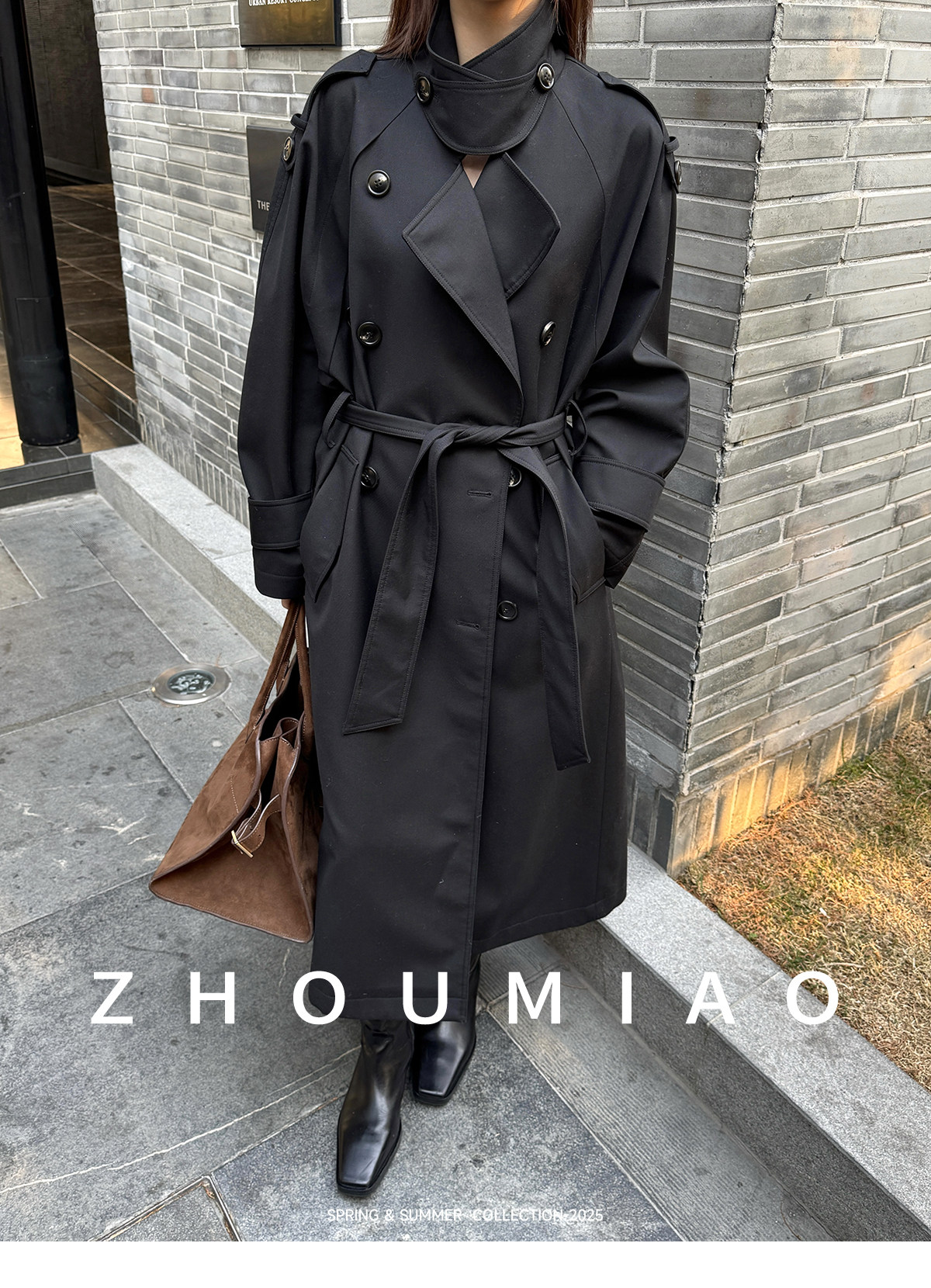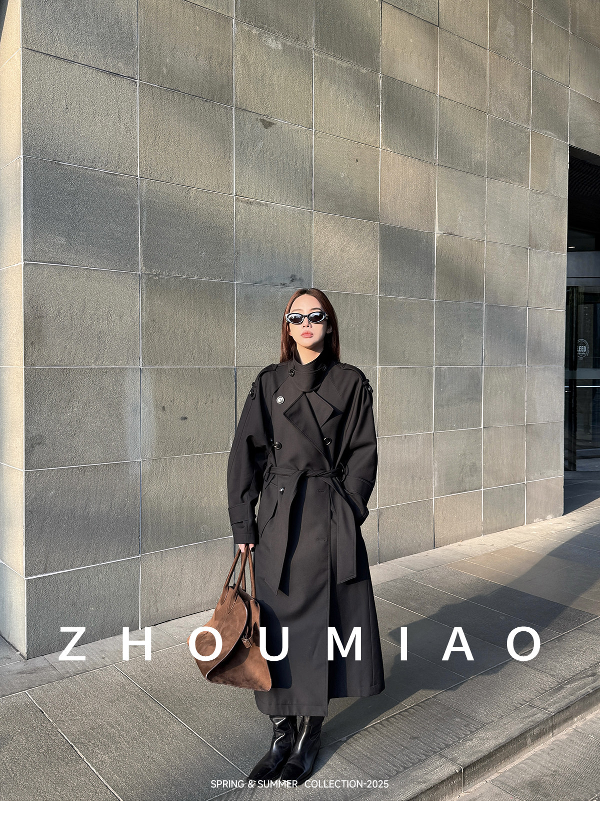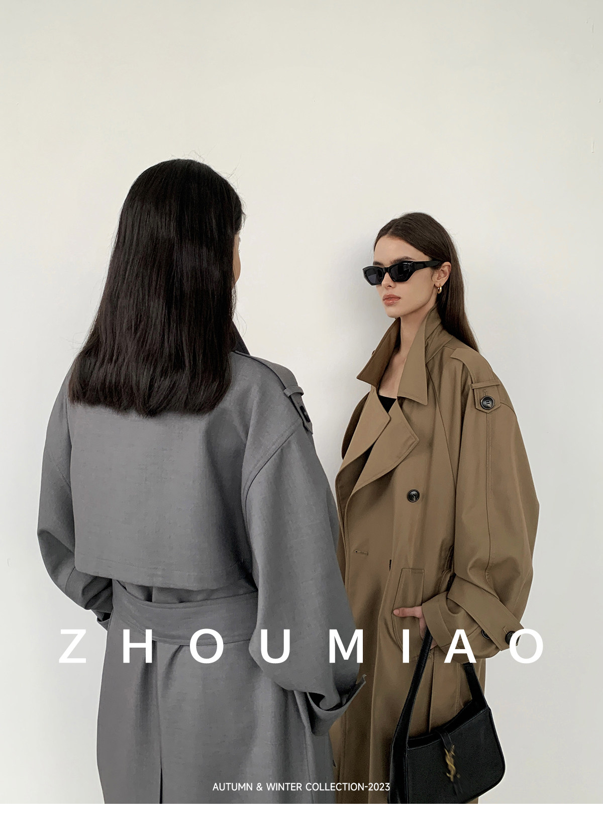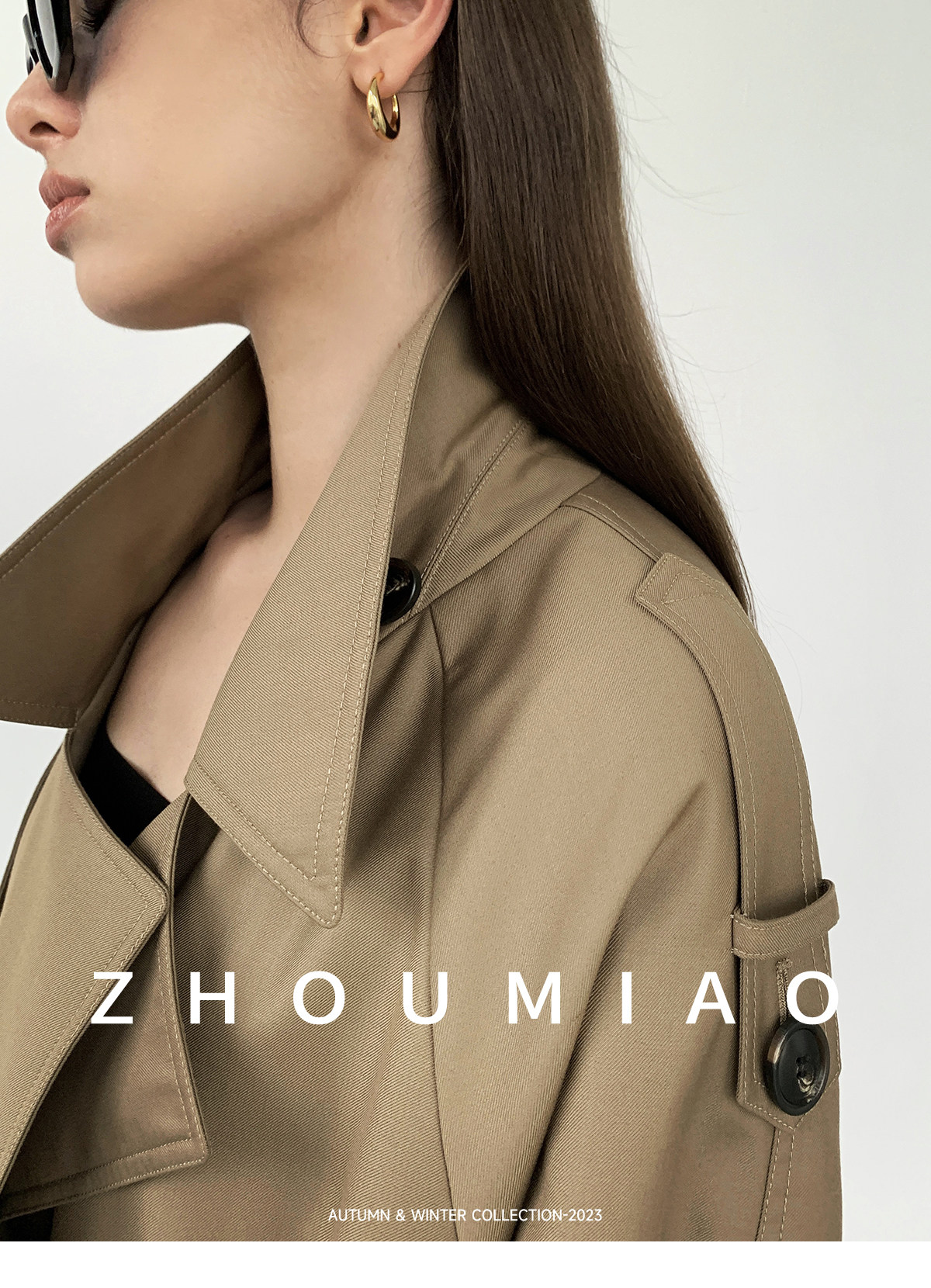 周淼ZHOUMIAO巴黎旧梦经典廓形大翻领双排扣中长款气质风衣外套女