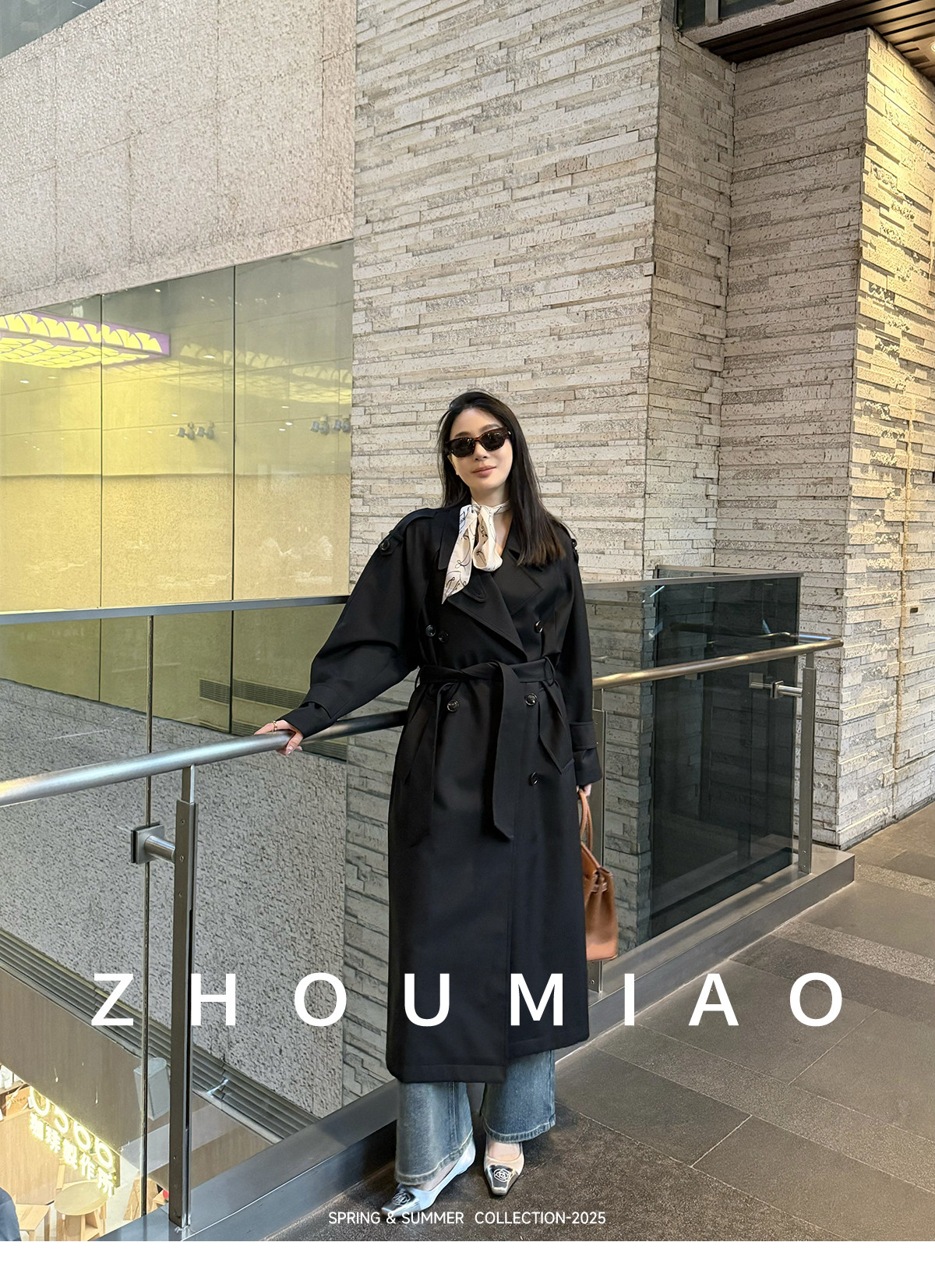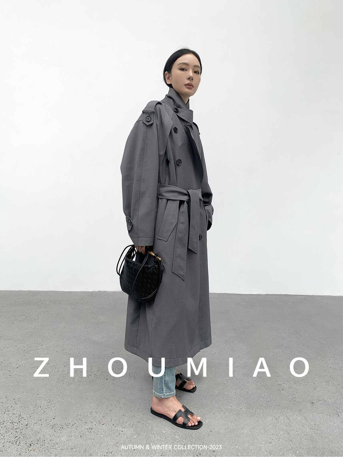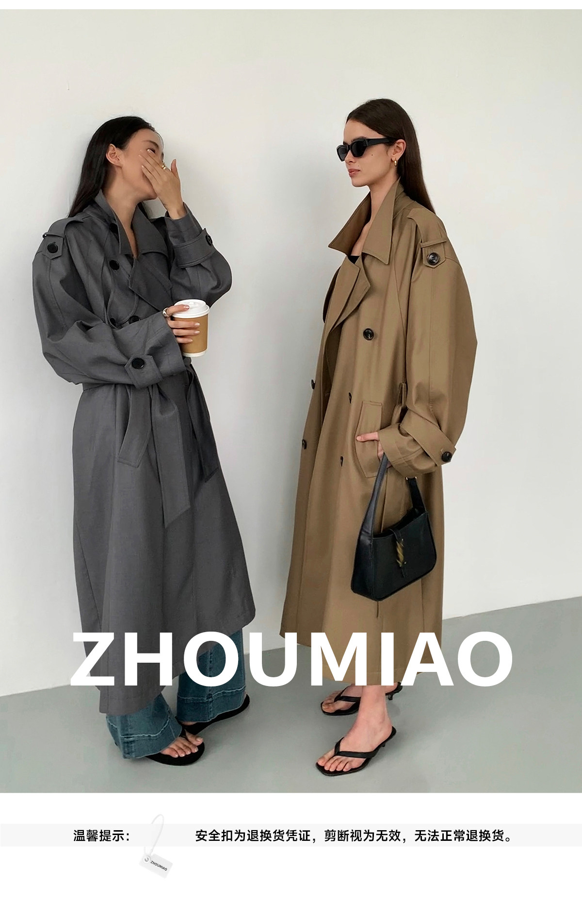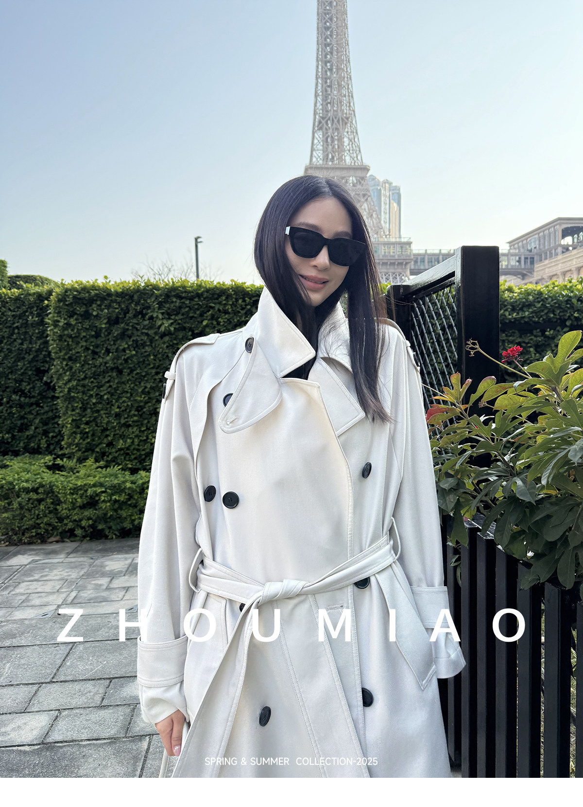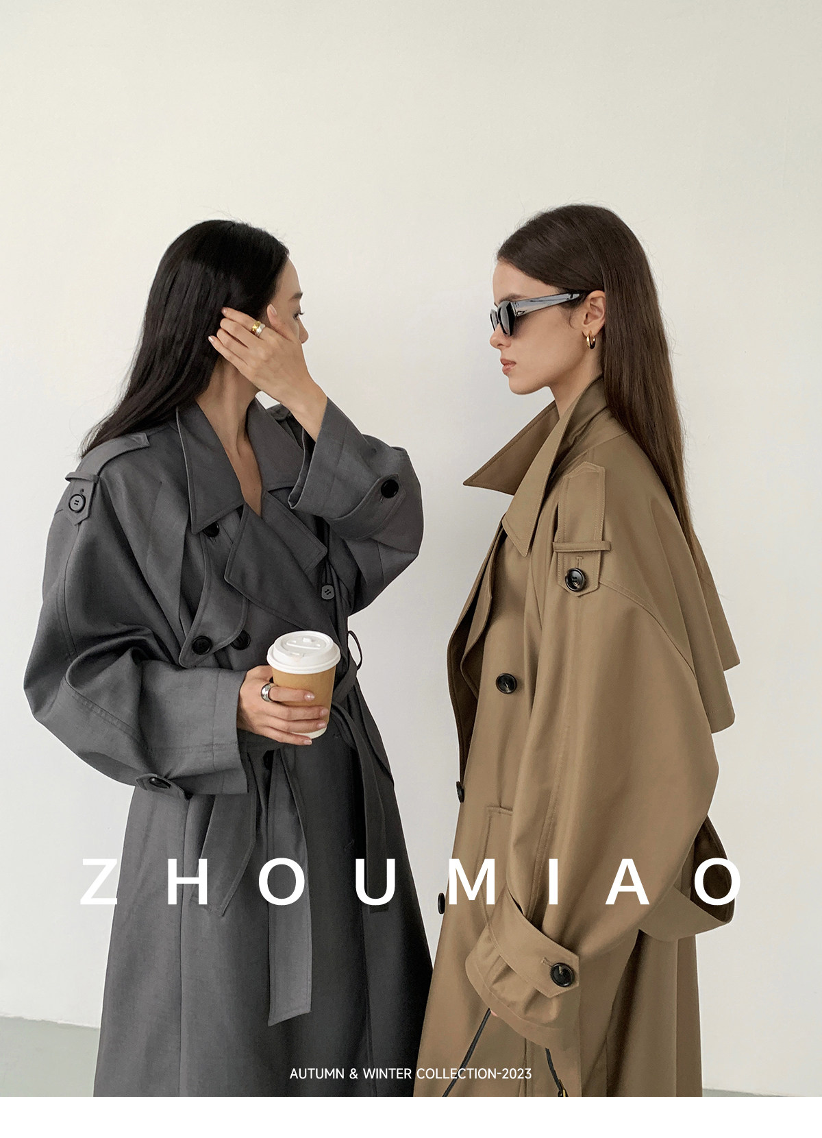 周淼ZHOUMIAO巴黎旧梦经典廓形大翻领双排扣中长款气质风衣外套女