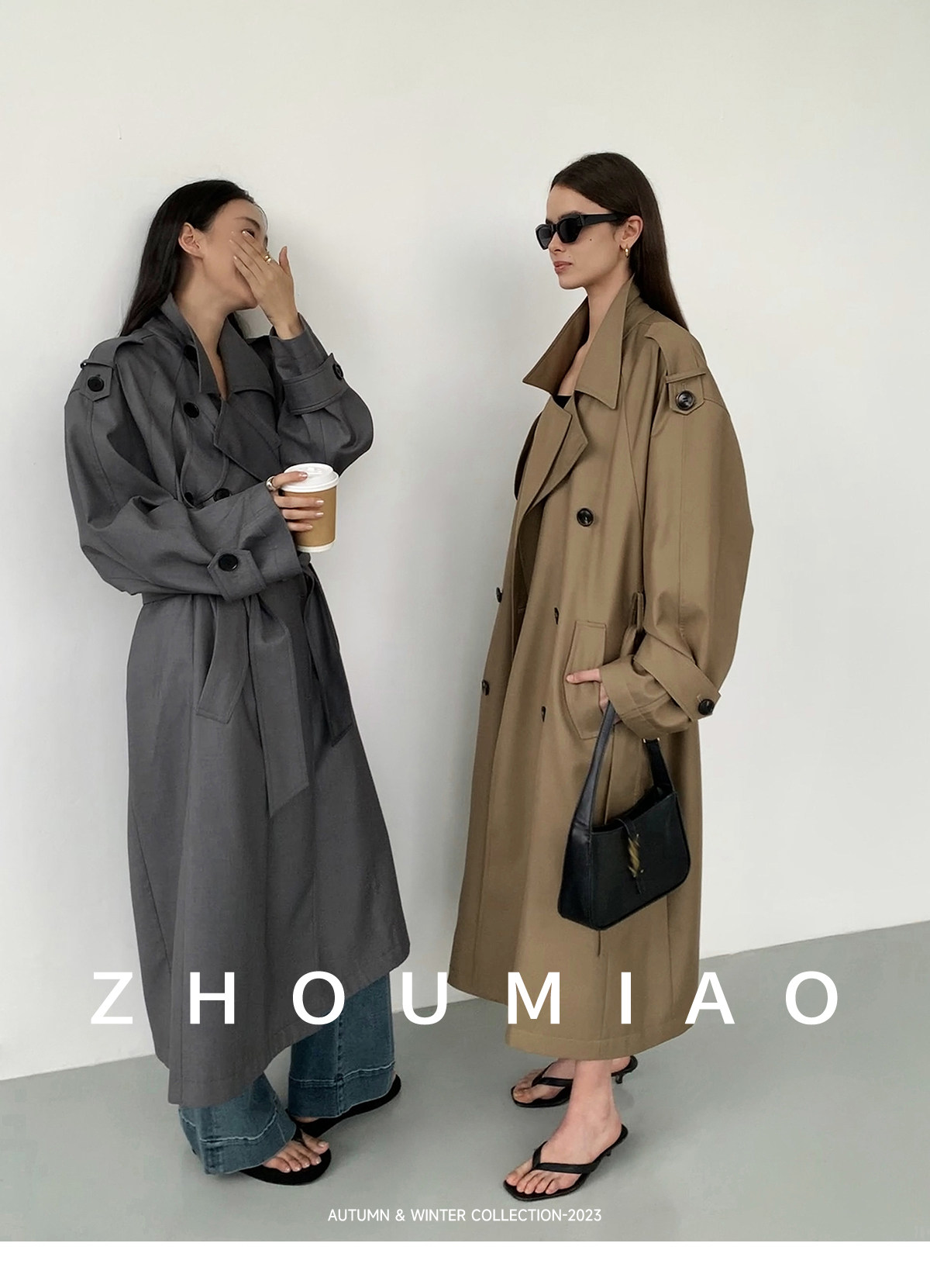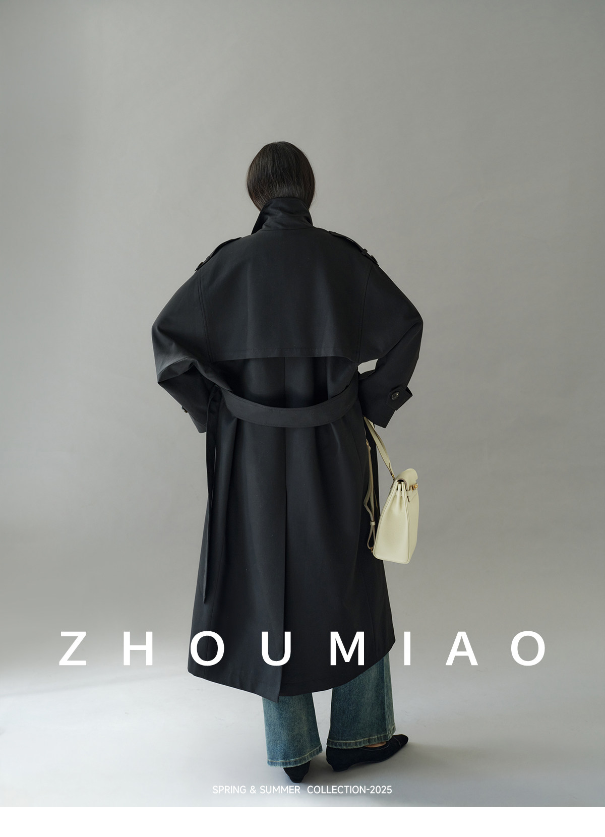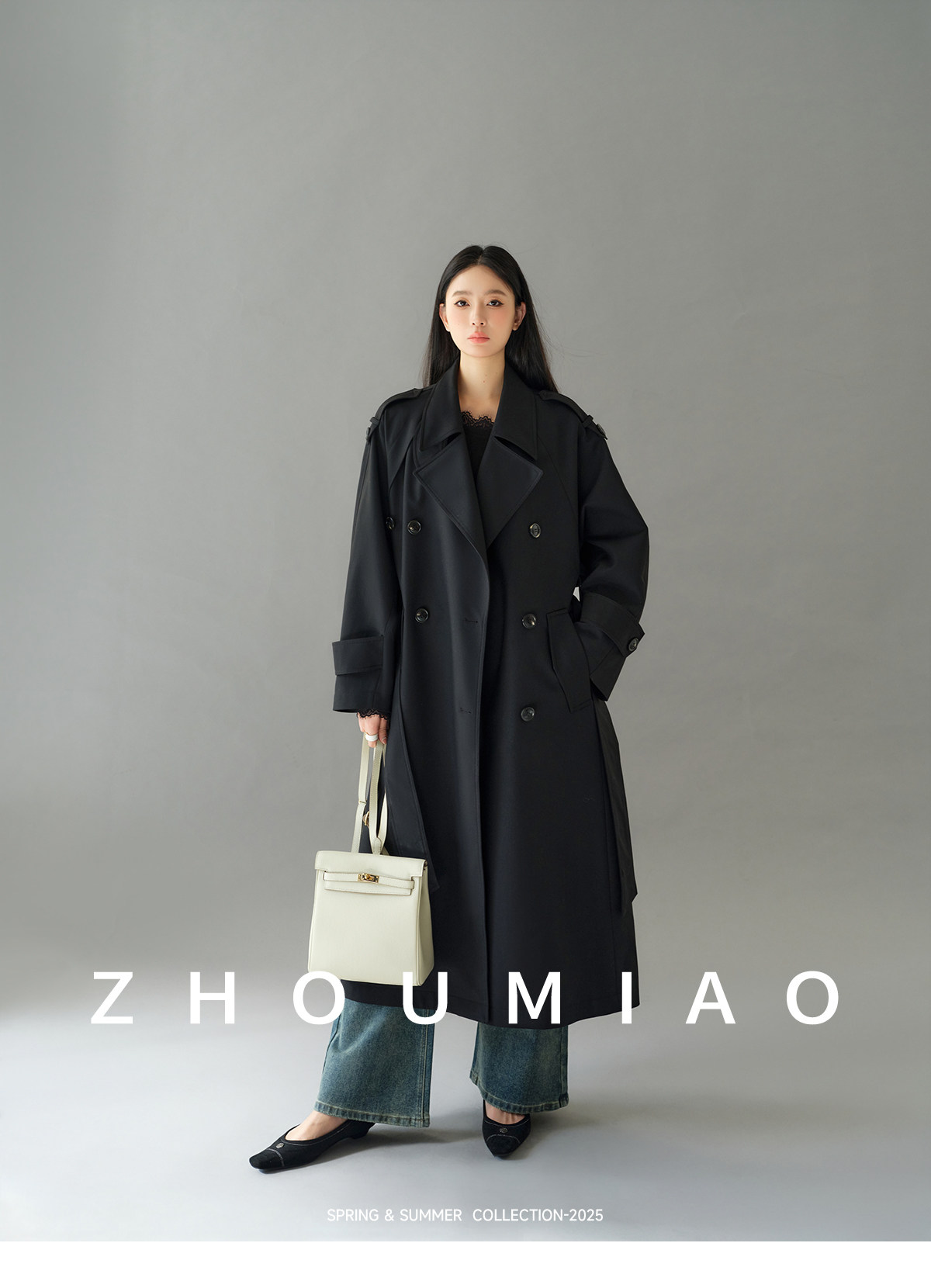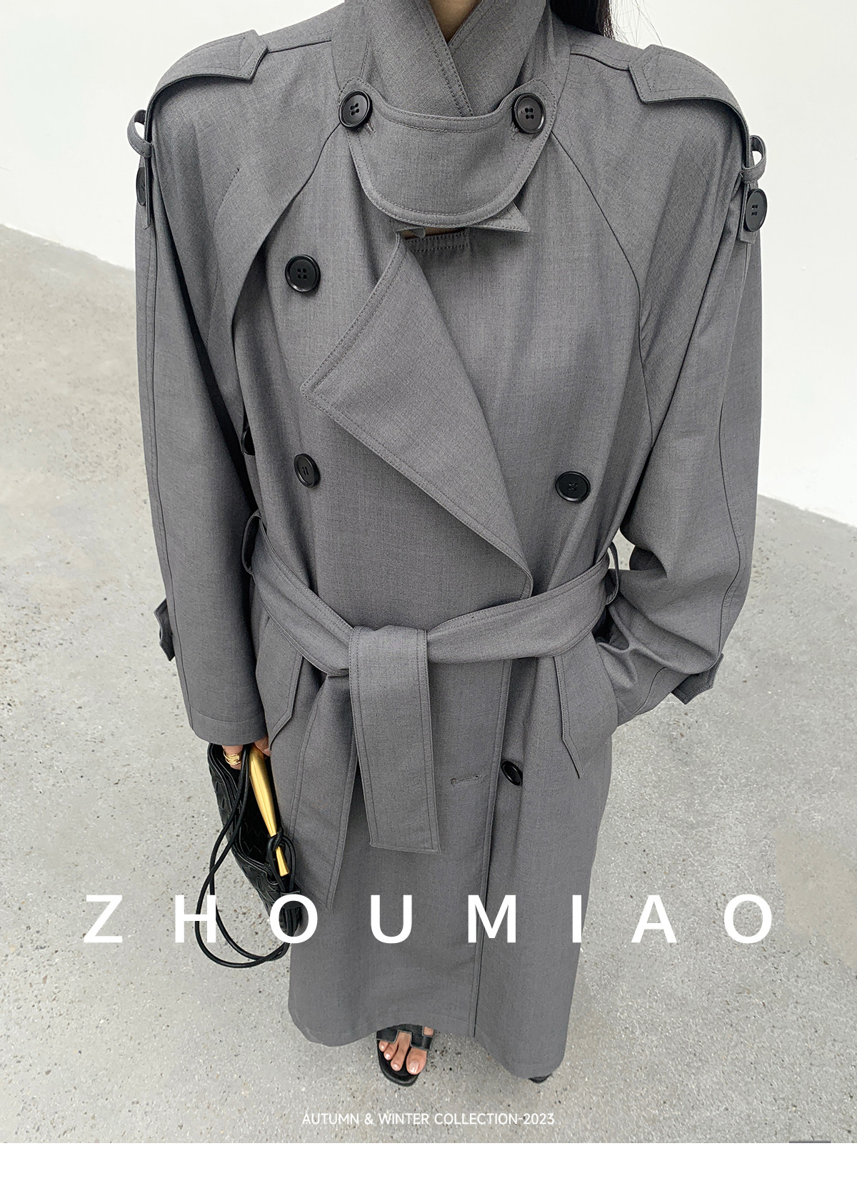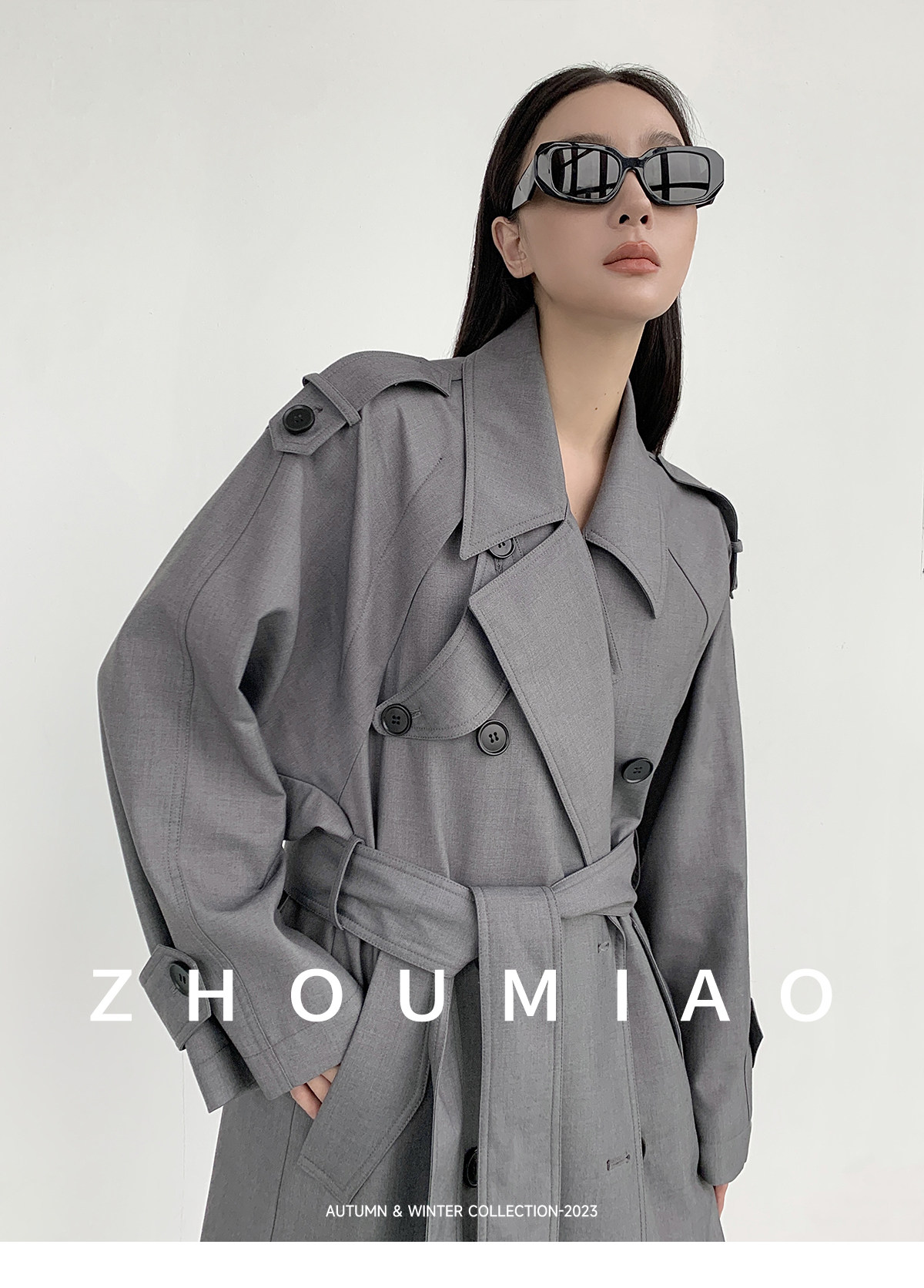 周淼ZHOUMIAO巴黎旧梦经典廓形大翻领双排扣中长款气质风衣外套女