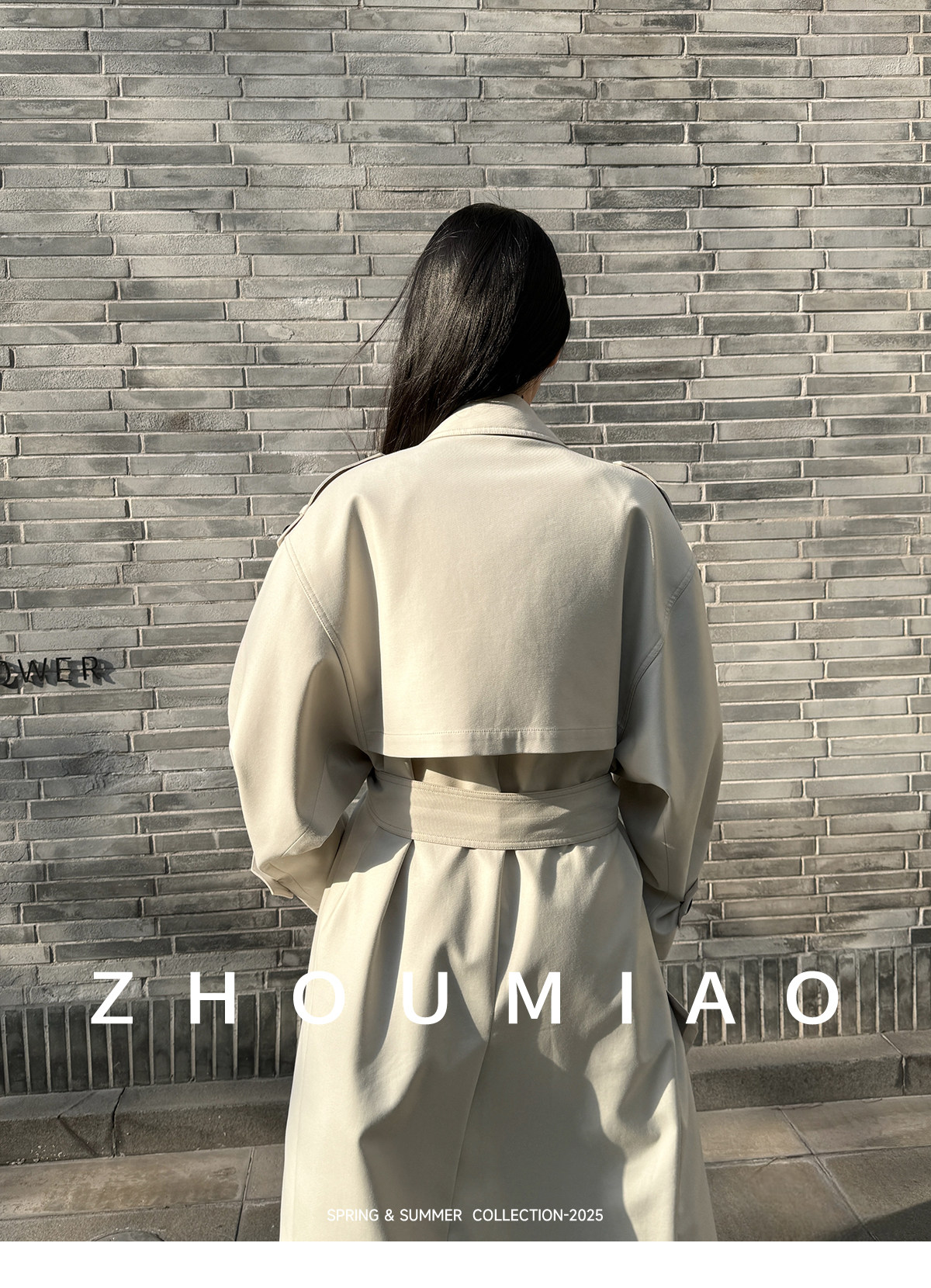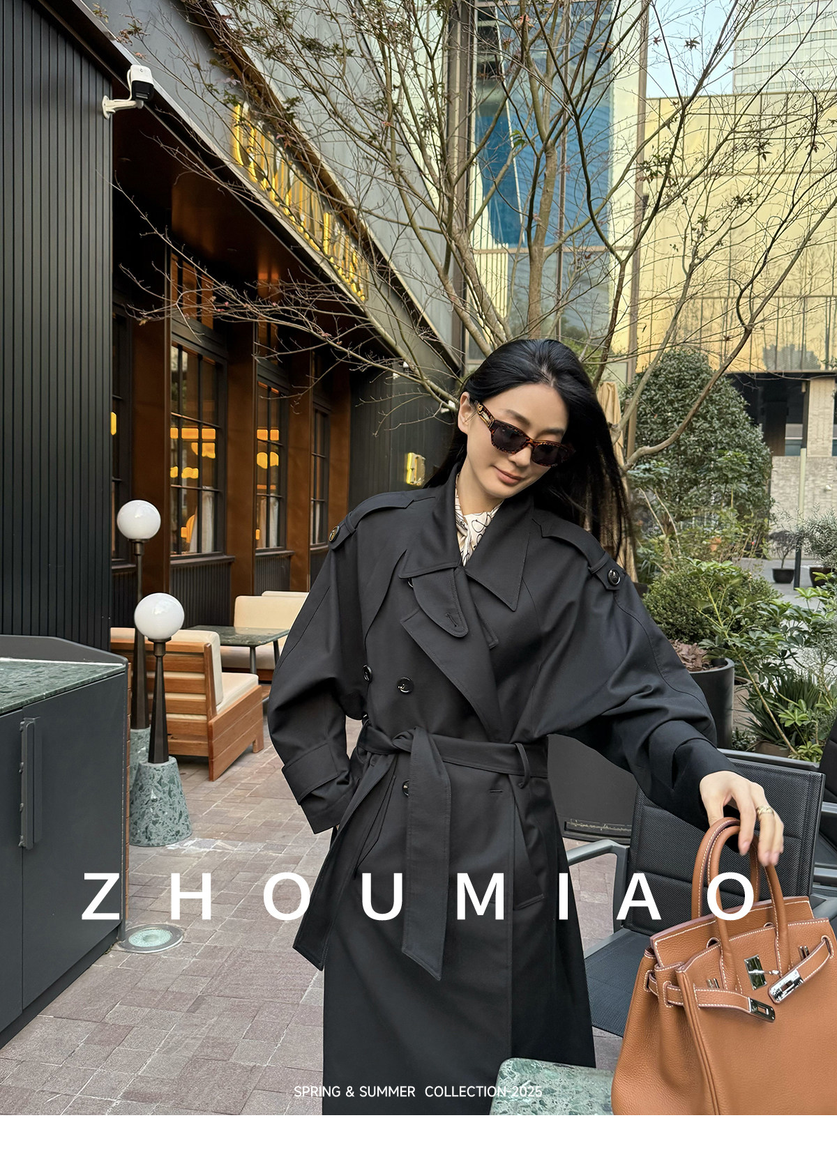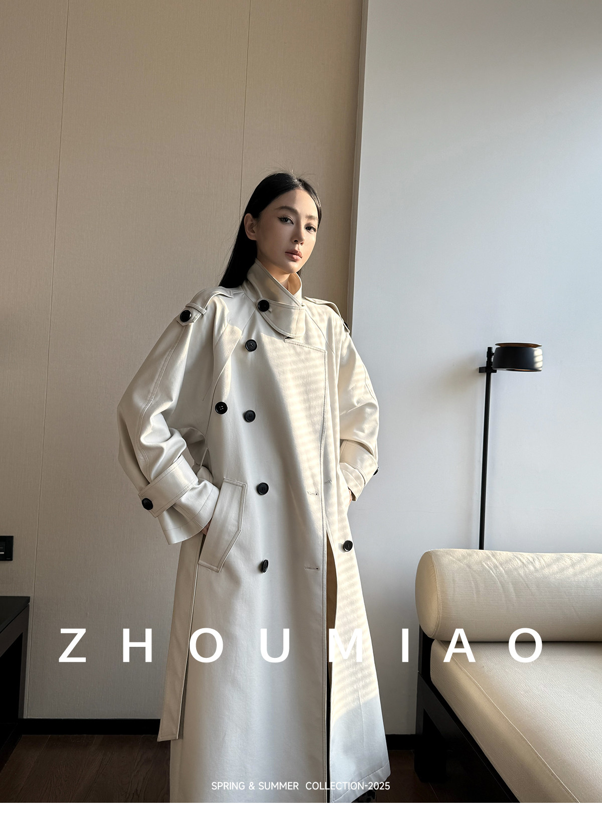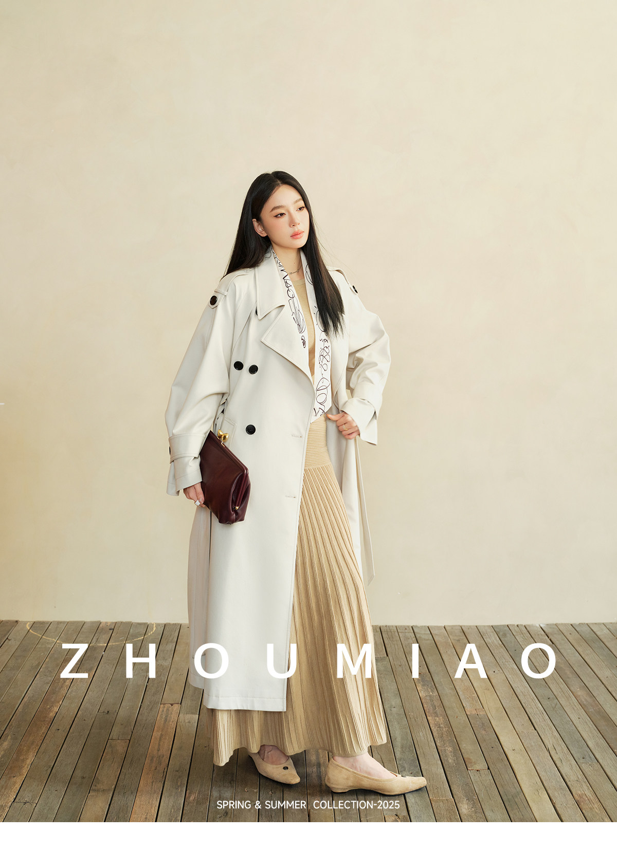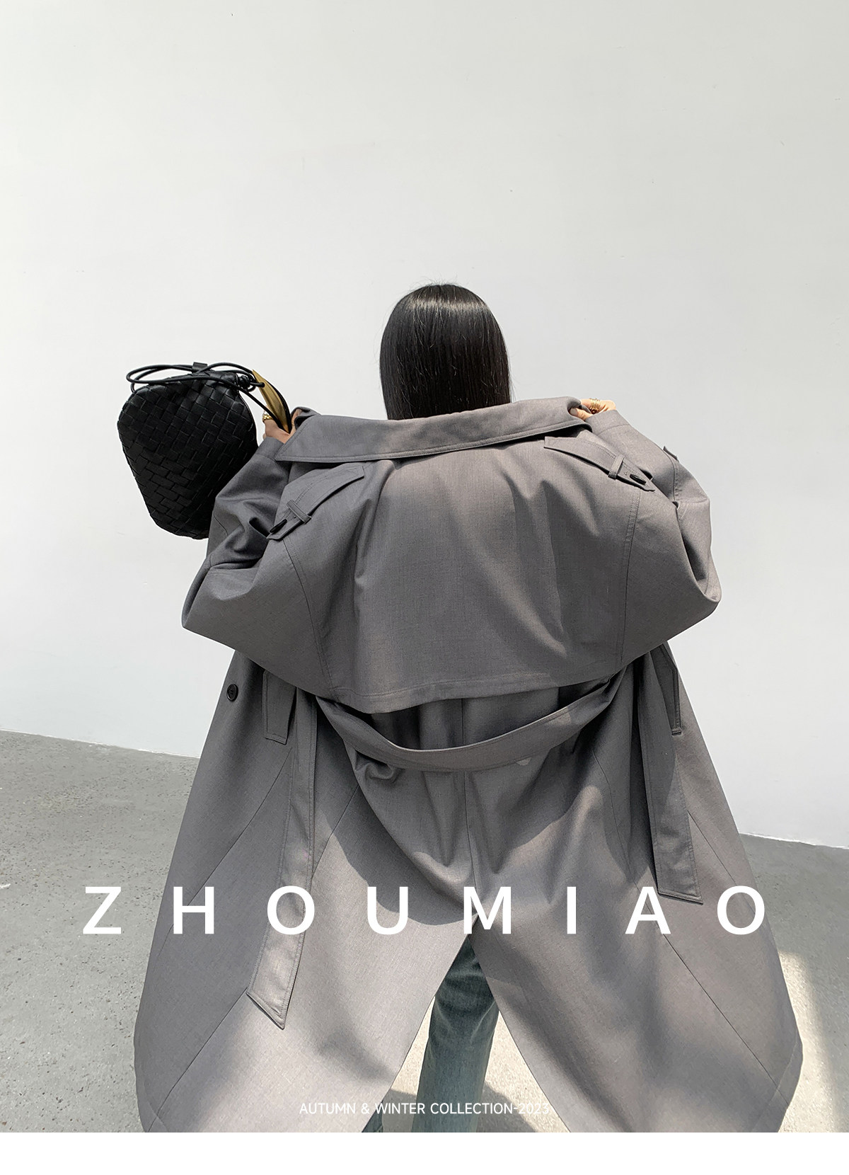 周淼ZHOUMIAO巴黎旧梦经典廓形大翻领双排扣中长款气质风衣外套女