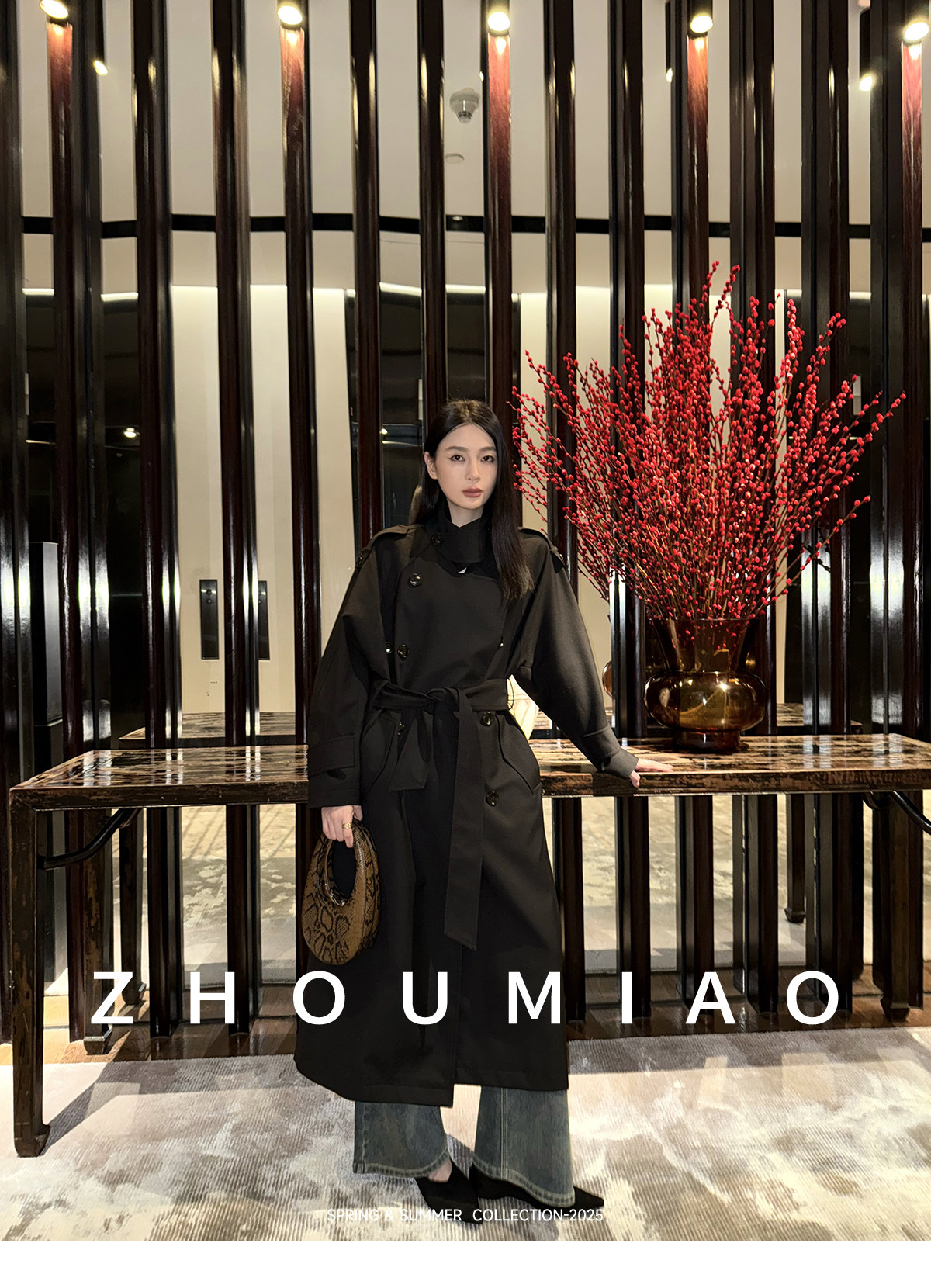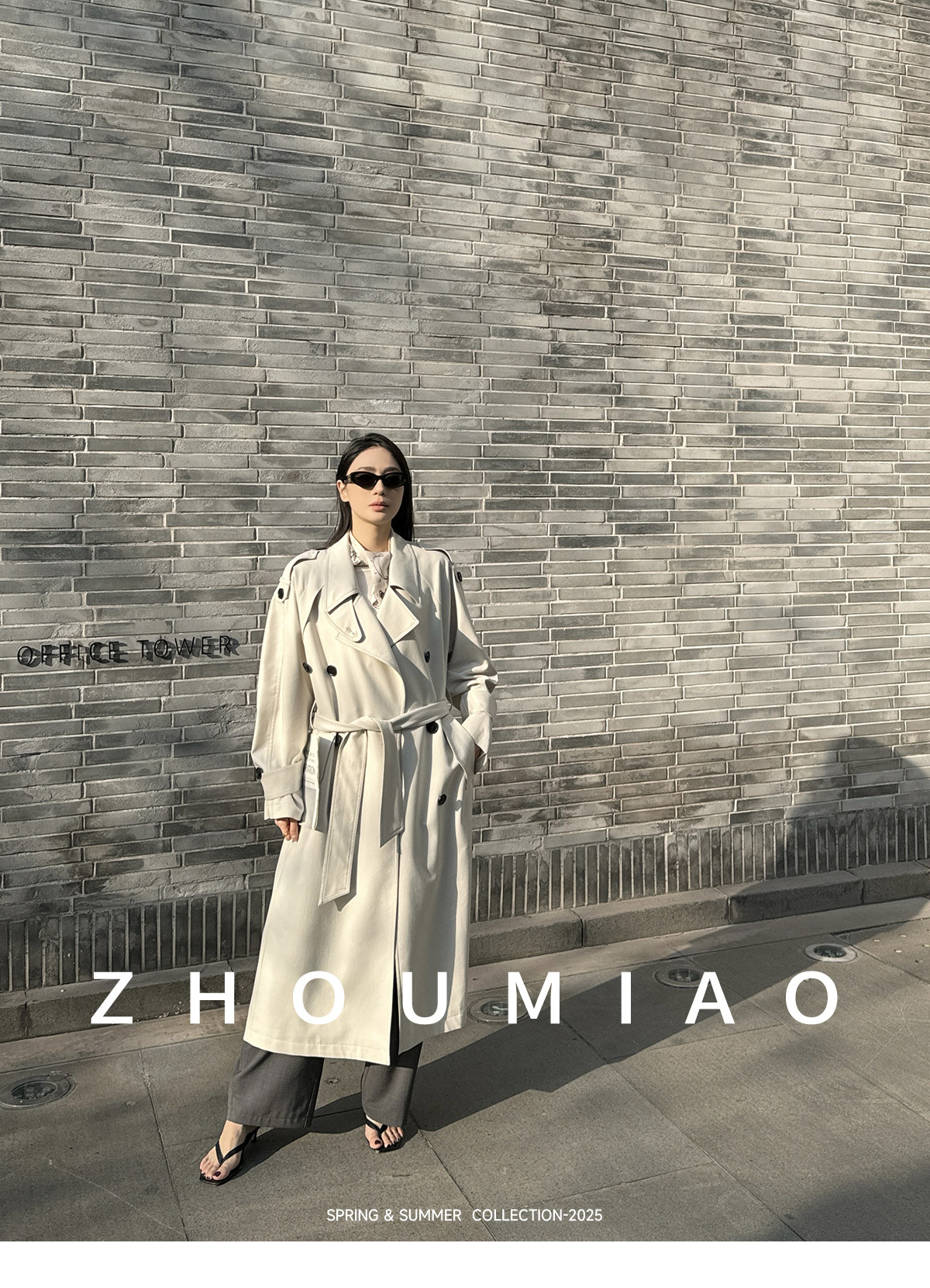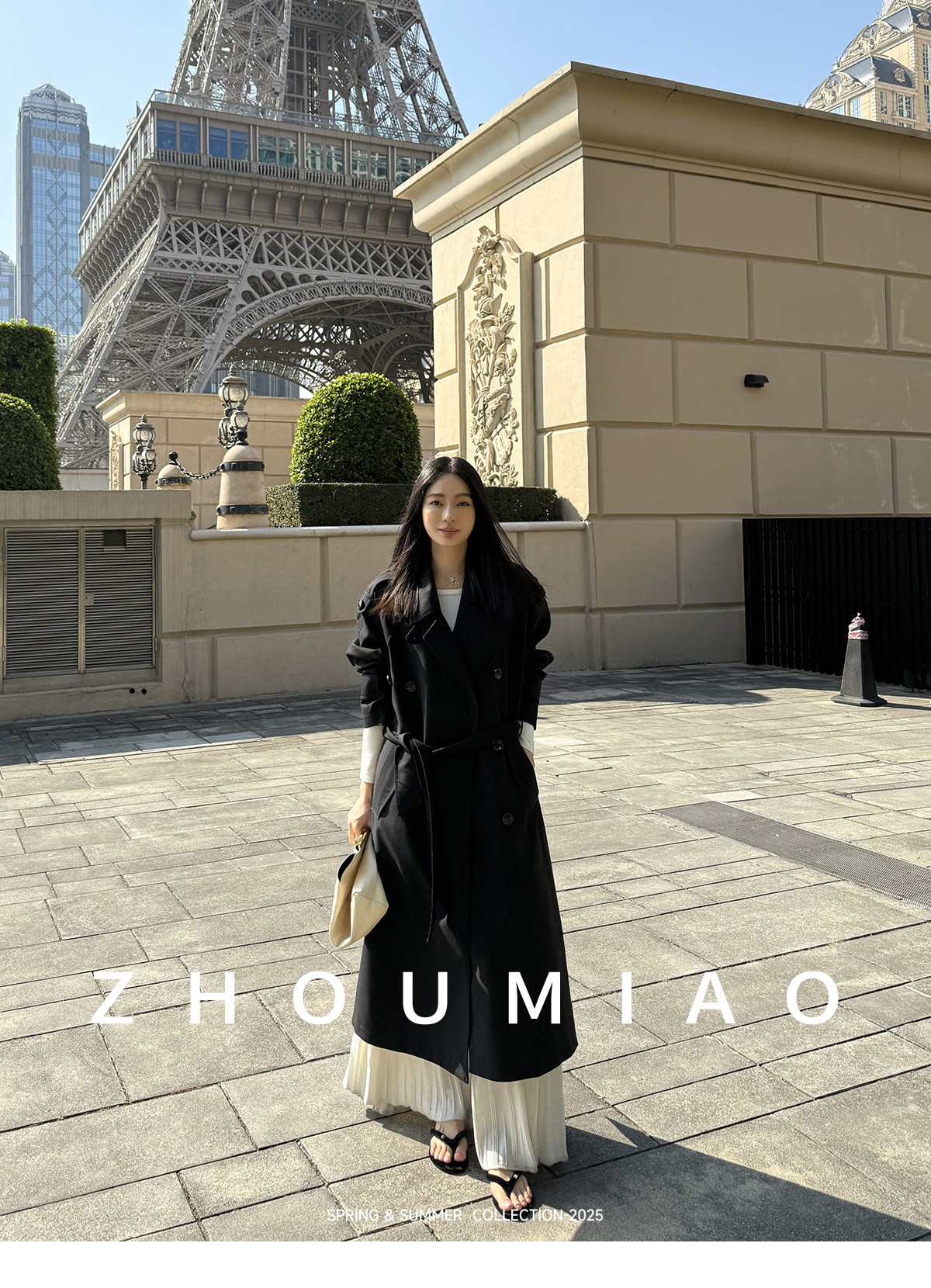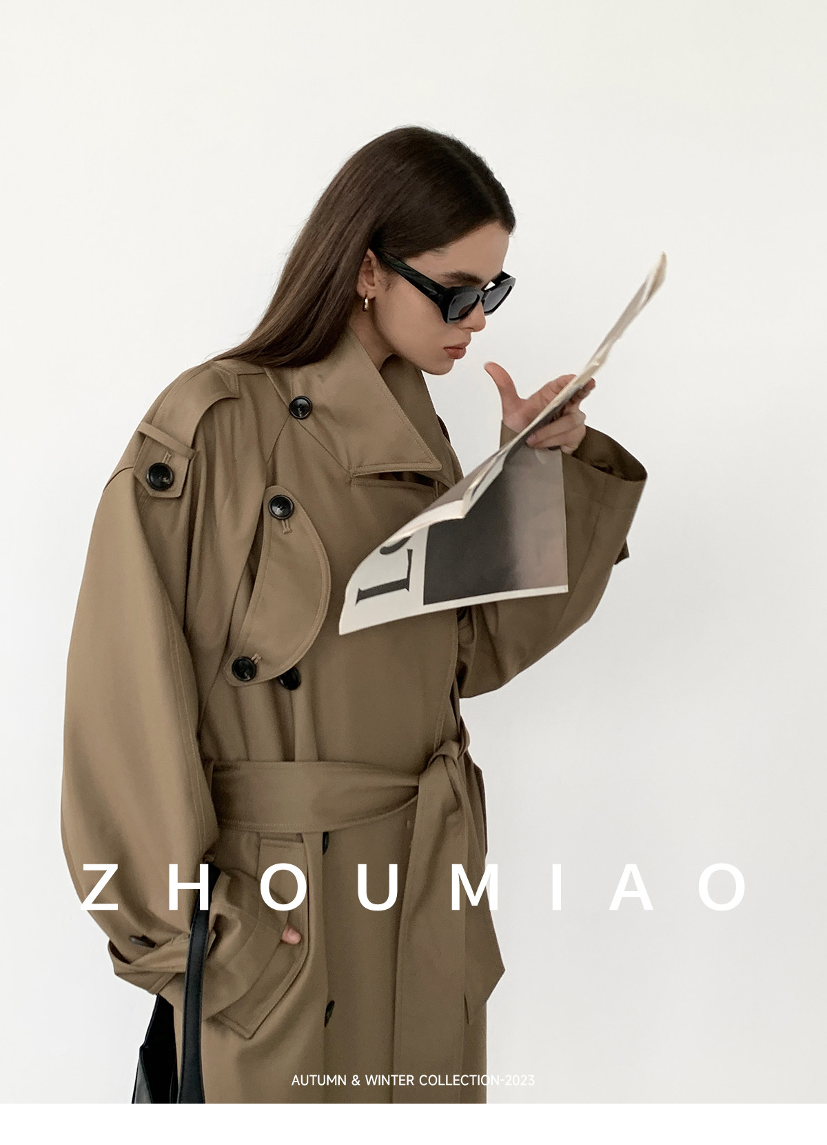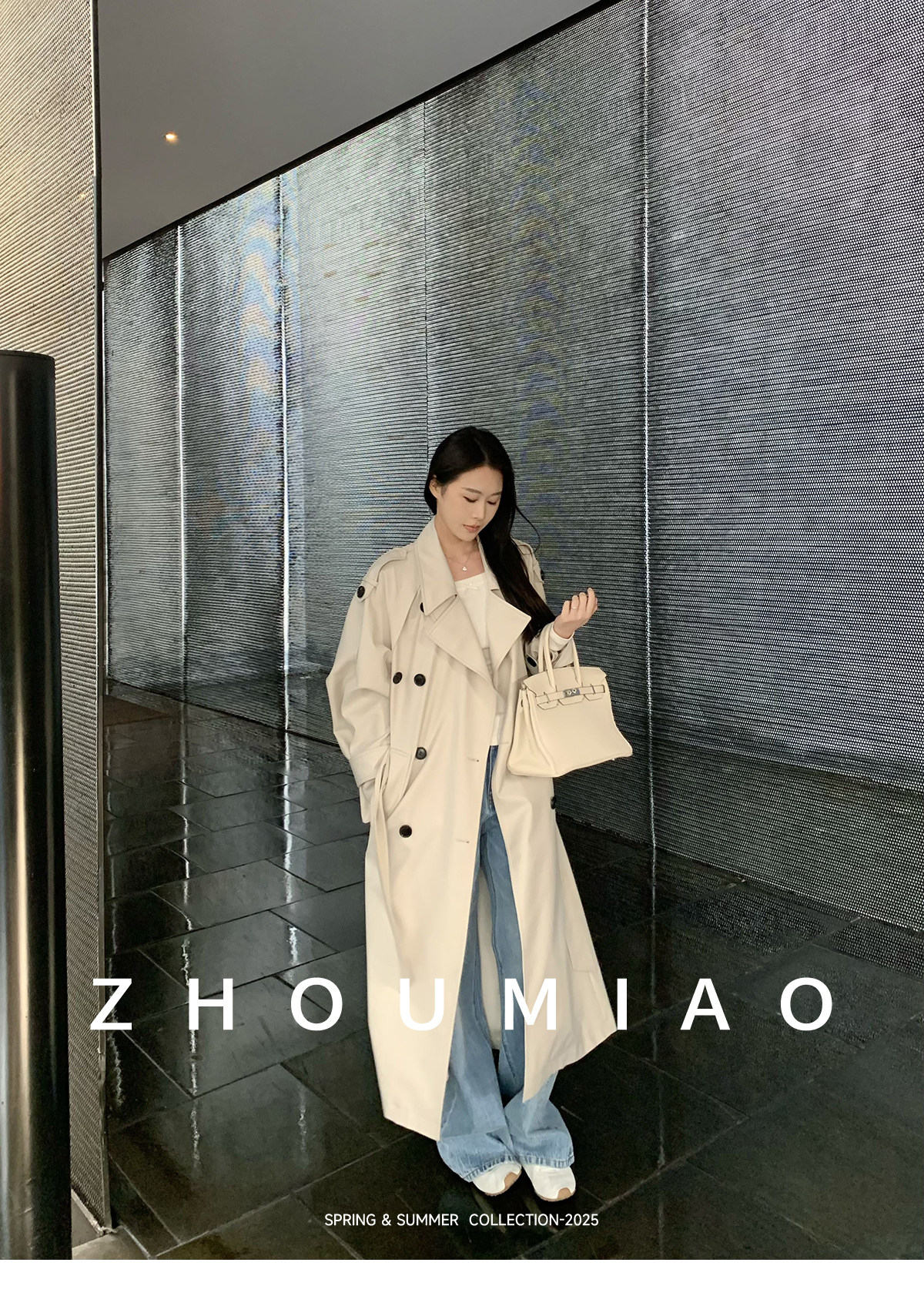 周淼ZHOUMIAO巴黎旧梦经典廓形大翻领双排扣中长款气质风衣外套女