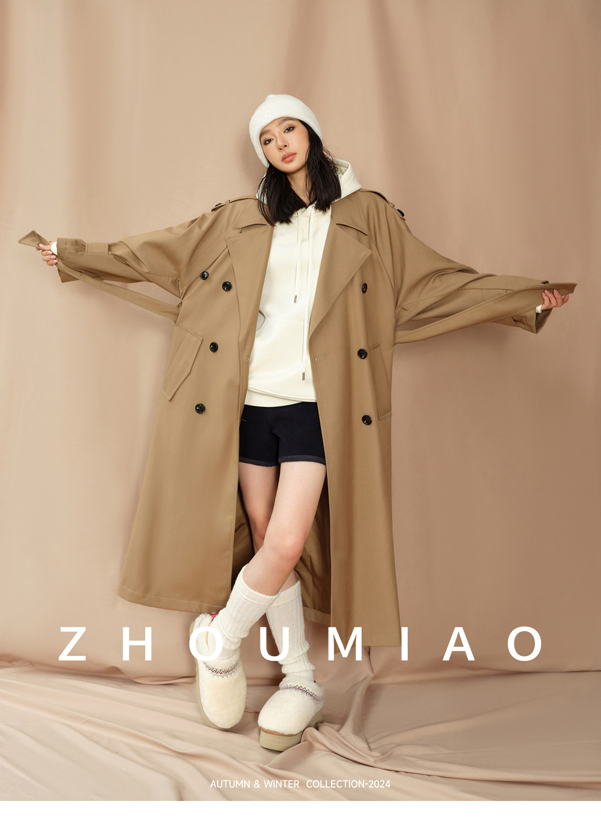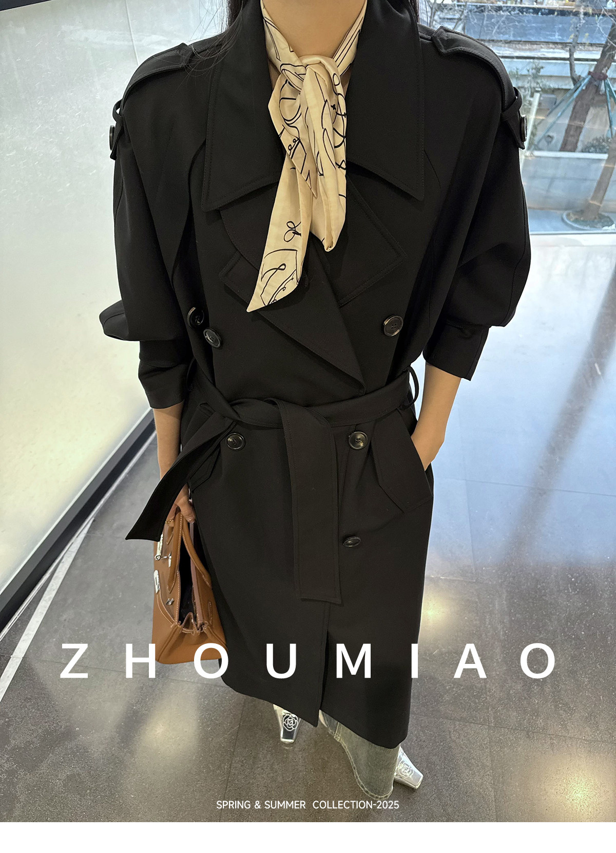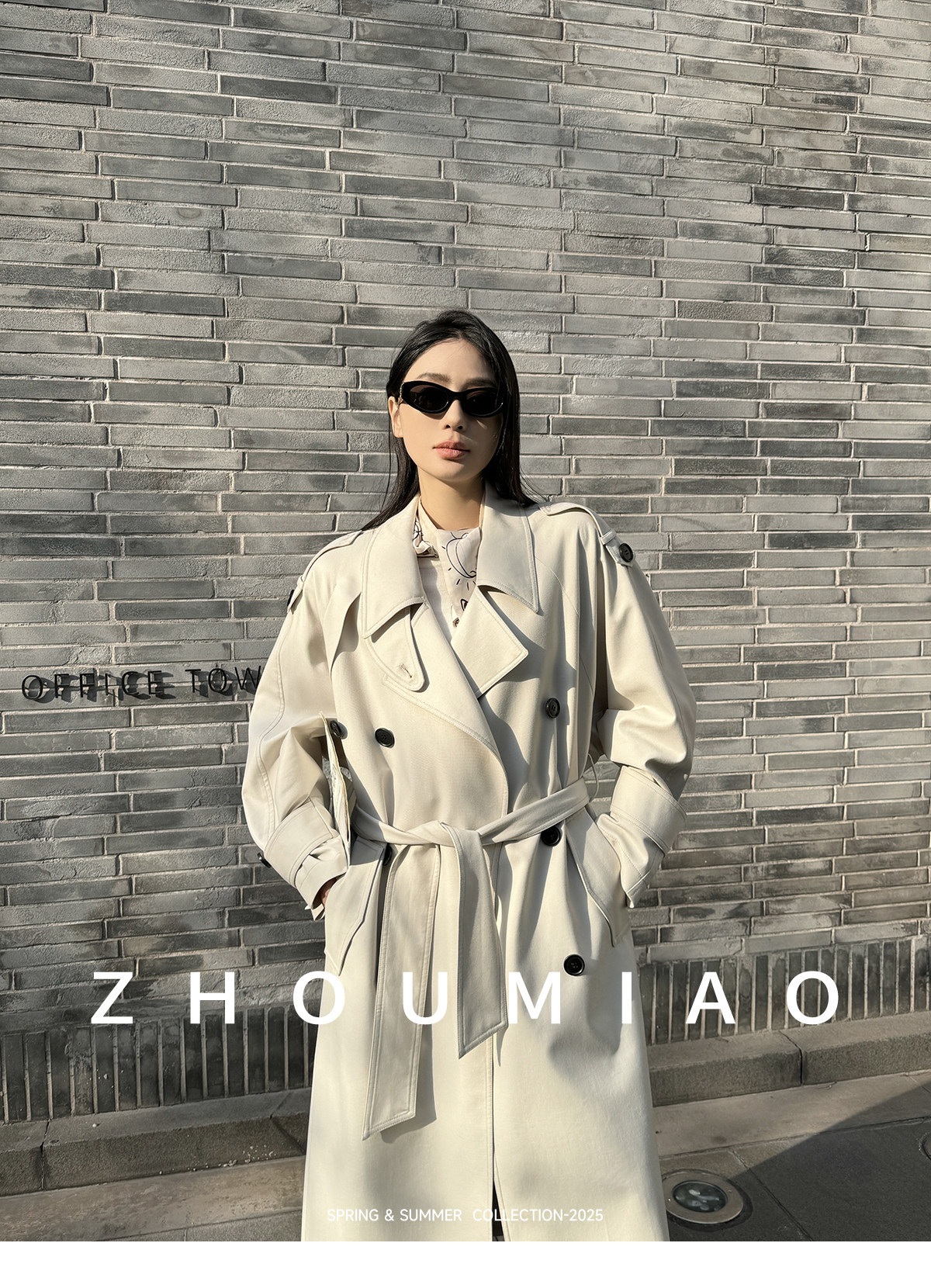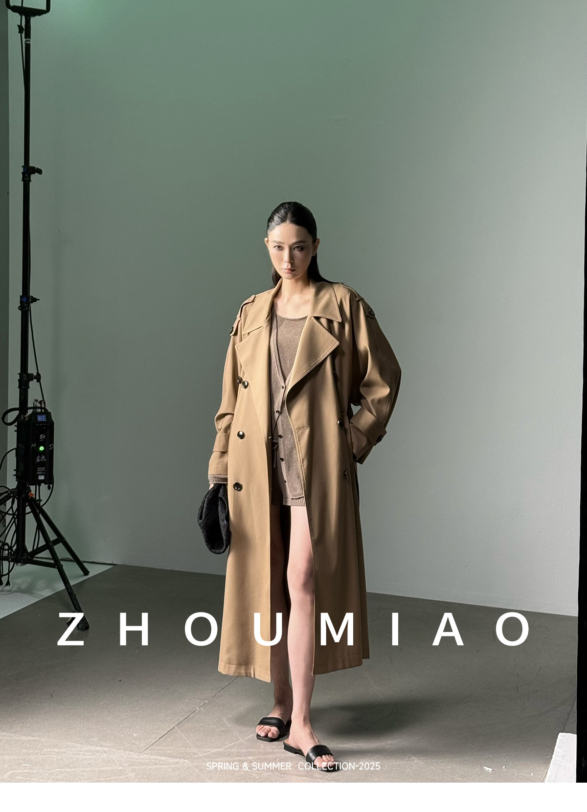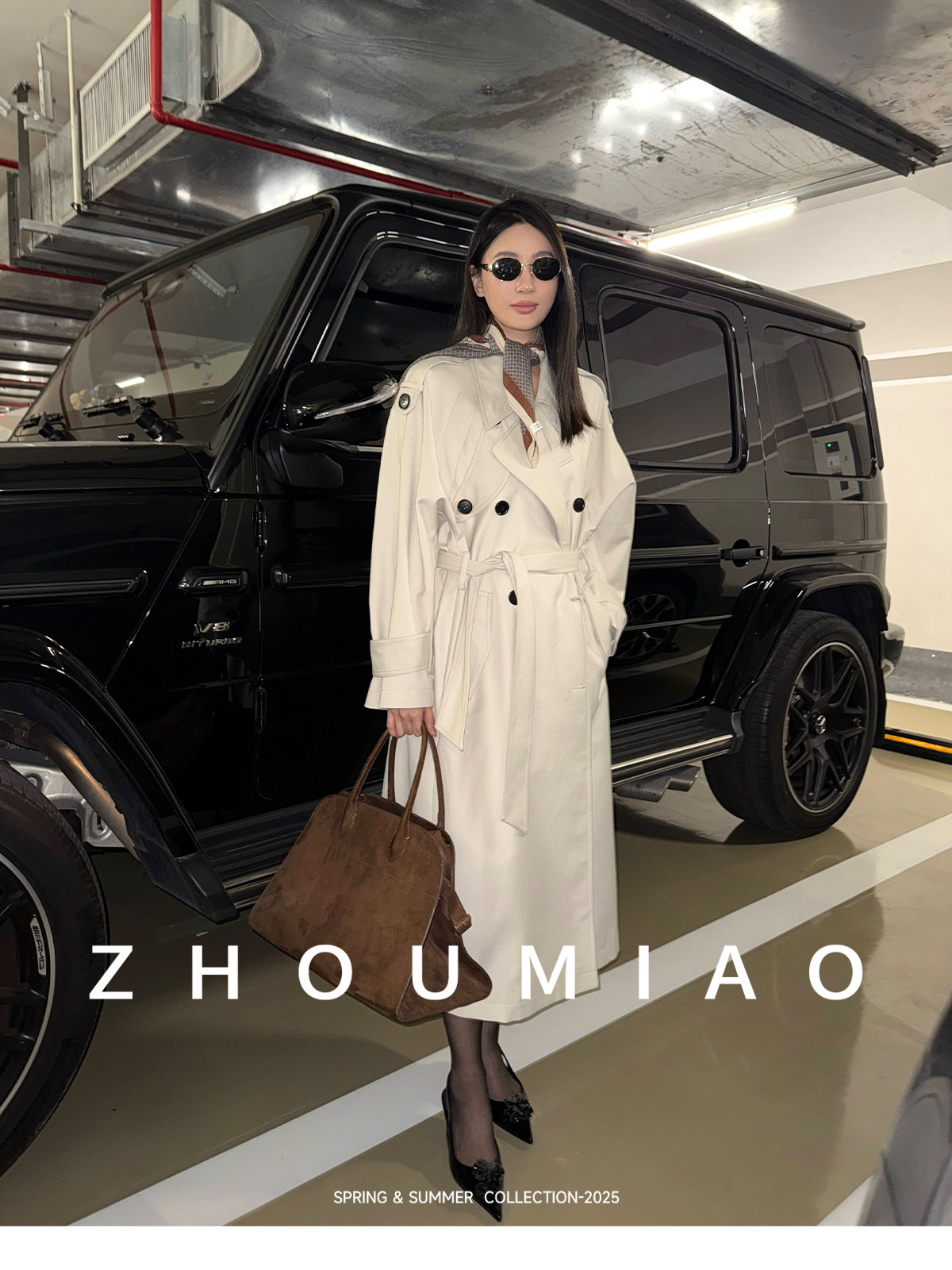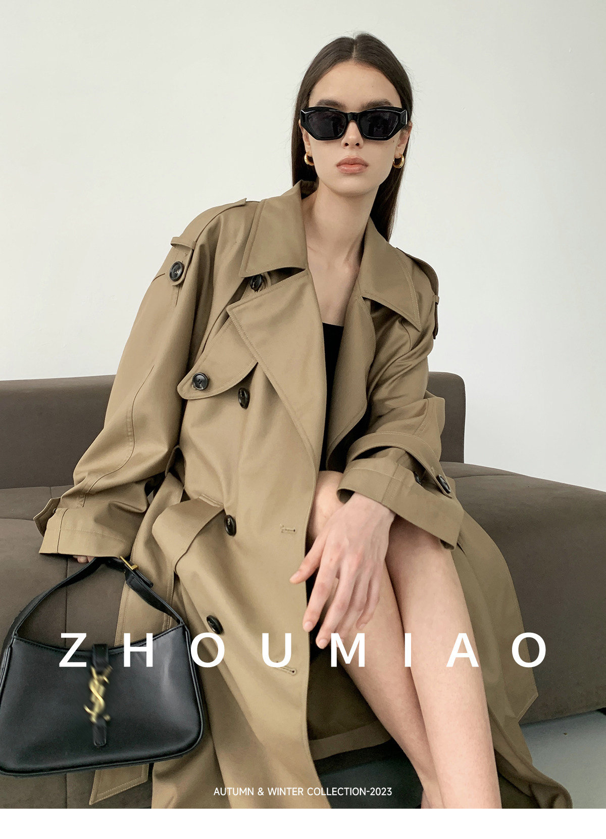 周淼ZHOUMIAO巴黎旧梦经典廓形大翻领双排扣中长款气质风衣外套女