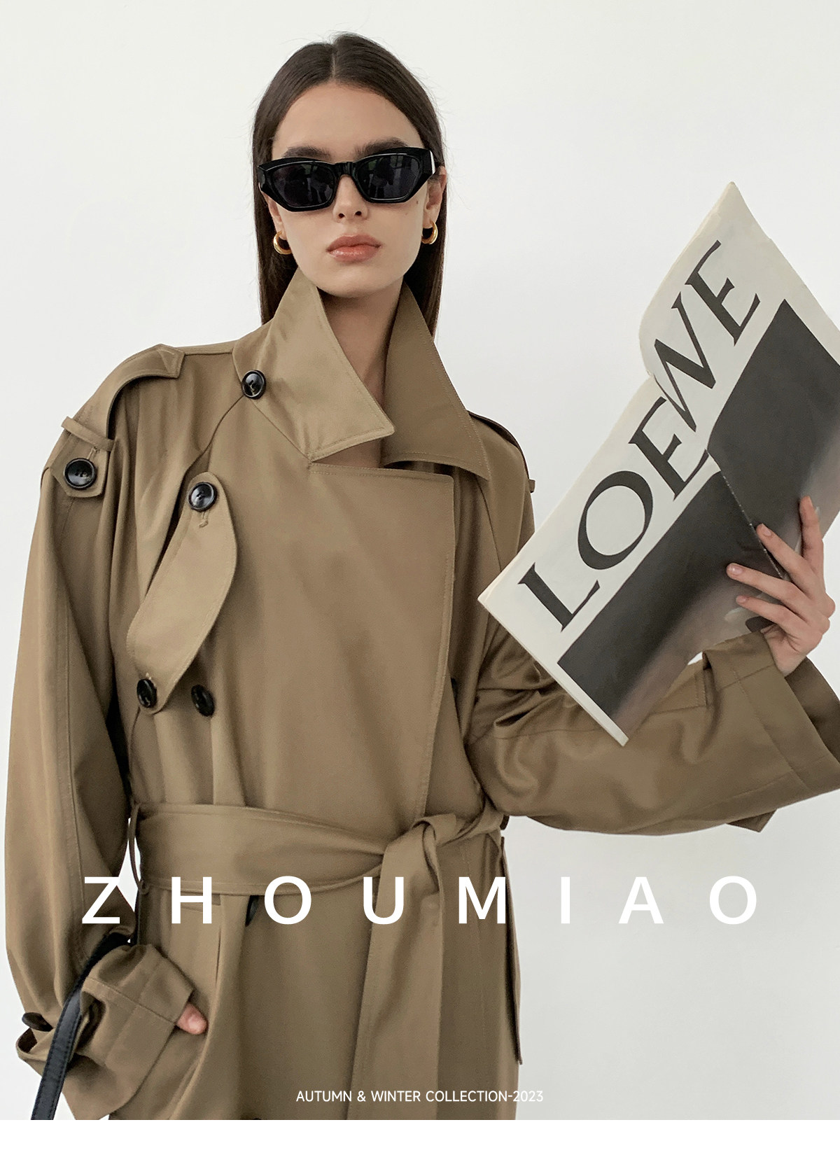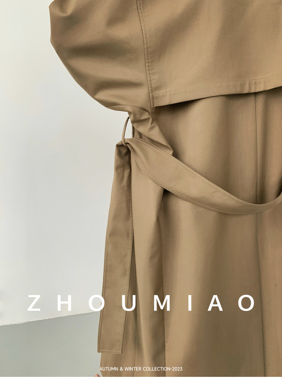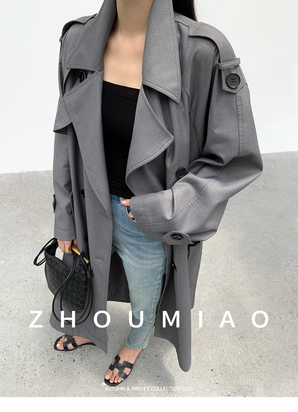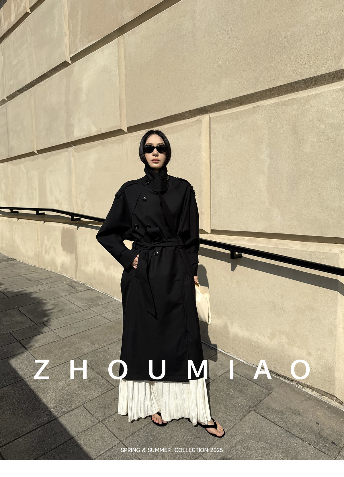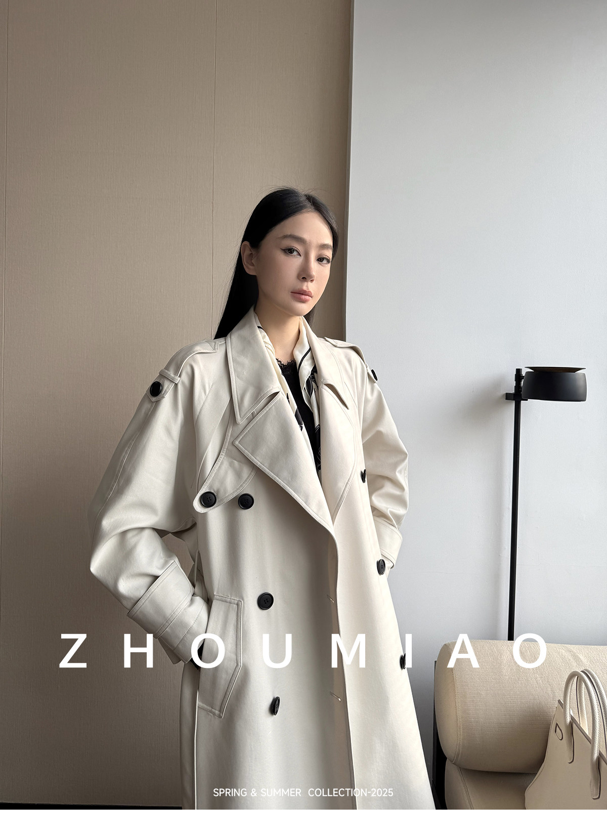 周淼ZHOUMIAO巴黎旧梦经典廓形大翻领双排扣中长款气质风衣外套女