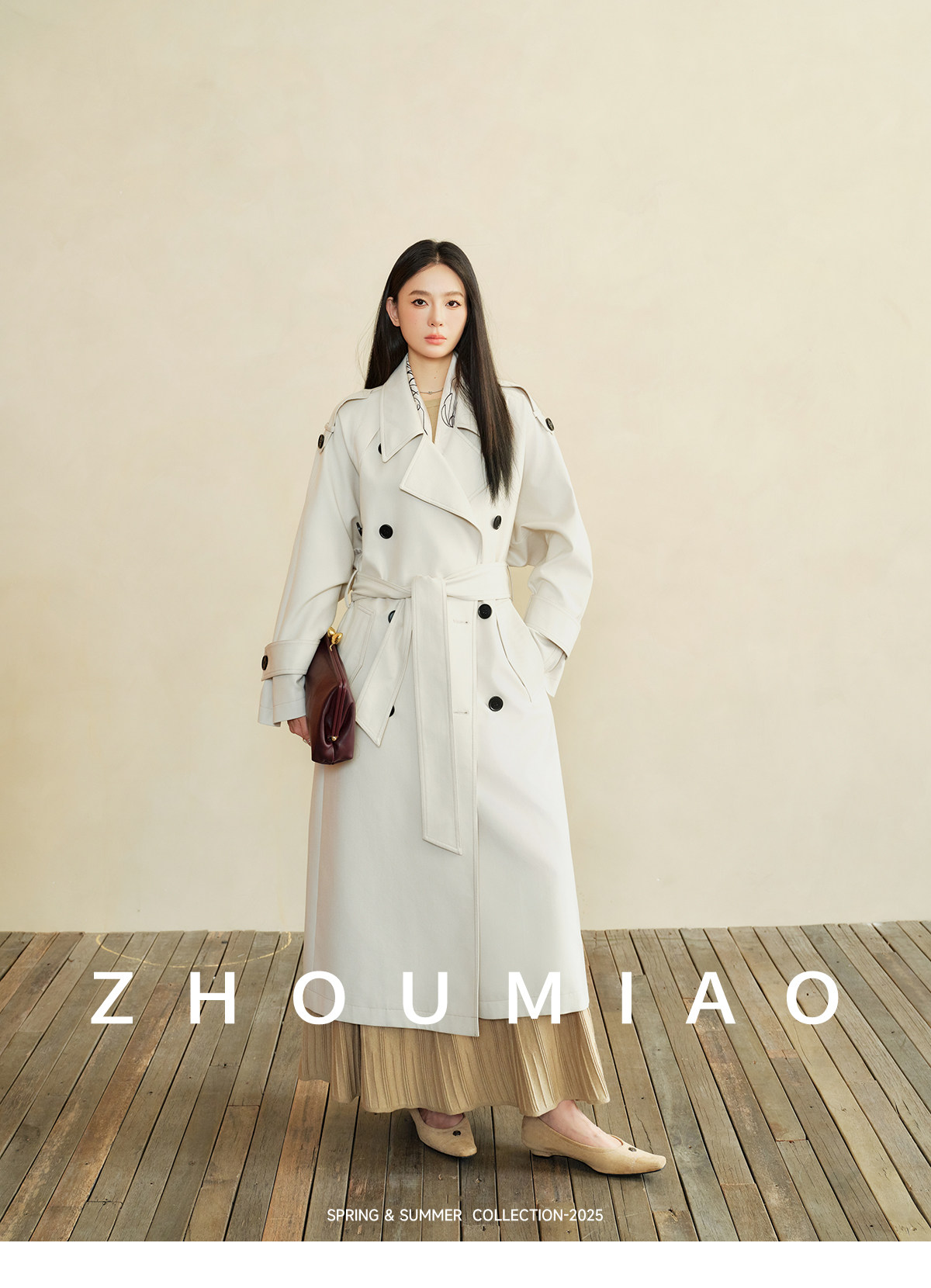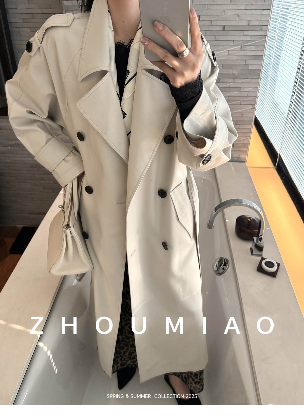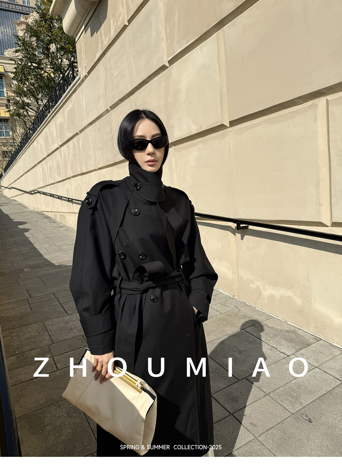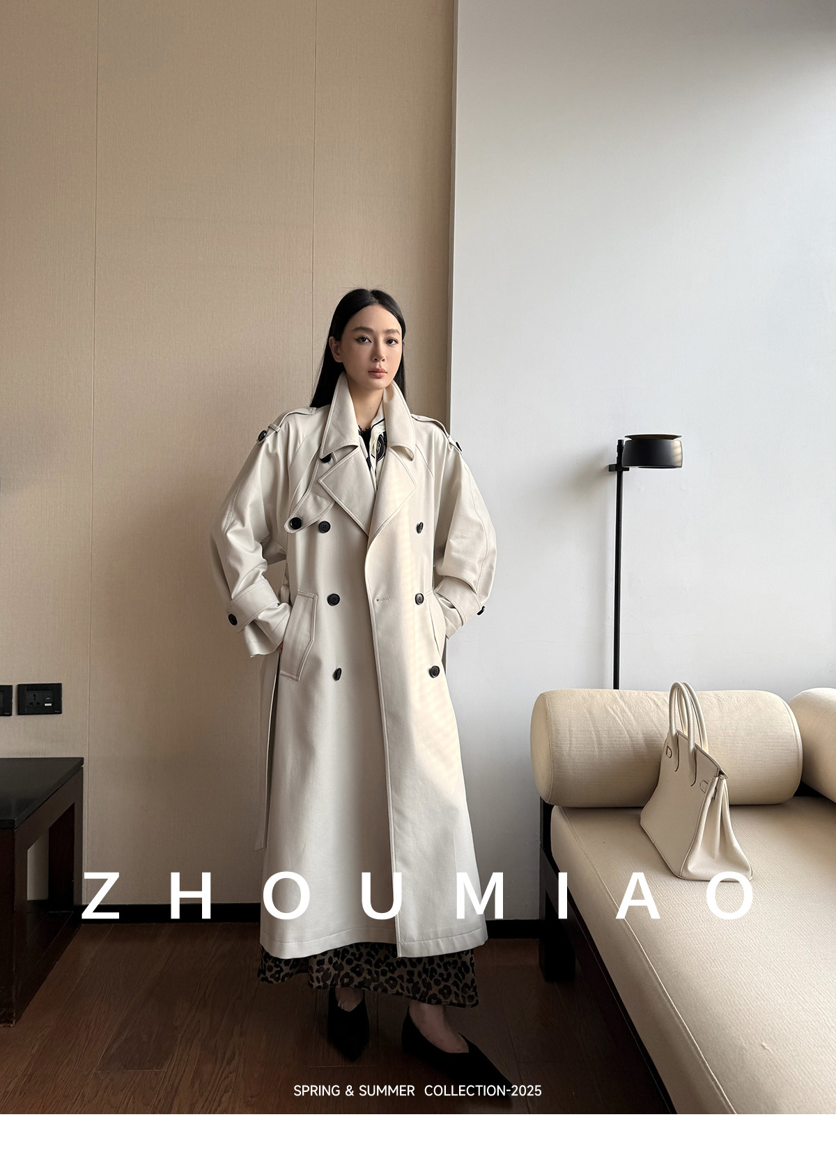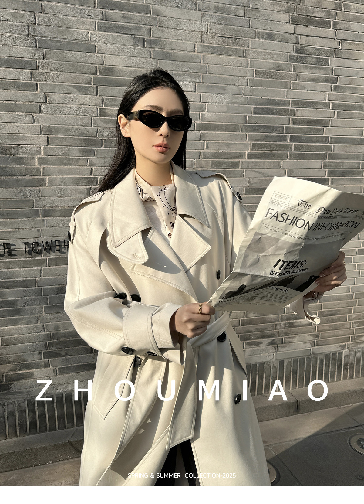 周淼ZHOUMIAO巴黎旧梦经典廓形大翻领双排扣中长款气质风衣外套女