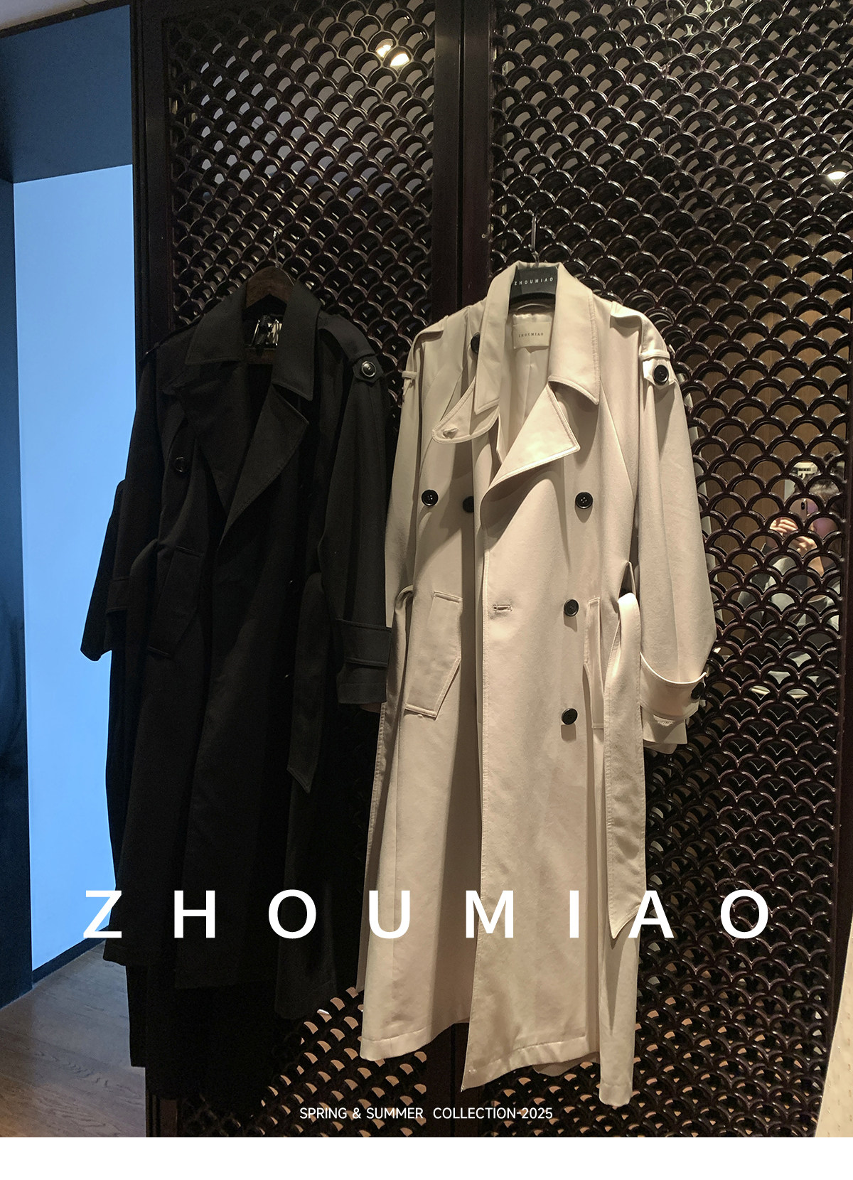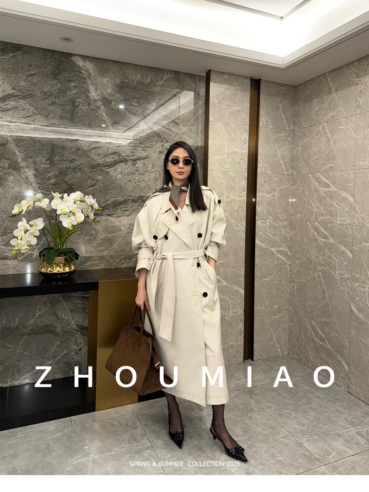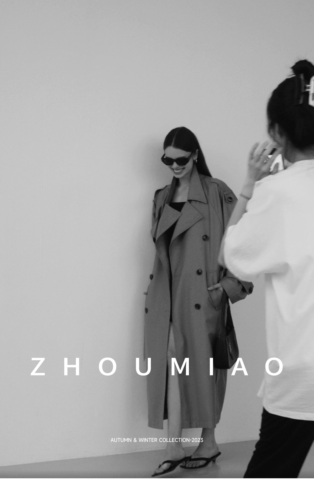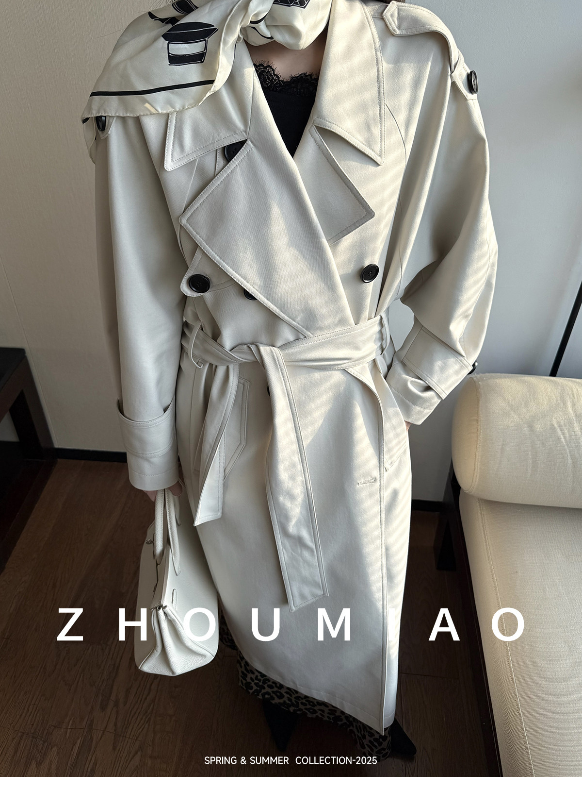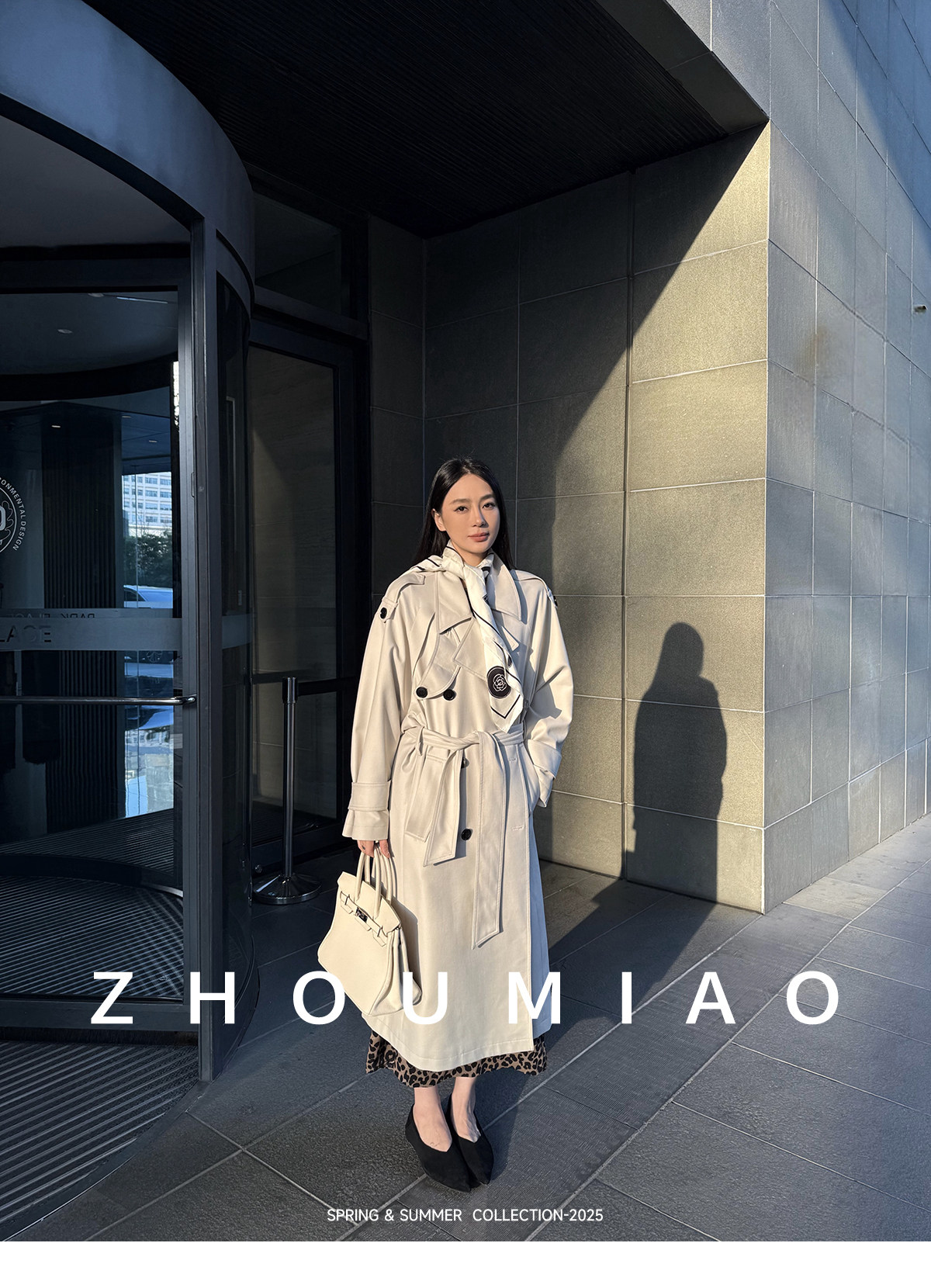 周淼ZHOUMIAO巴黎旧梦经典廓形大翻领双排扣中长款气质风衣外套女