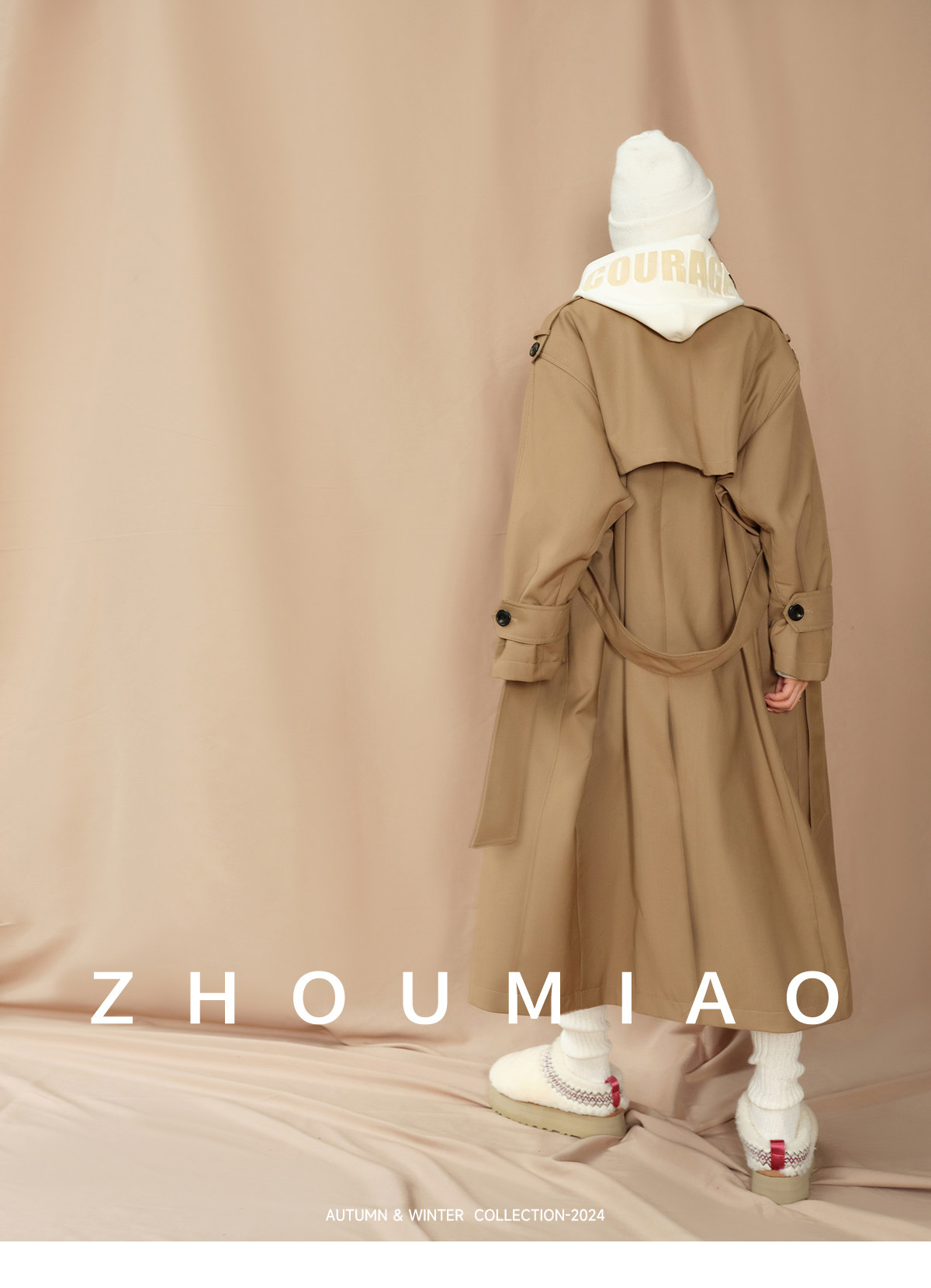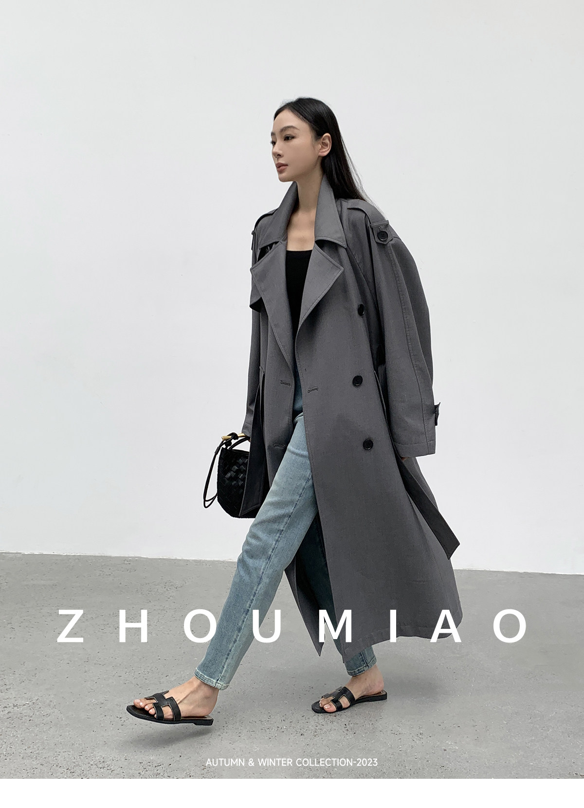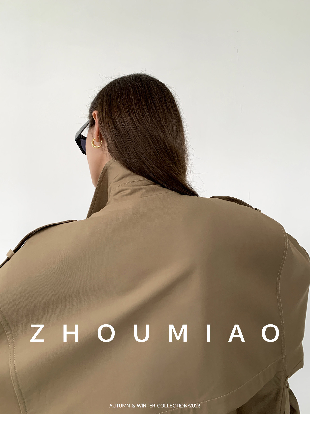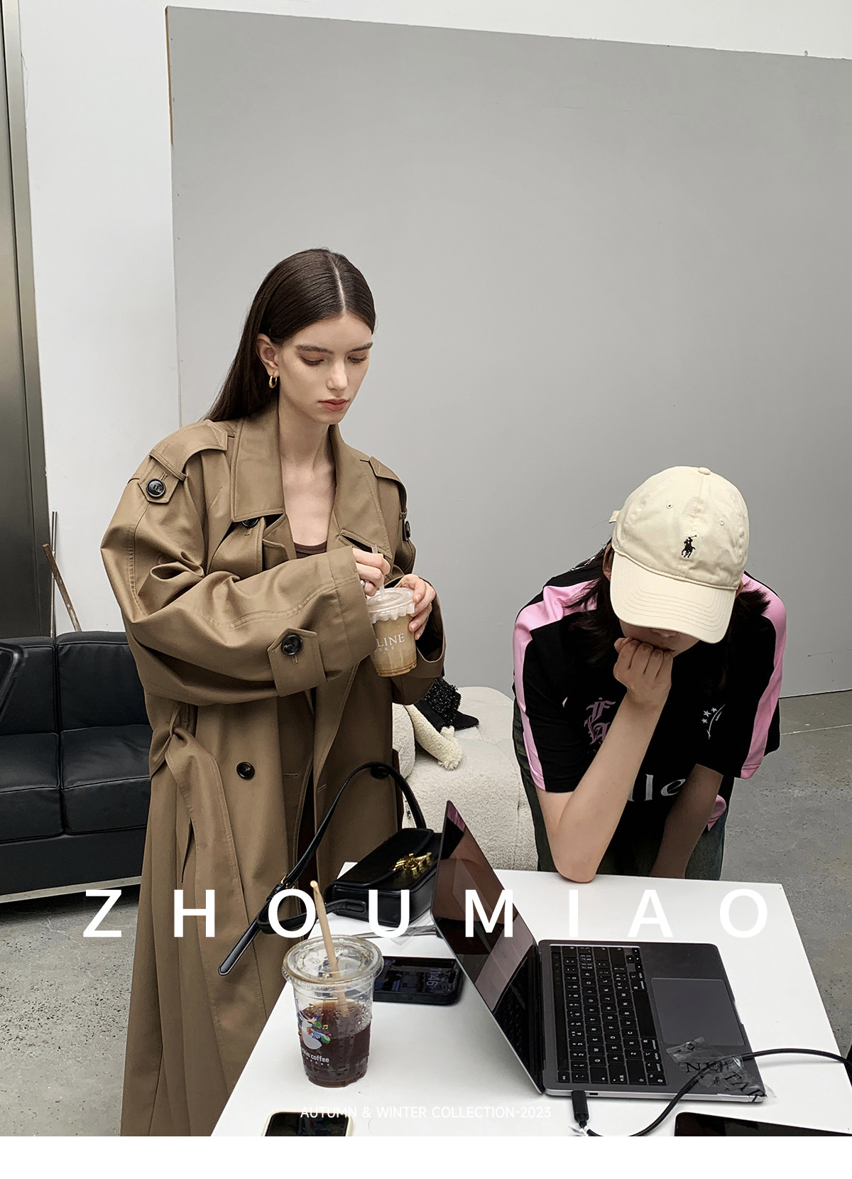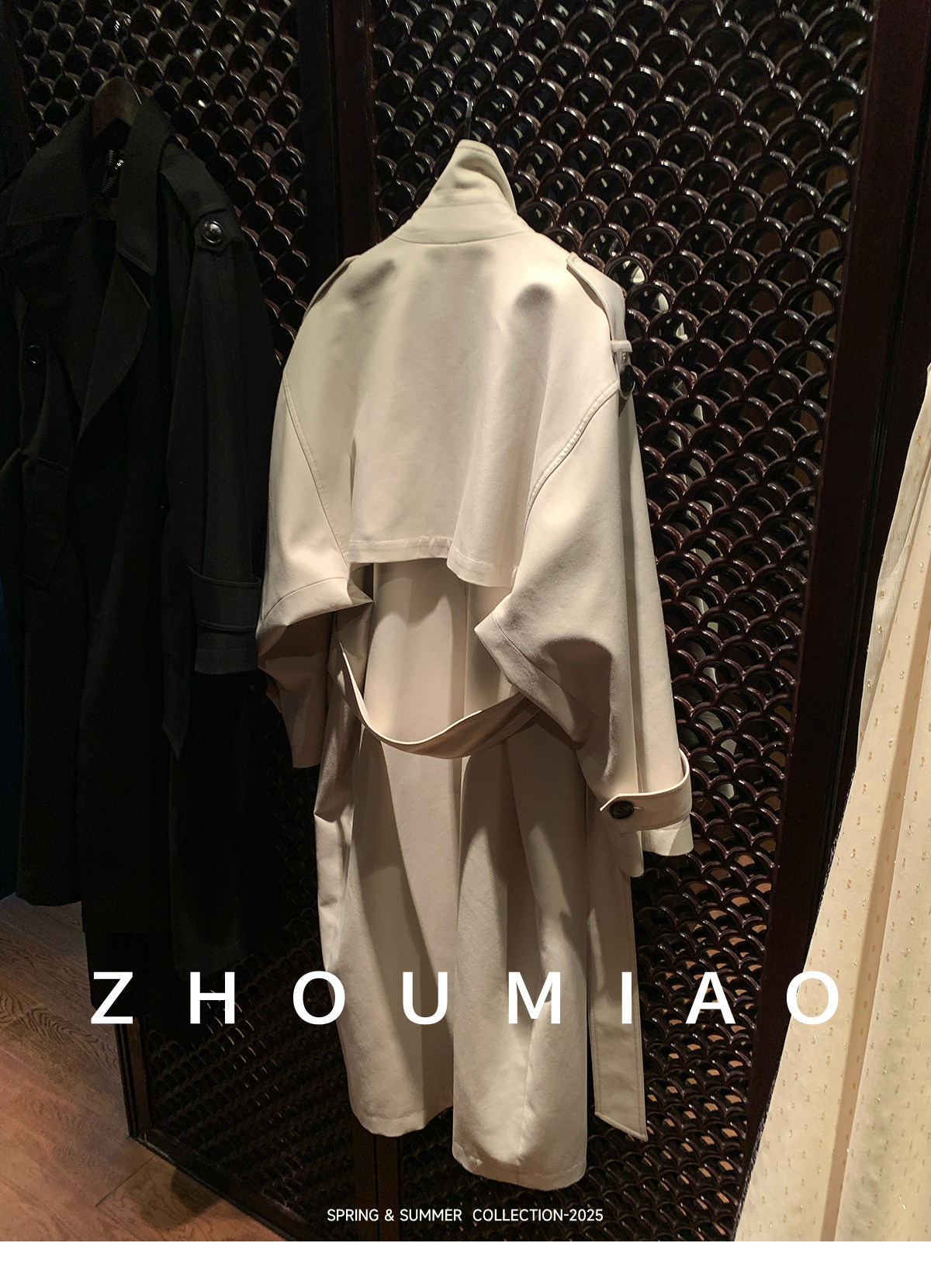 周淼ZHOUMIAO巴黎旧梦经典廓形大翻领双排扣中长款气质风衣外套女