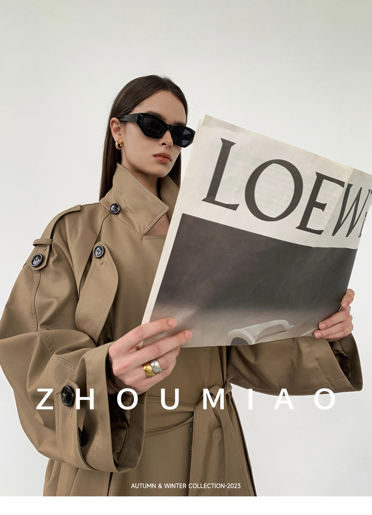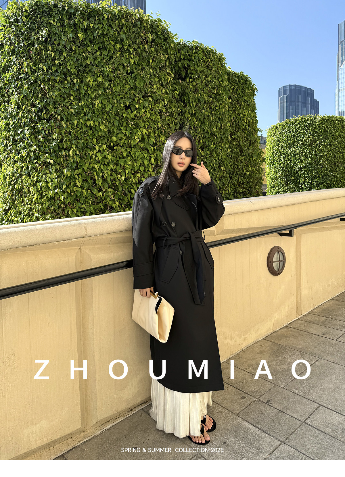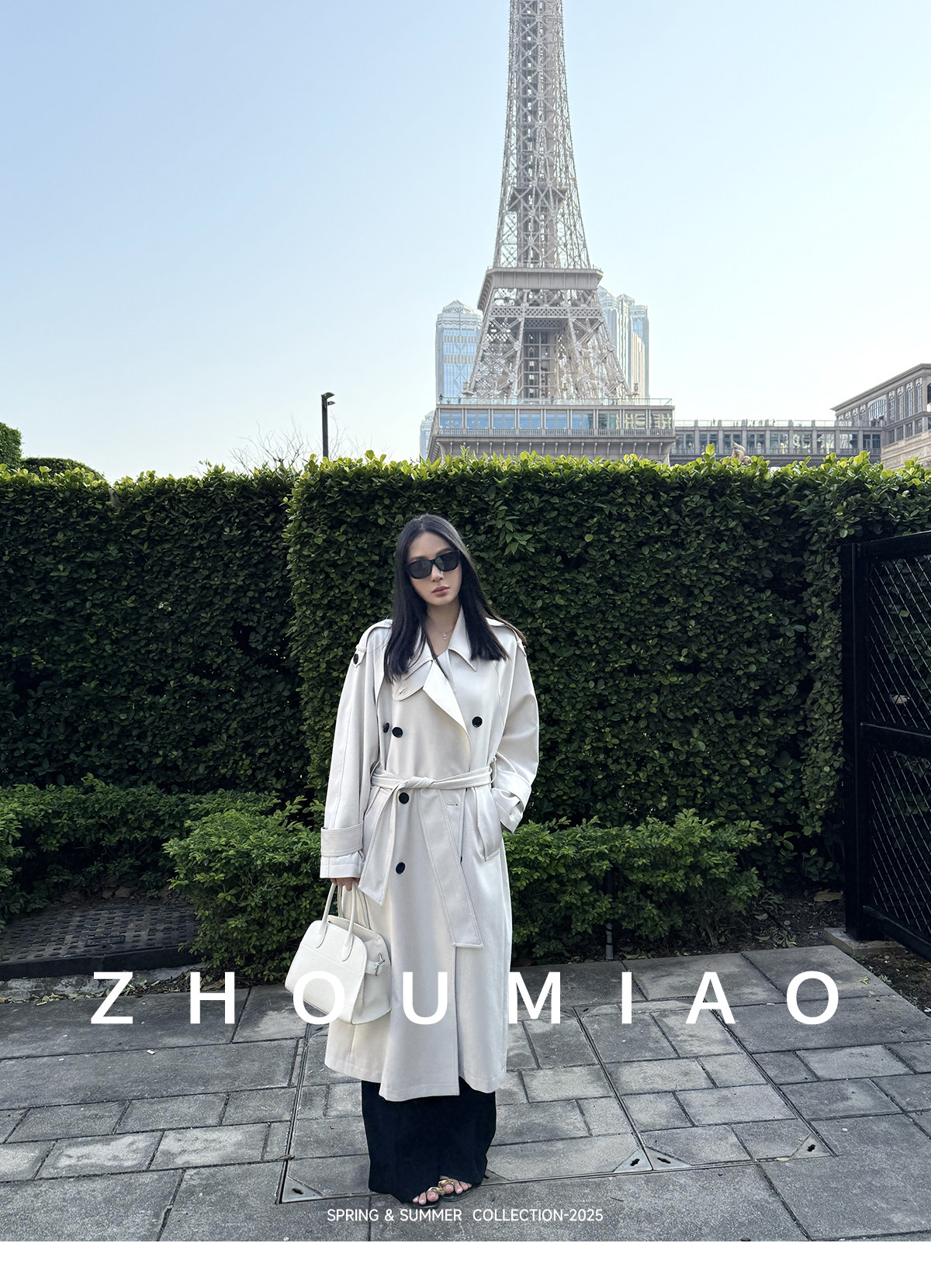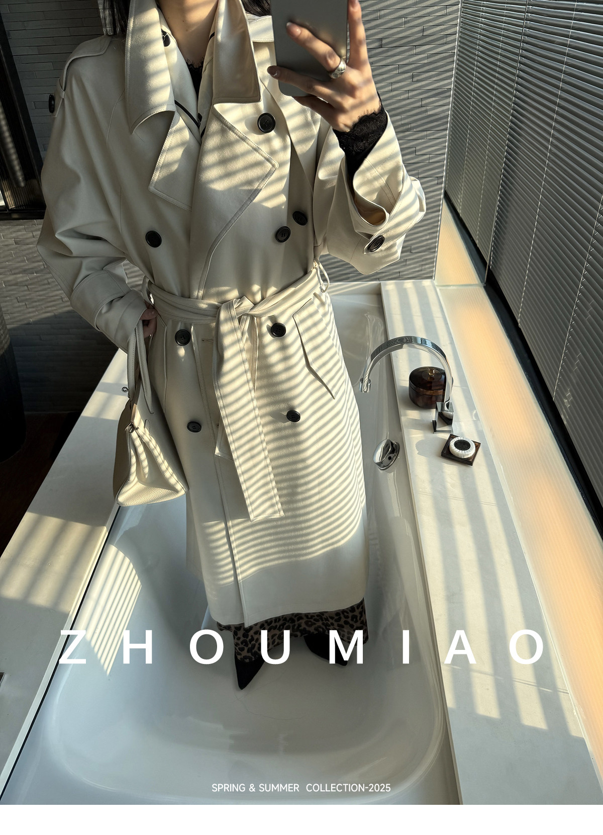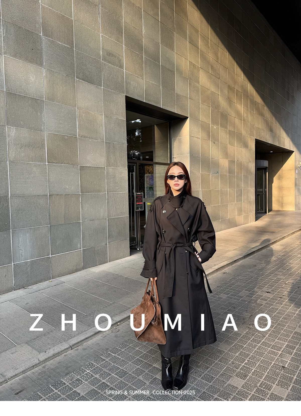 周淼ZHOUMIAO巴黎旧梦经典廓形大翻领双排扣中长款气质风衣外套女